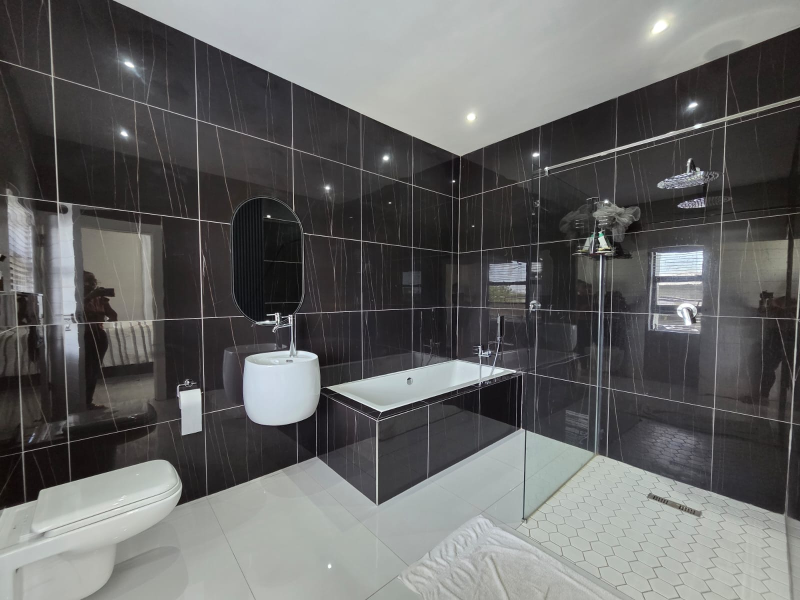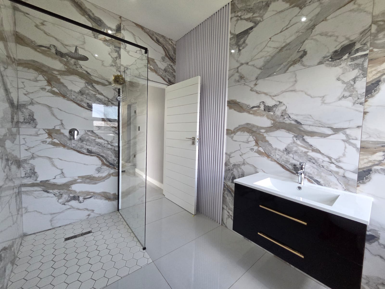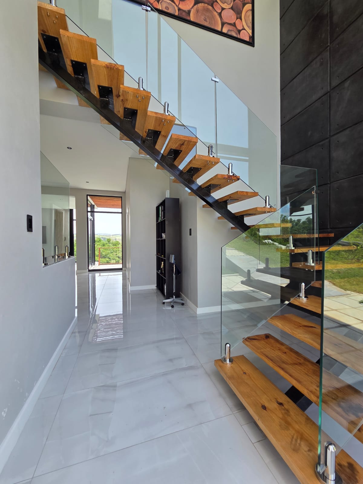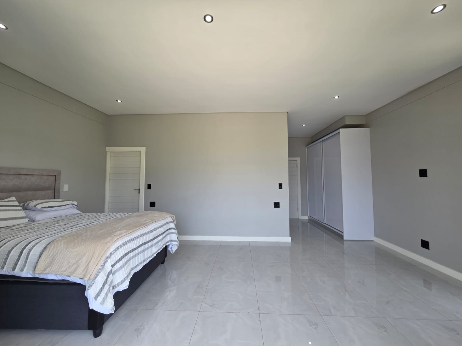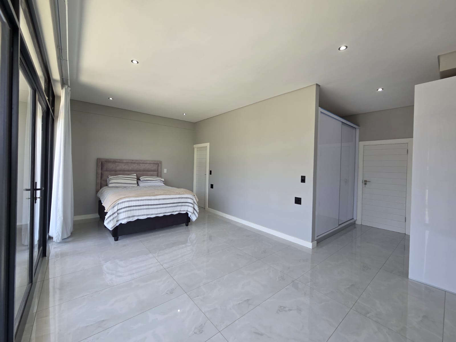 Upstairs, three well-appointed bedrooms offer space and comfort. The main bedroom is particularly generous, with ample cupboard space, a full modern en-suite, and a private balcony—an ideal retreat to unwind and enjoy the fresh air. The two additional bedrooms share a contemporary shower bathroom and a joined balcony overlooking the greenbelt and dam, creating a serene and peaceful outlook. The pet-friendly home also boasts a large garden, providing plenty of room for children and pets to play.