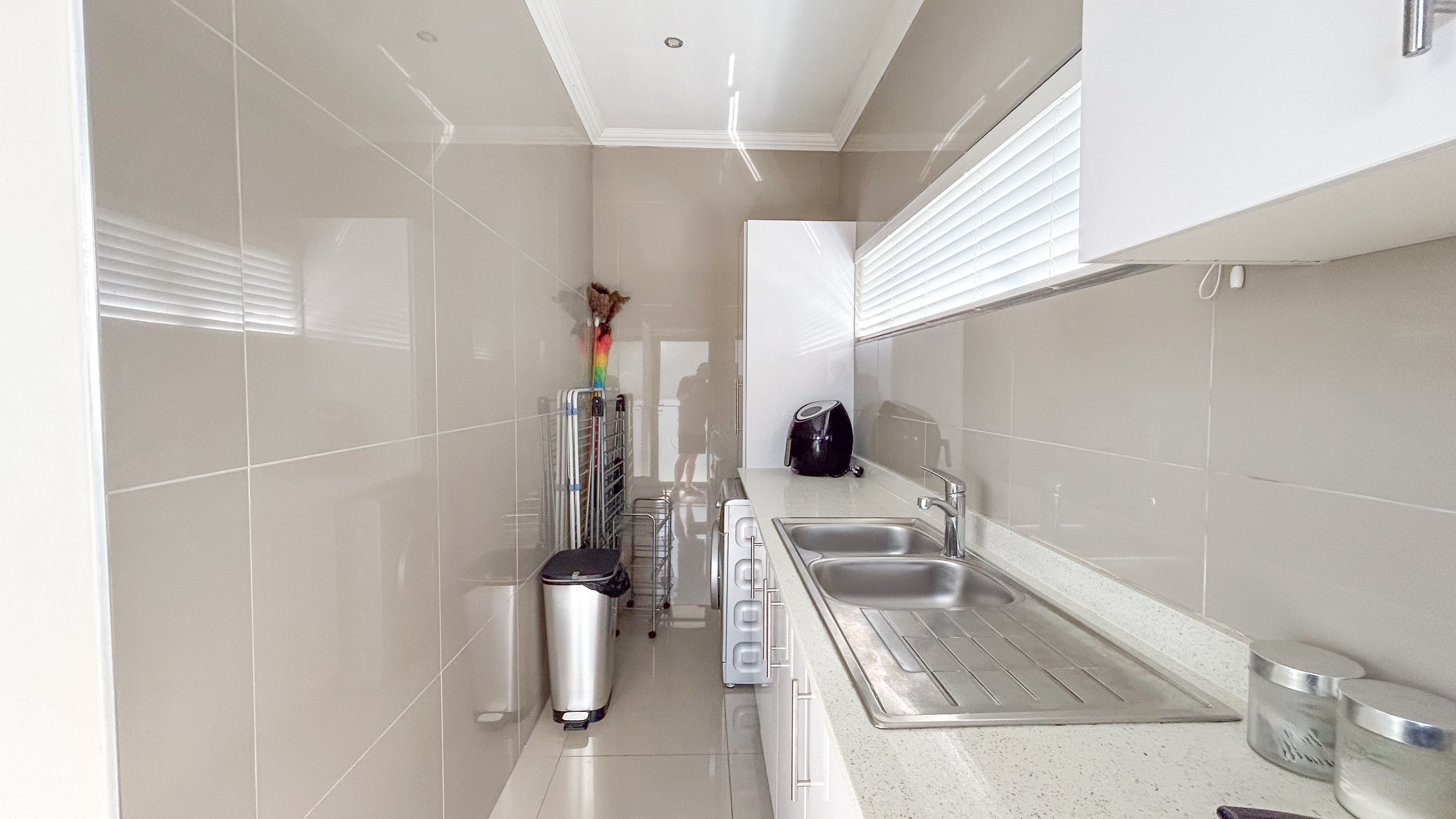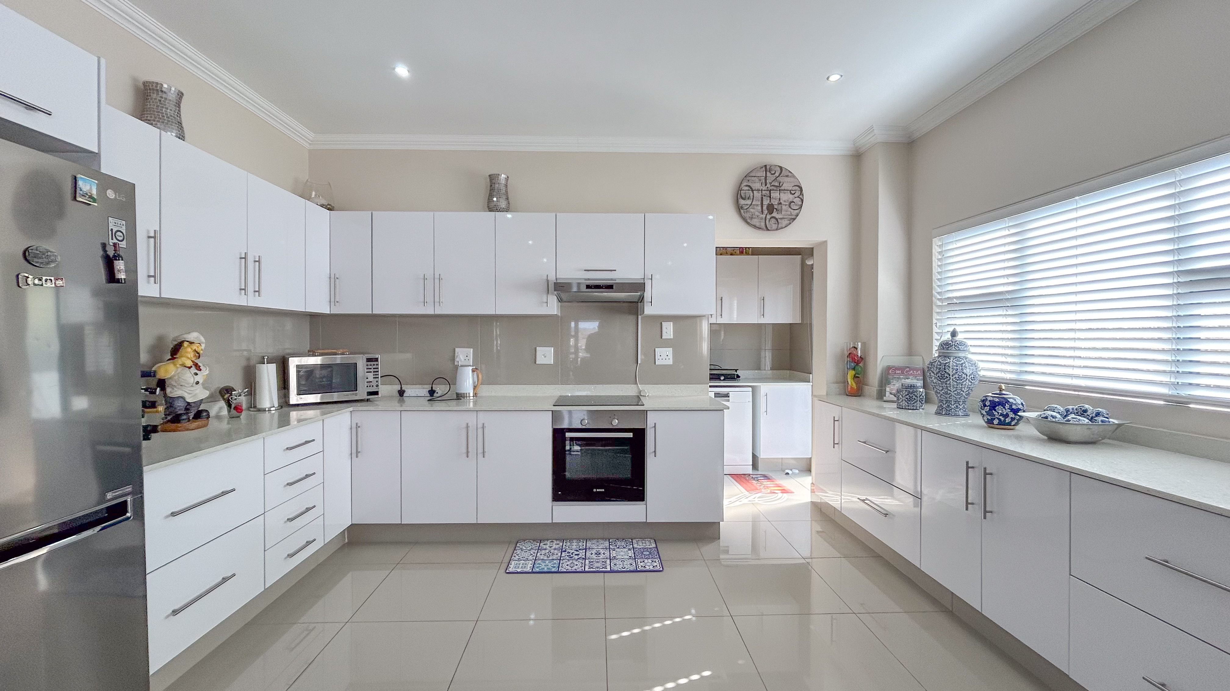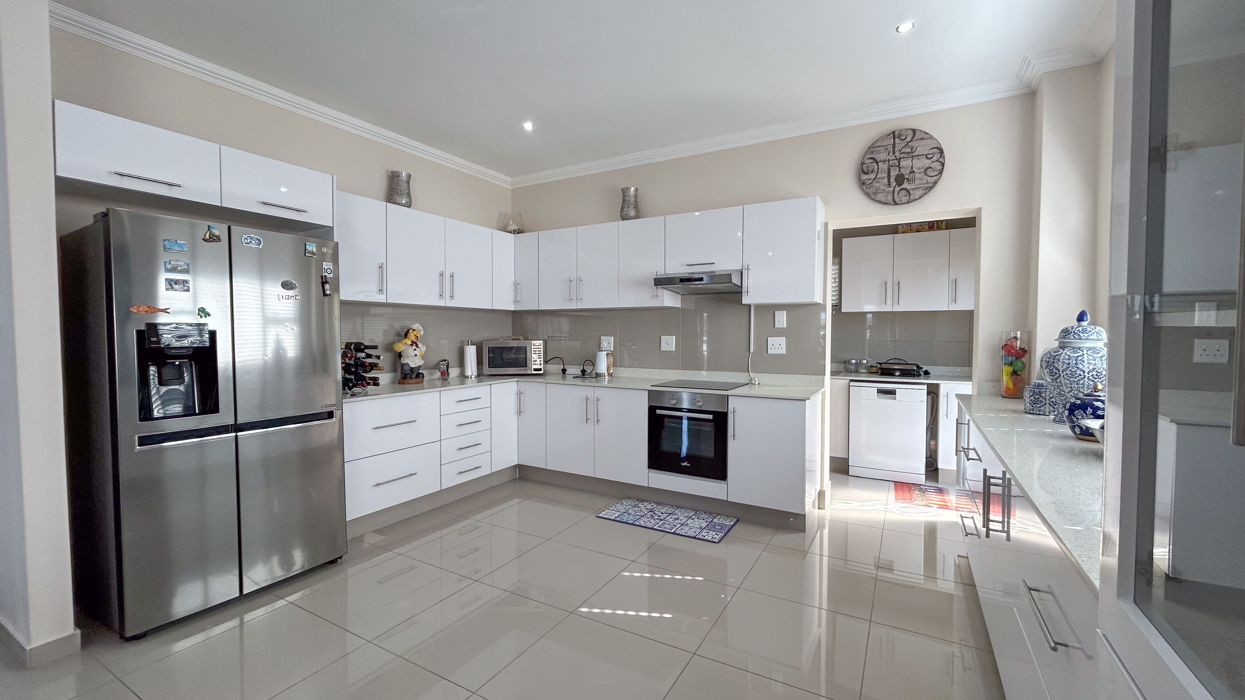 Modern kitchen with quartz countertops and a separate scullery for convenience