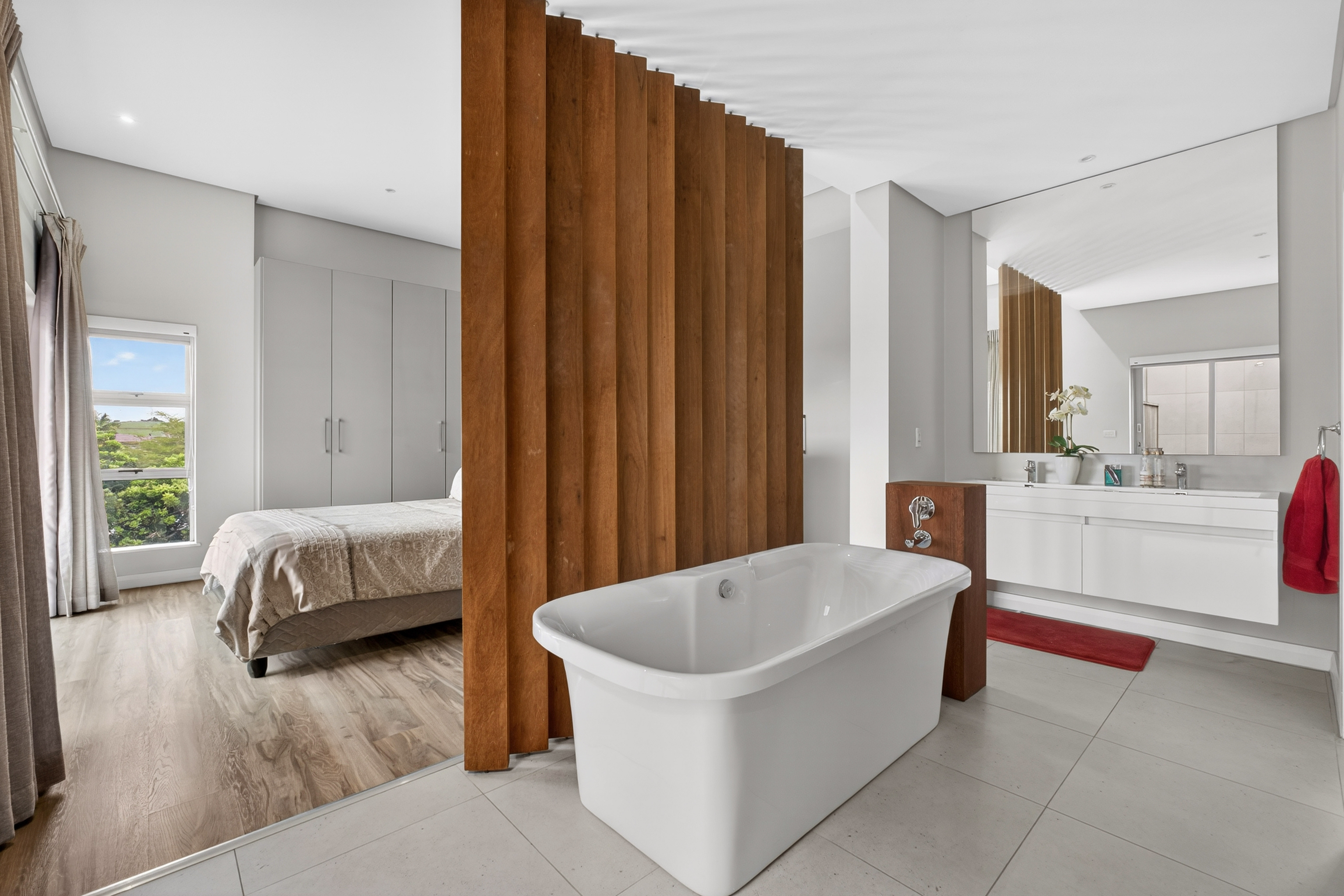 The sleek, contemporary kitchen is beautifully finished with quality fittings and is complemented by a separate scullery — keeping the main kitchen pristine while offering added practicality for busy family living.