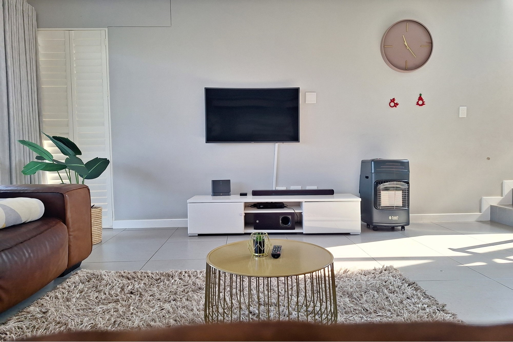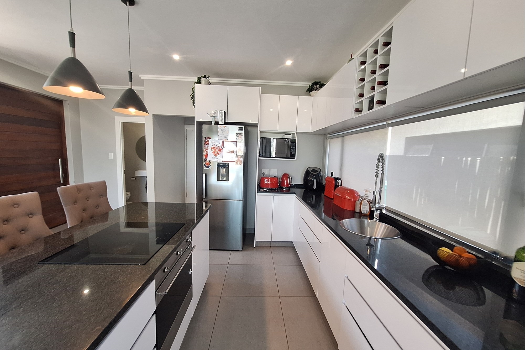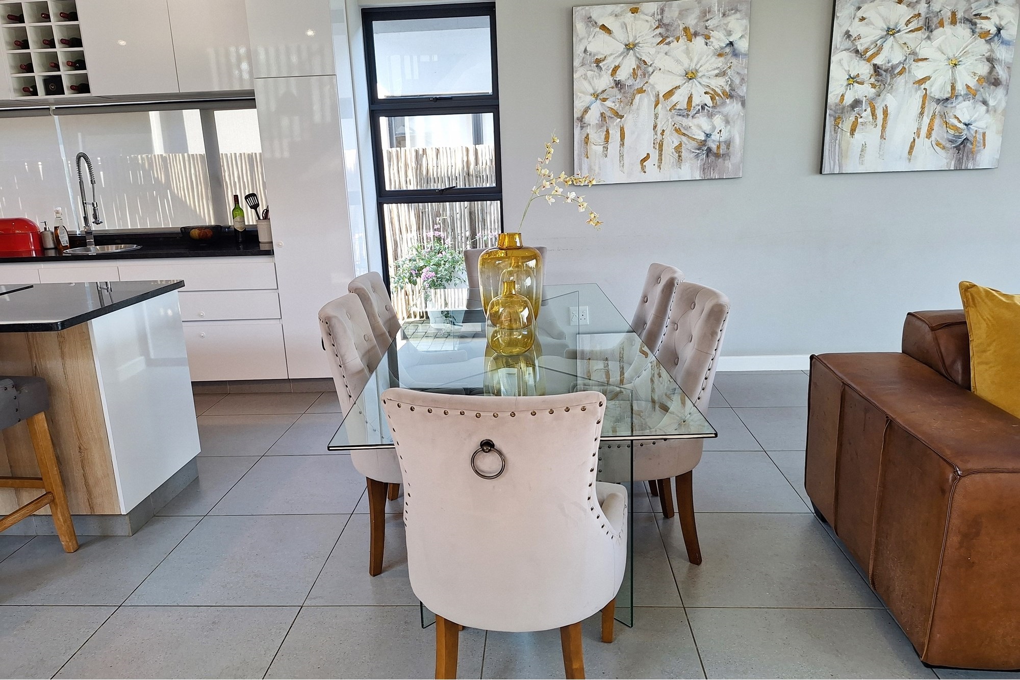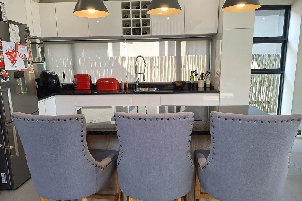 Thekitchenboasts high-end finishes, ample storage, and a sleek breakfast island – a dream for both casual meals and festive gatherings. The living and dining areas open out to acovered patio and private garden, where you can unwind with sunset views or host memorable weekend braais.