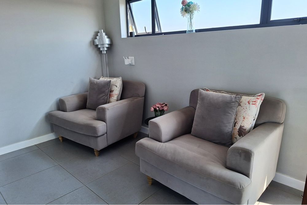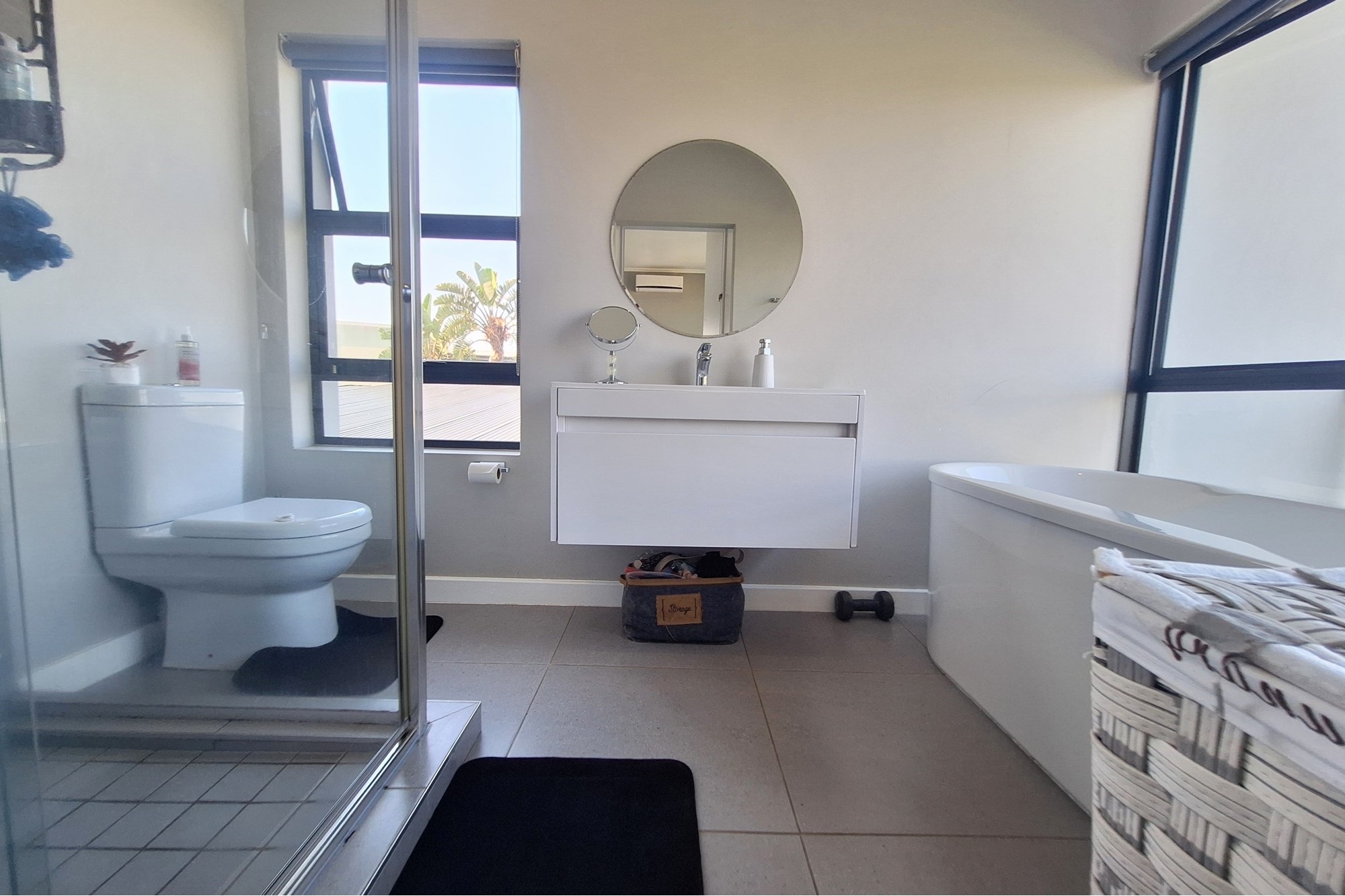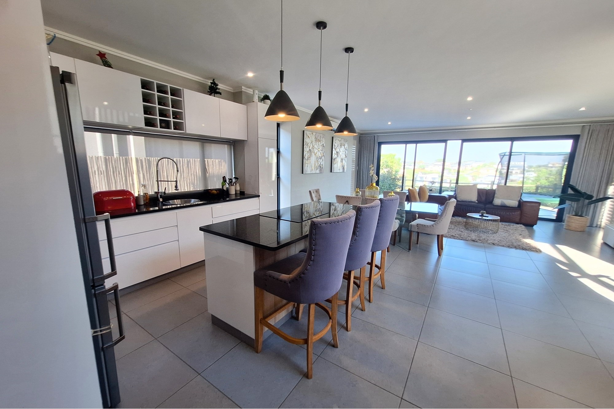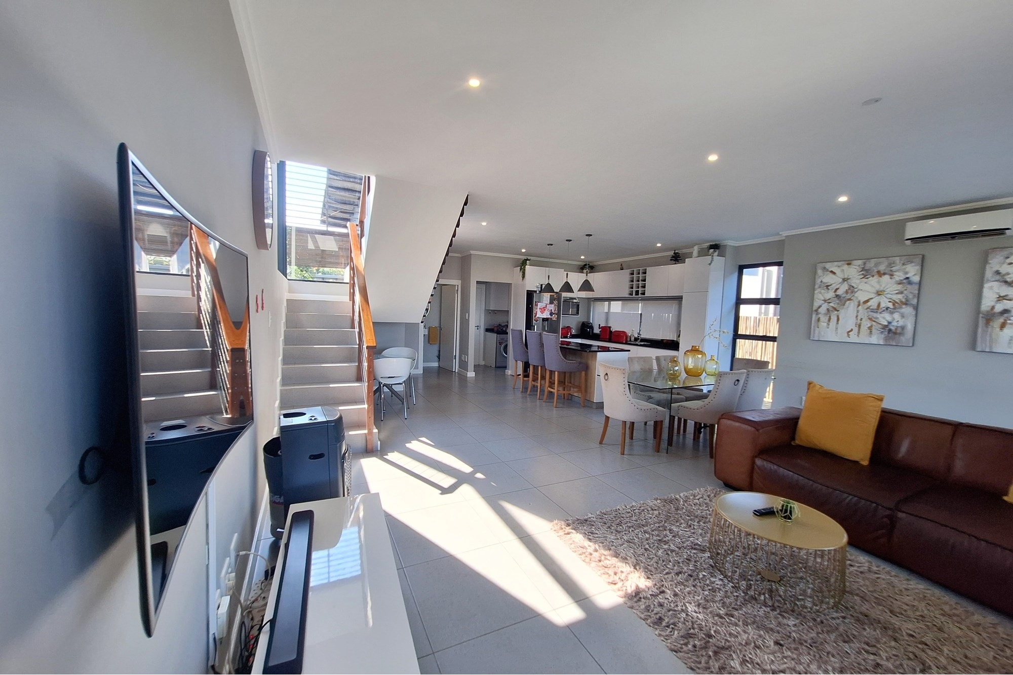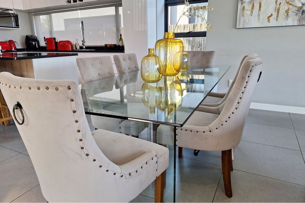 Thekitchenboasts high-end finishes, ample storage, and a sleek breakfast island – a dream for both casual meals and festive gatherings. The living and dining areas open out to acovered patio and private garden, where you can unwind with sunset views or host memorable weekend braais.