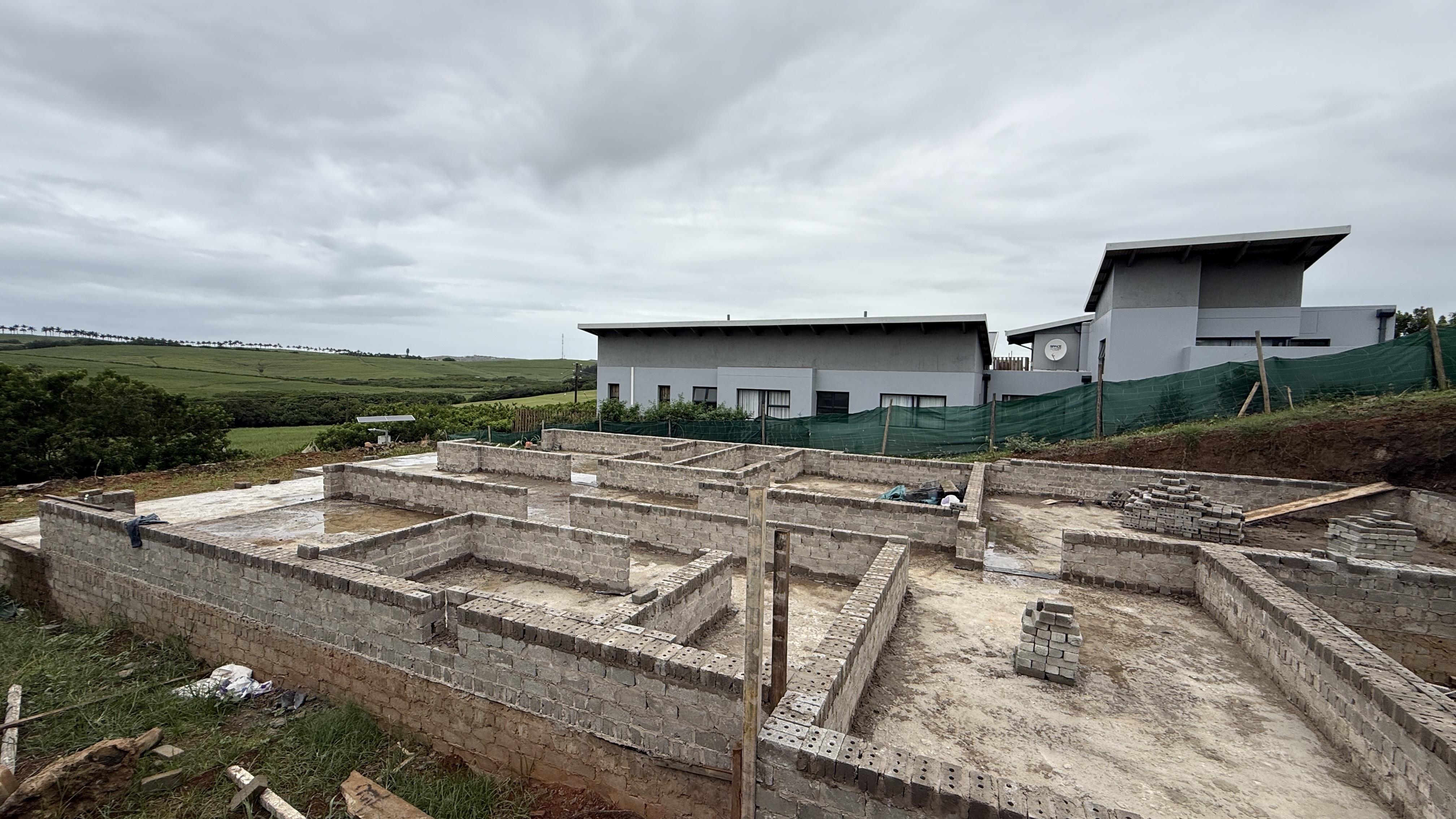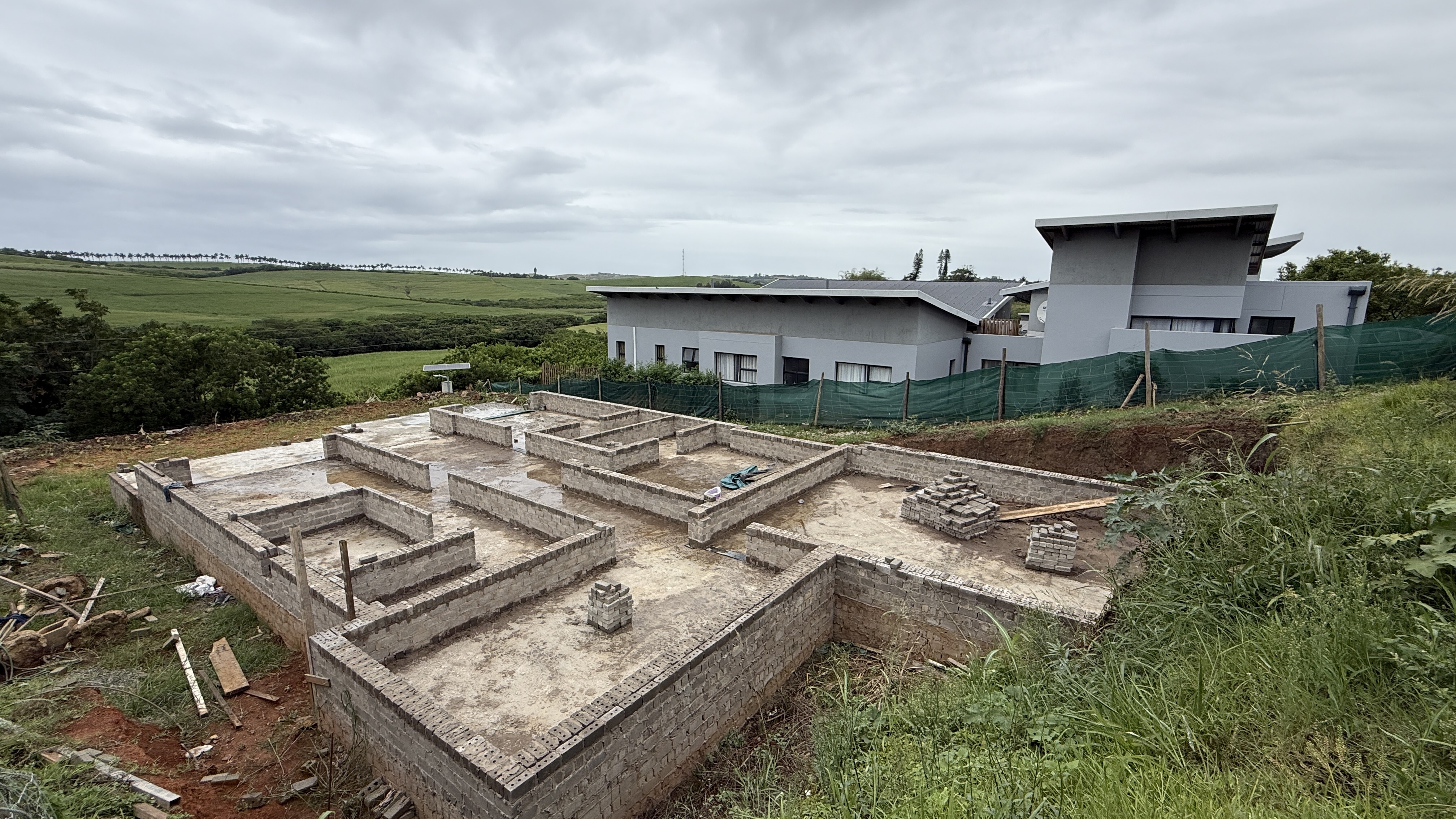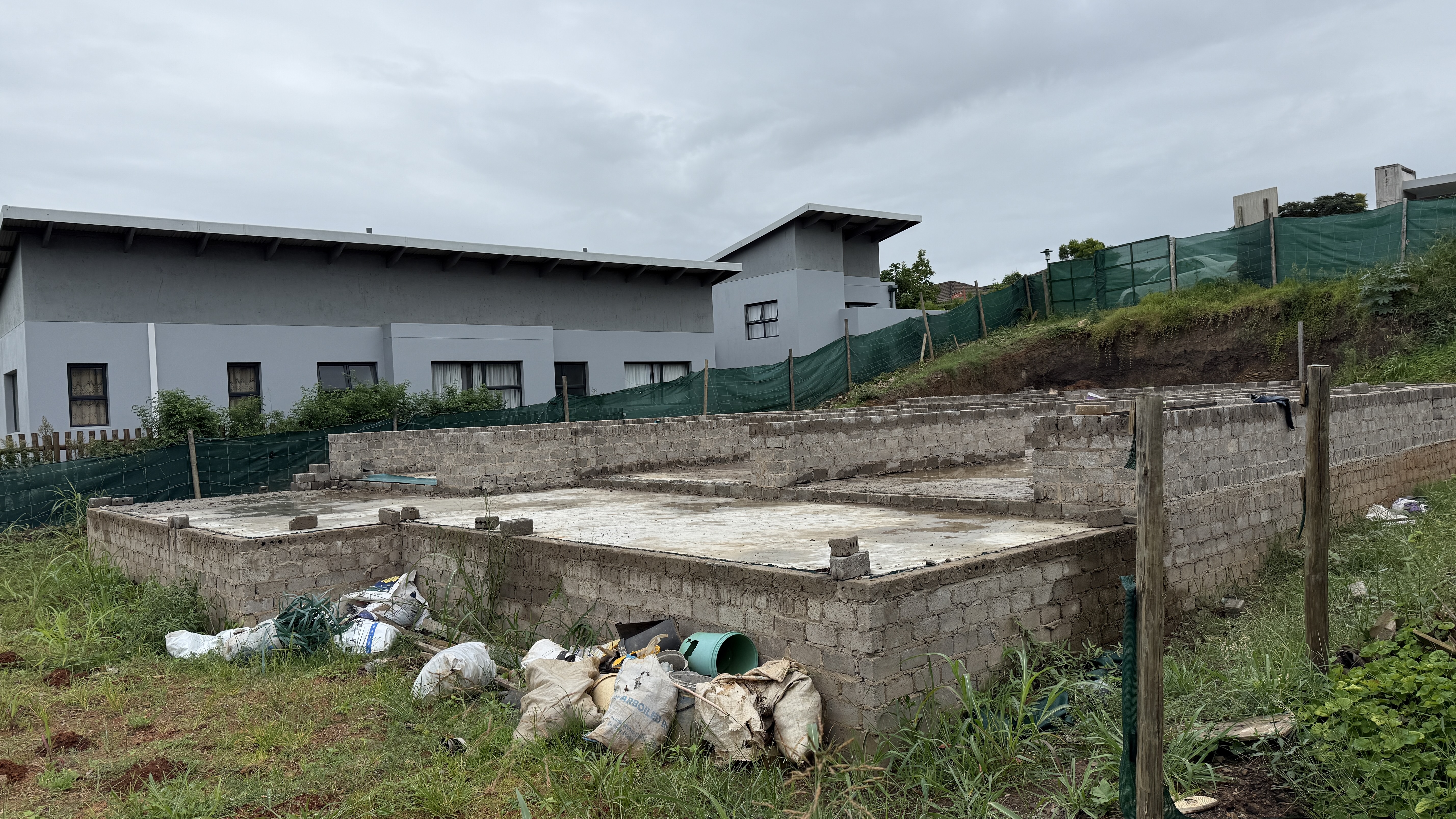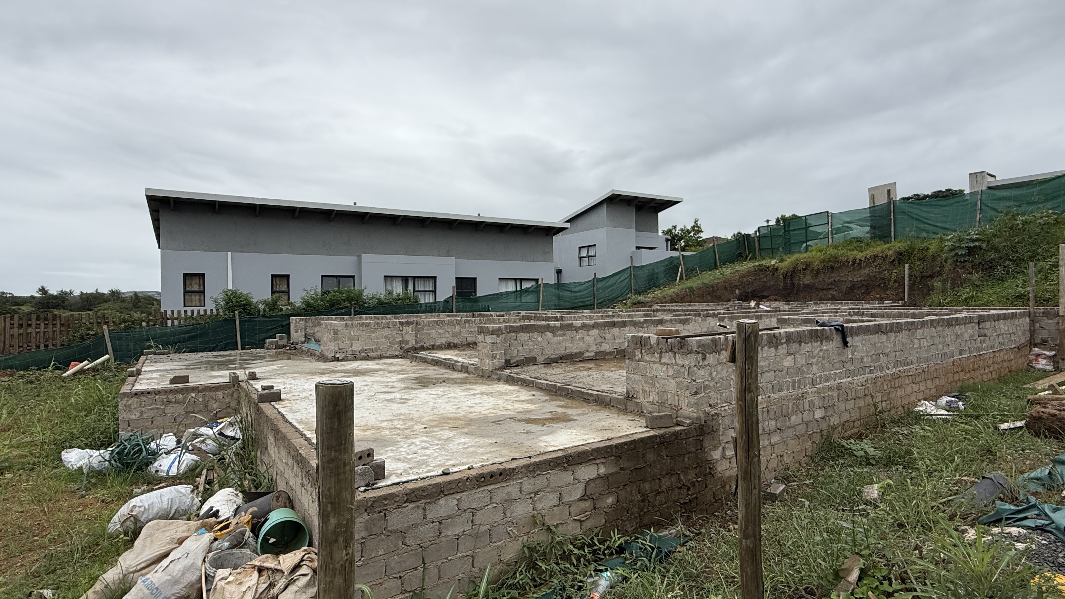 This home in the popular Palm Lakes Estate is being sold as is. A four bedroom house with the bedrooms planned on the lower level and the living space and garage on the top level. The foundations have been lain, and some of the walls have been started.