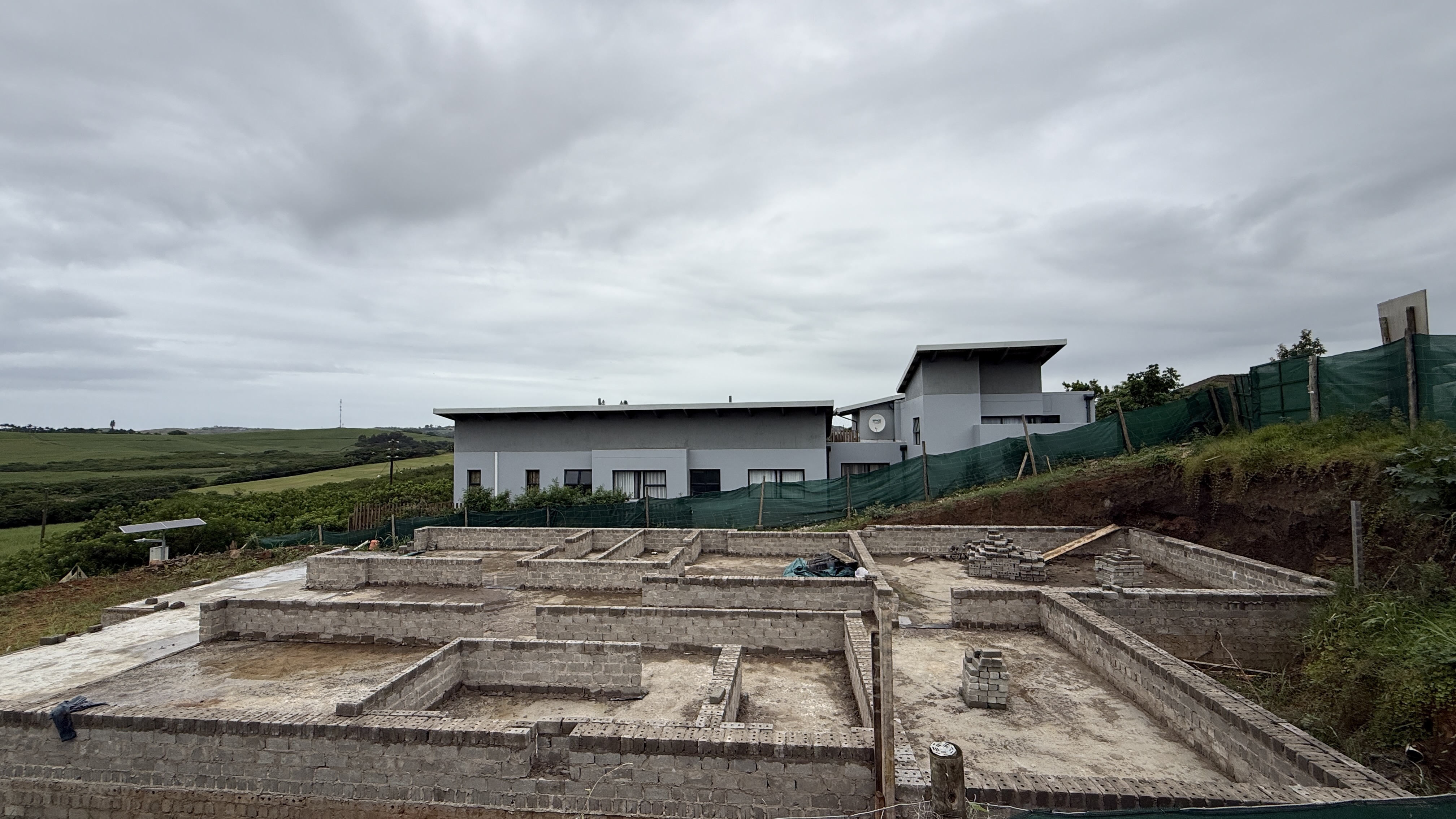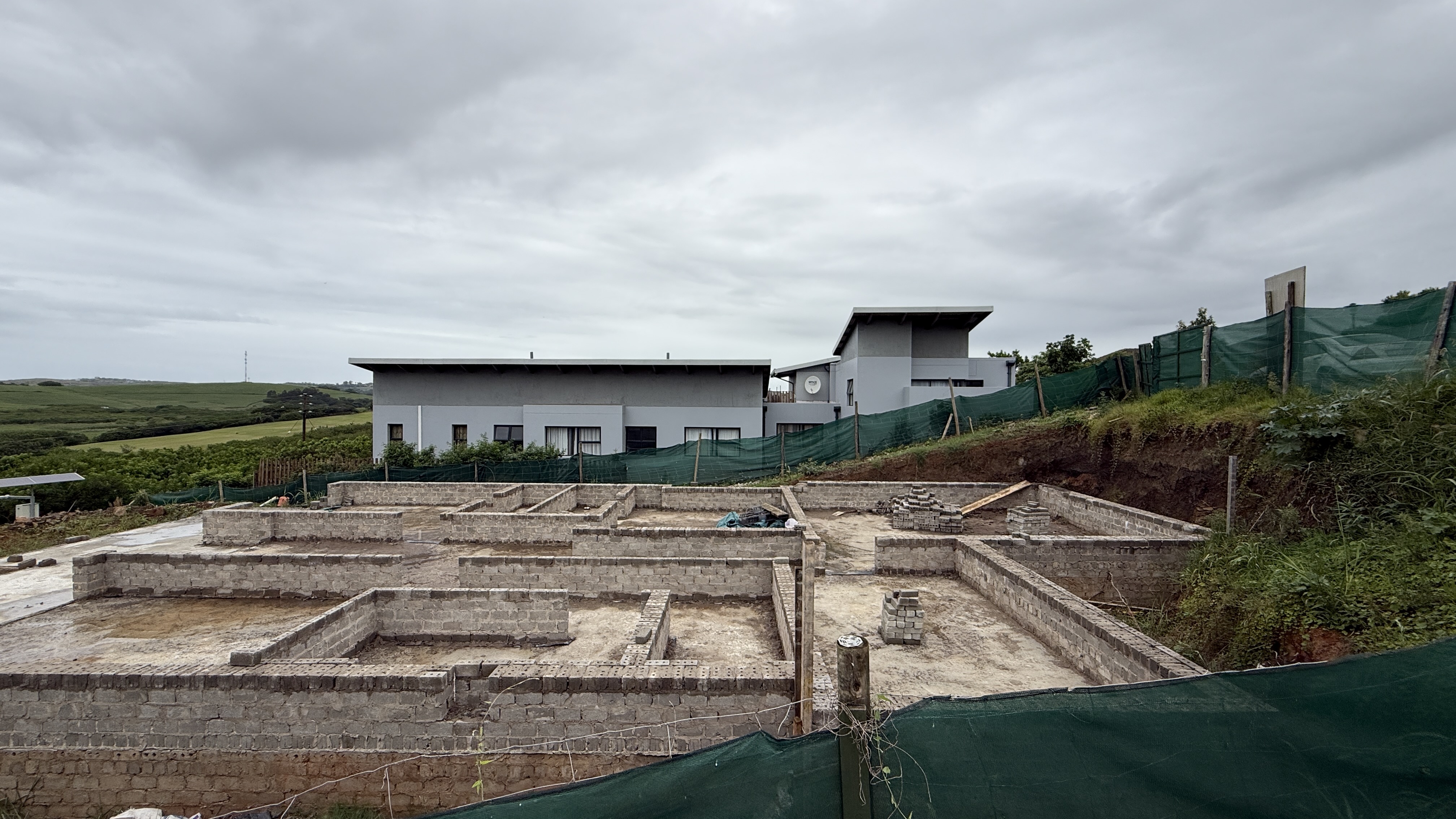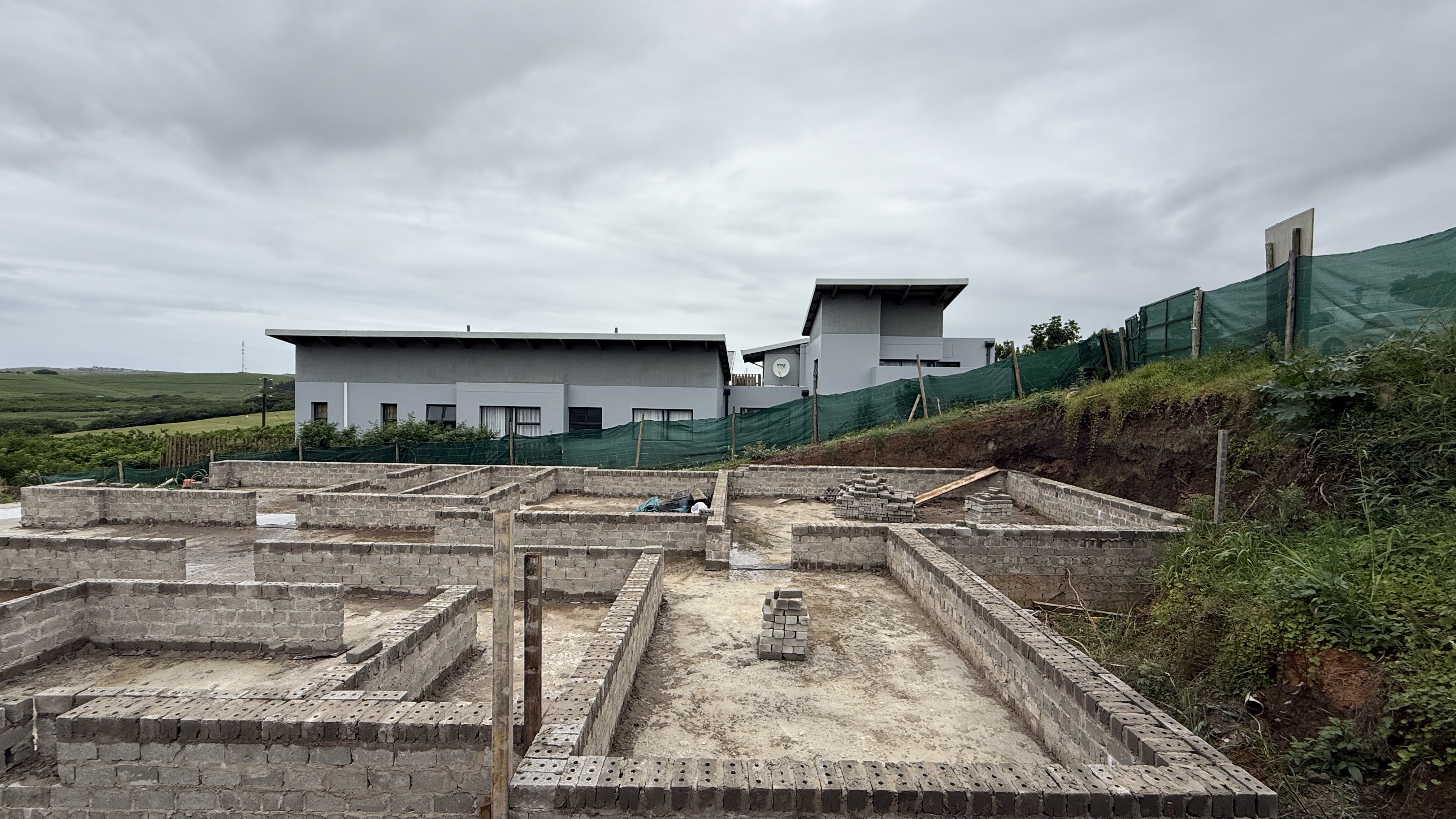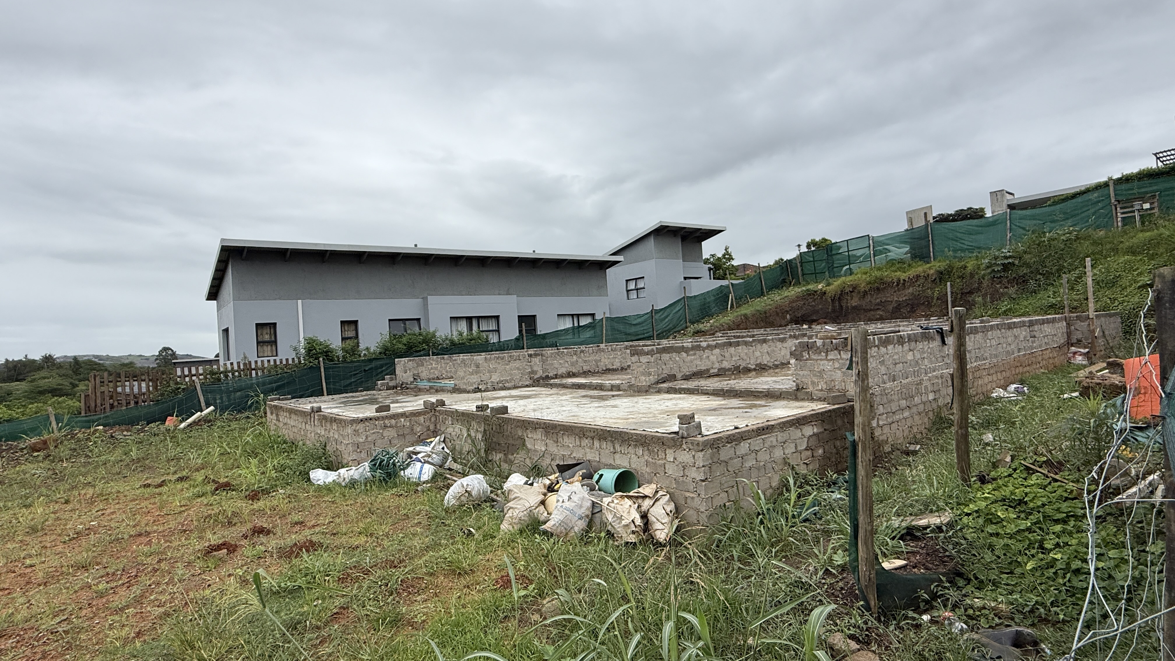 This home in the popular Palm Lakes Estate is being sold as is. A four bedroom house with the bedrooms planned on the lower level and the living space and garage on the top level. The foundations have been lain, and some of the walls have been started.