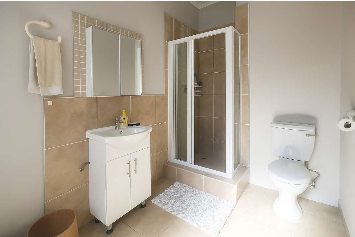 There are three generously sized bedrooms, each with their own air conditioning, offer peaceful retreats, cool, quiet, and full of potential. The main bedroom’s en-suite adds a sense of privacy, while the second bathroom is perfectly placed for kids or guests.