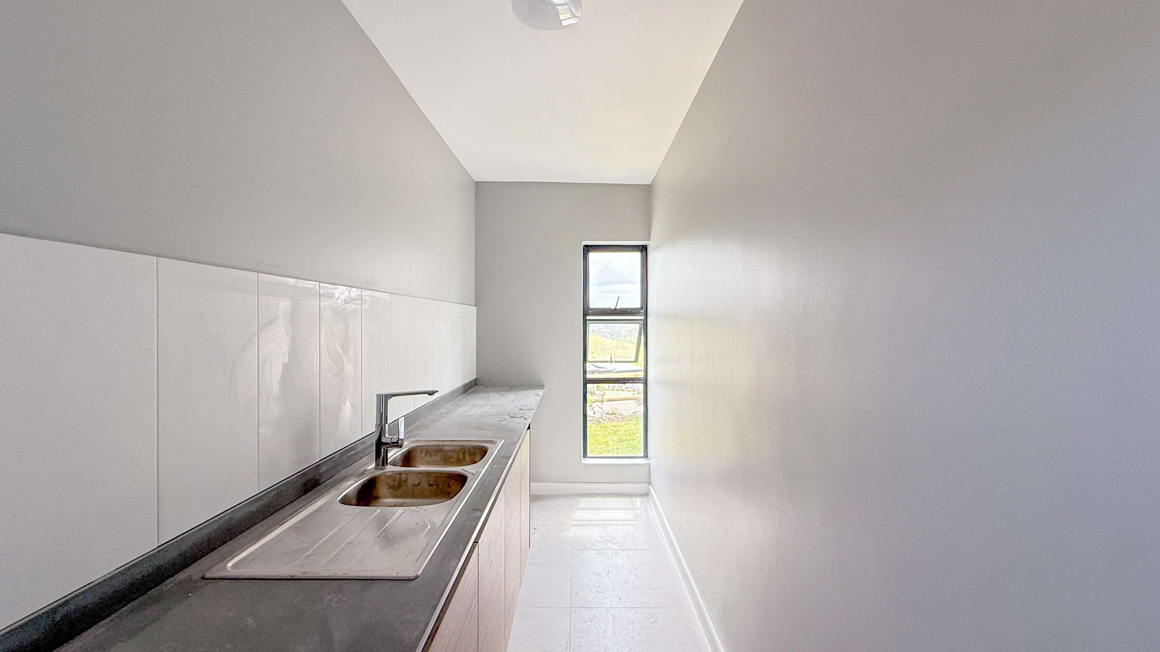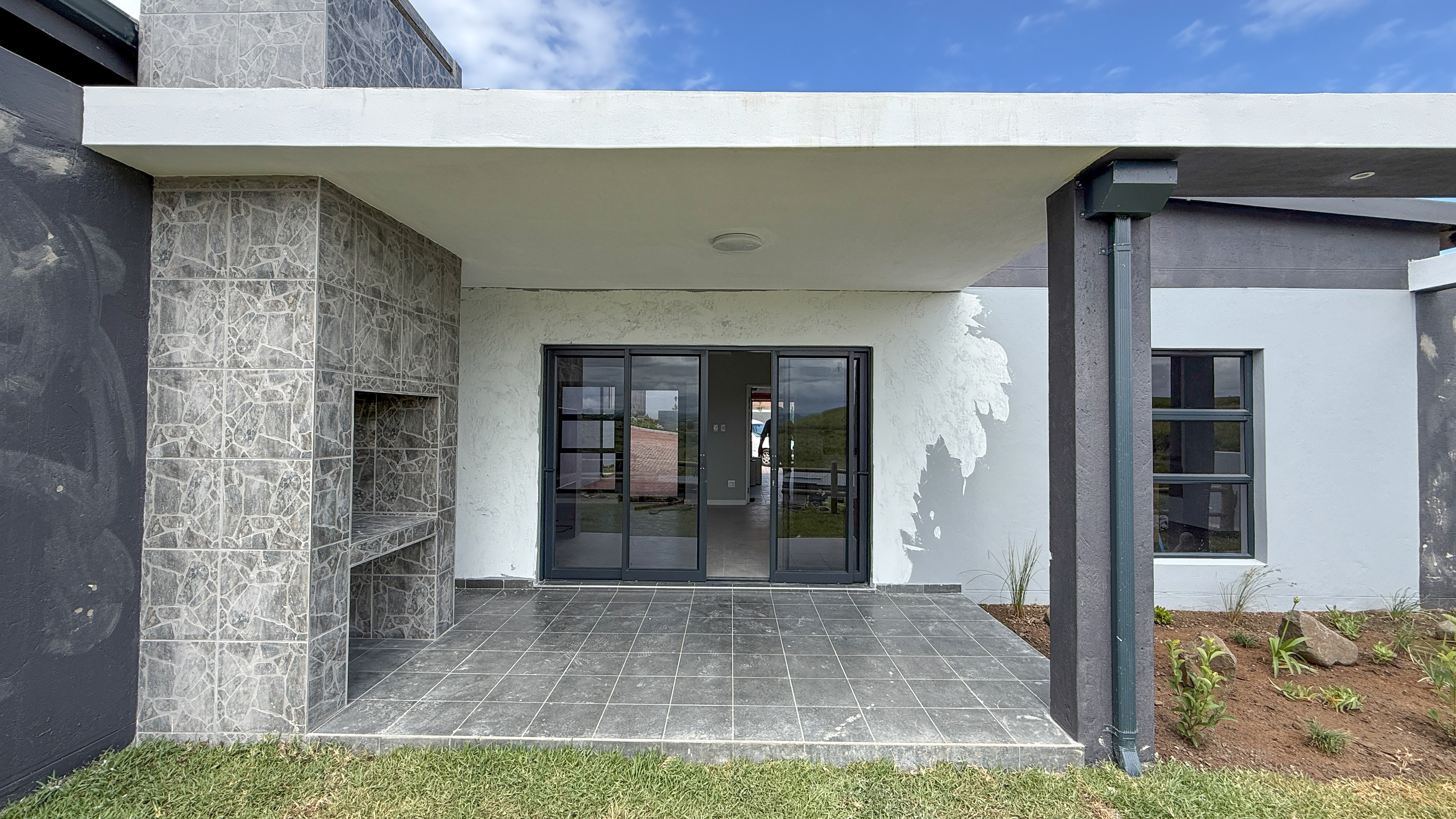 There are three bedrooms and two bathrooms with a double garage. The living space is open plan with a serarate scullery.