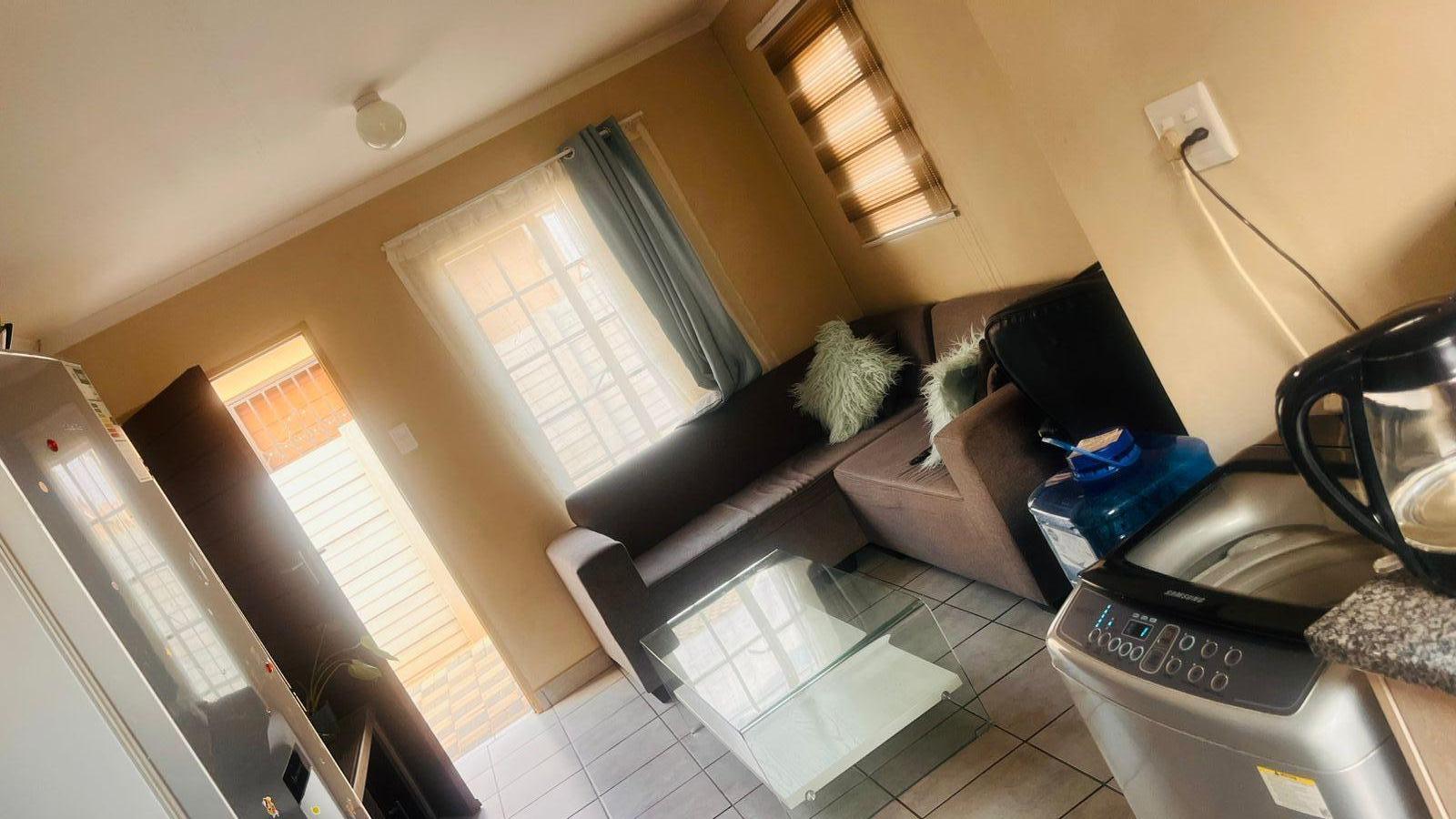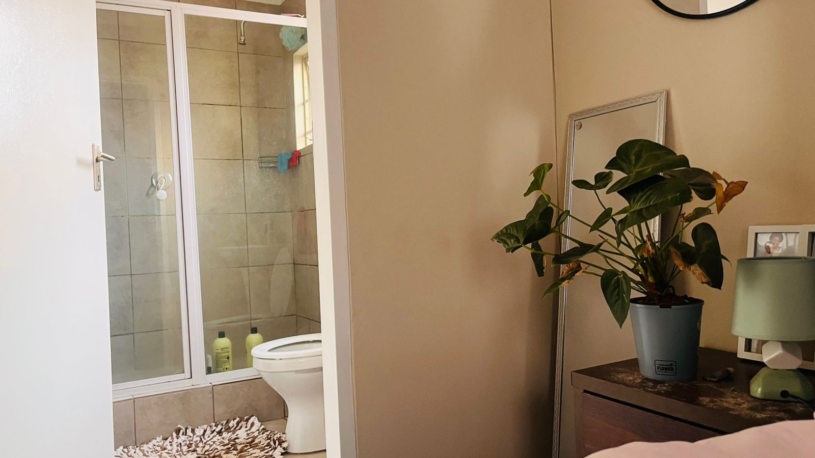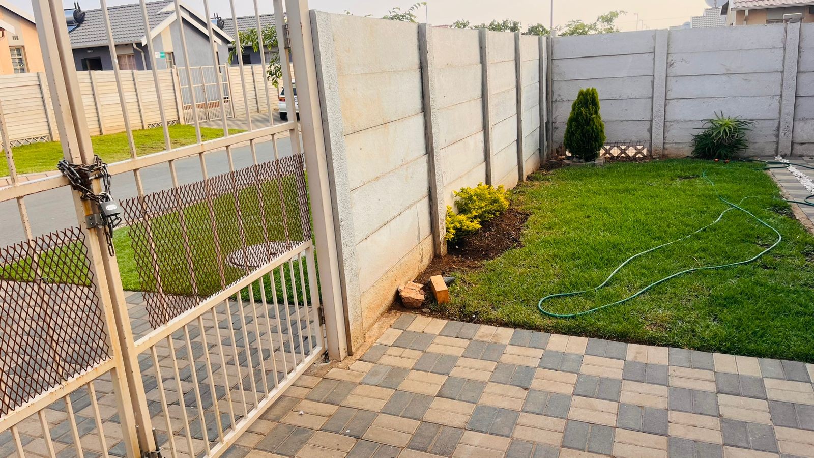 Upon entry, you are welcomed by a spacious open plan lounge and kitchen. The jaw-dropper remodelled open kitchen/living room plan is flawless for a buyer that is curious about what makes Sky City the supreme Alberton. From the attractive lounge entrance to the bedrooms, this house is tiled throughout for a comfortable living offering you a lifestyle of peace and tranquillity. The main bedroom has an en-suite bathroom tiled halfway to the ceiling. It has 2 bathrooms plus shower . The main ensuit has a shower inside and guest room a bathroom . Close to Sky City Mall and Royal Schools are within your reach.