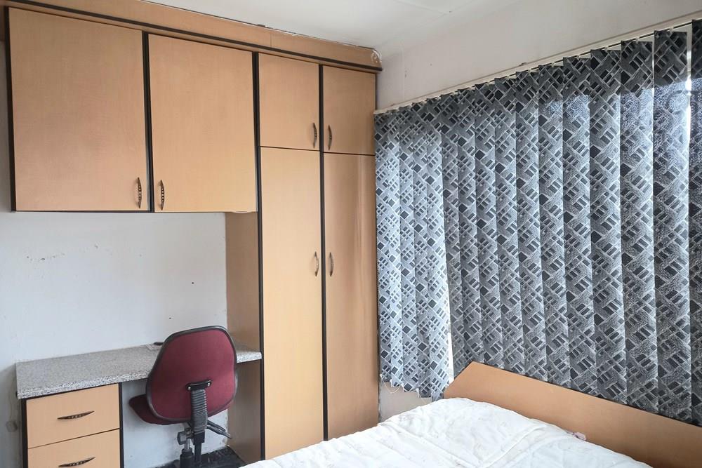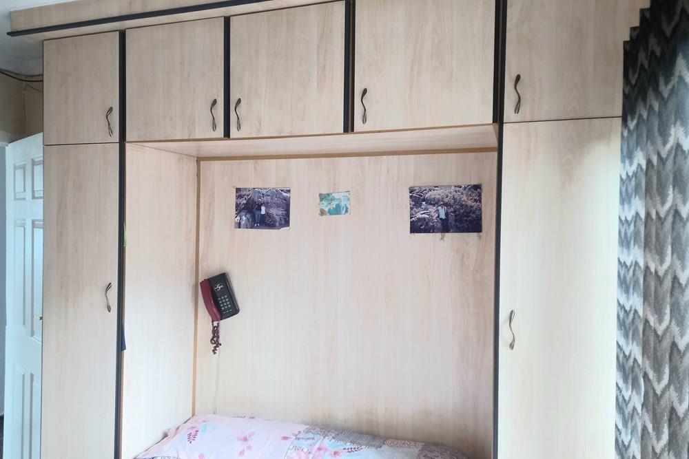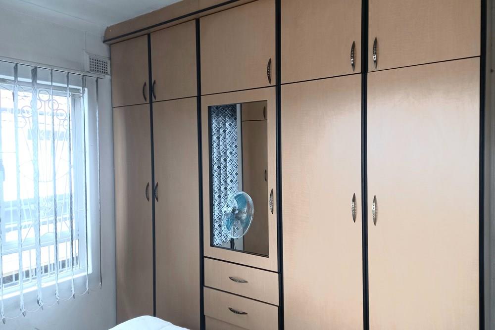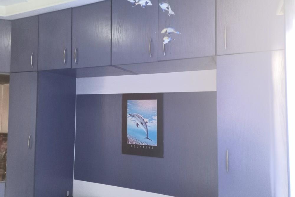 A passage leads you to three spacious bedrooms, all featuring built-in cupboards to provide ample storage space.