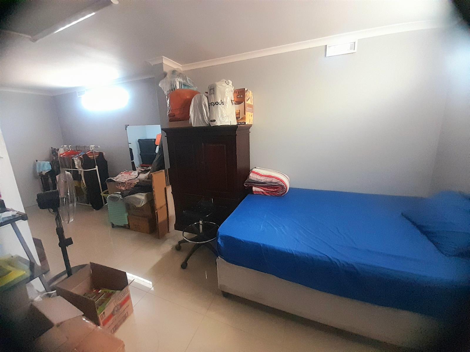 Throughout the home, porcelain tiles create a sleek finish, while the exterior yard is fully paved except for a small patch reserved for planting. Safety is a priority, with burglar guards on all windows and doors, complemented by a fitted alarm system to ensure peace of mind.