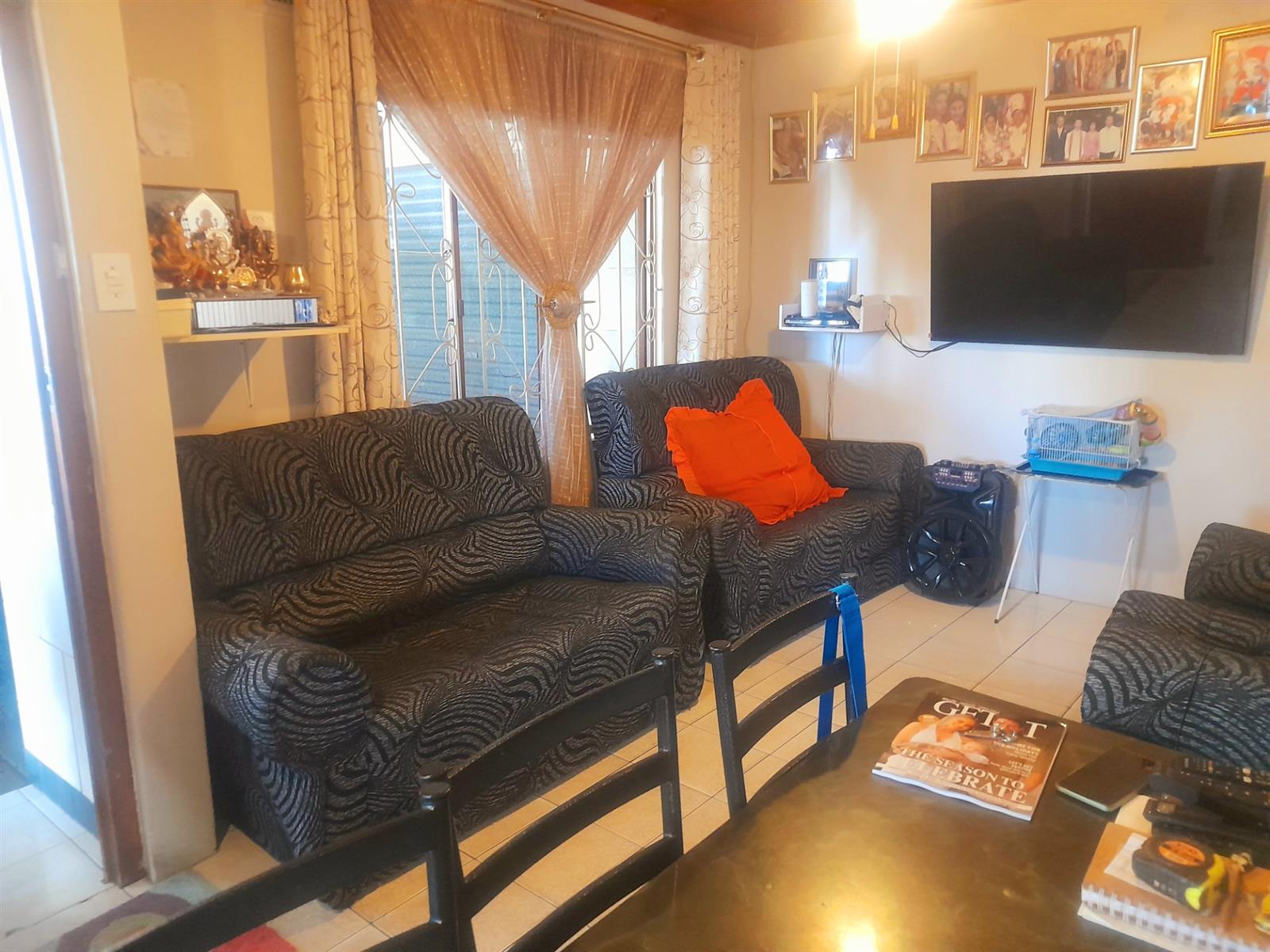 The property sits comfortably on road level, ensuring wheelchair-friendly access, and is located in a secure, sought-after neighborhood. A single lockup garage is positioned on the left side of the house, while the expansive front yard and driveway are covered by a massive carport, offering secure parking for up to six vehicles in addition to the garage. The entrance flows into an expansive lounge, ideal for entertaining, with ample space to accommodate both a fridge and freezer to serve the adjacent kitchen.
