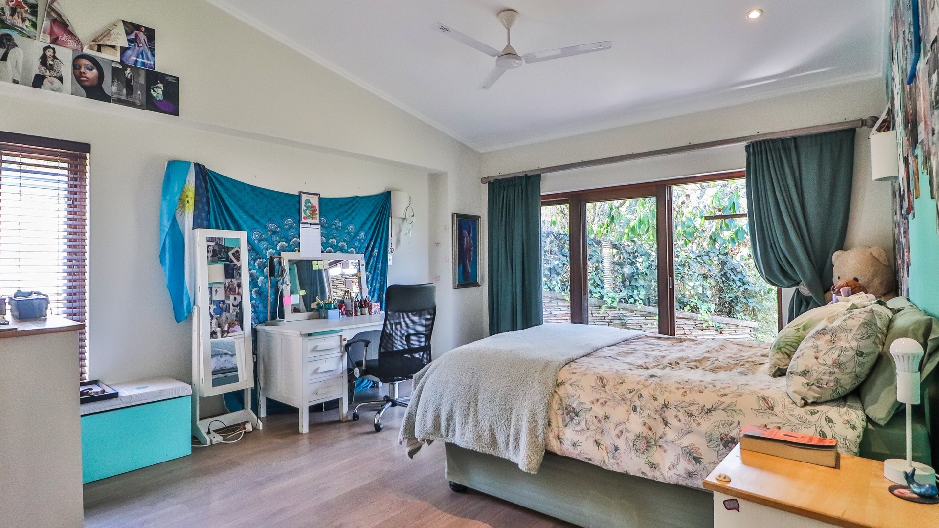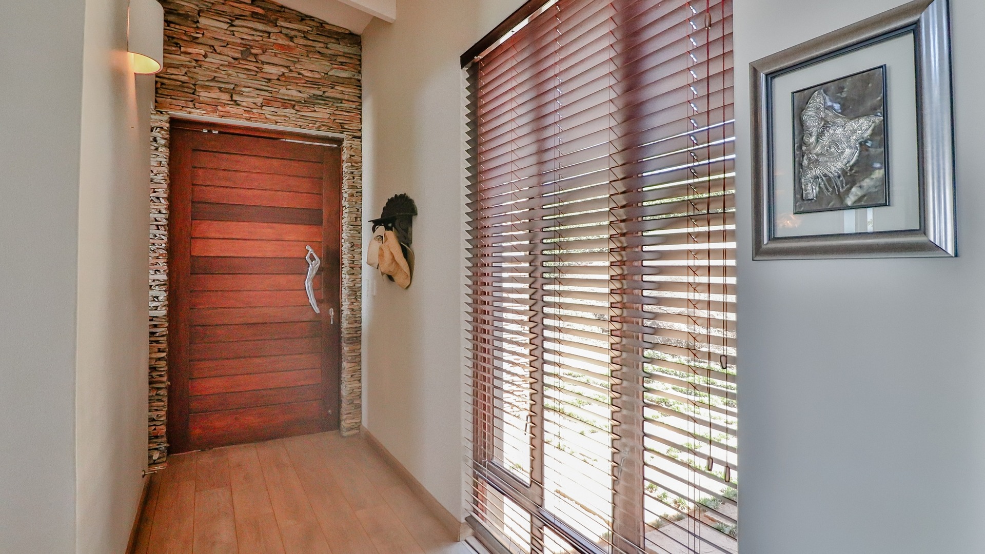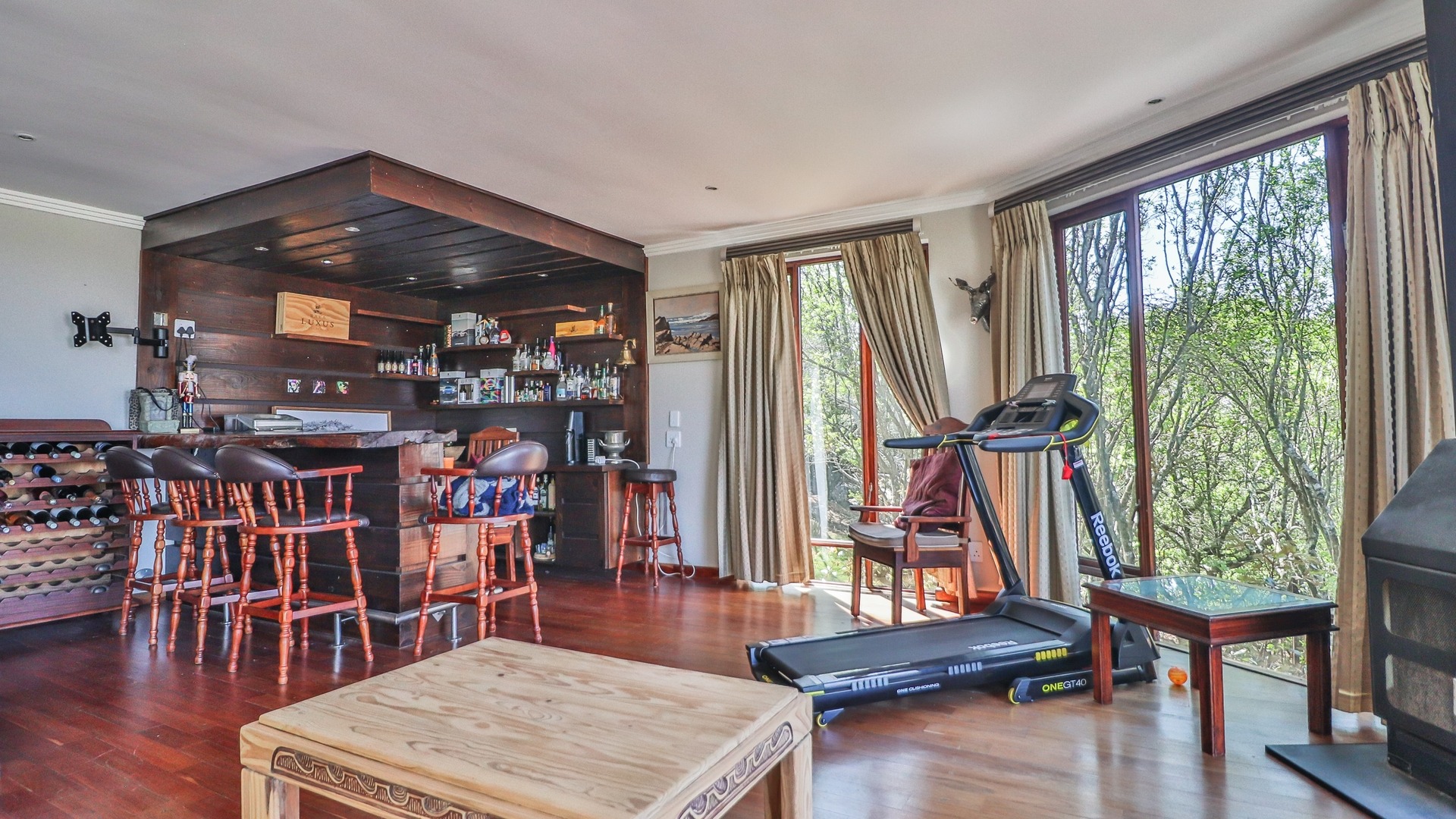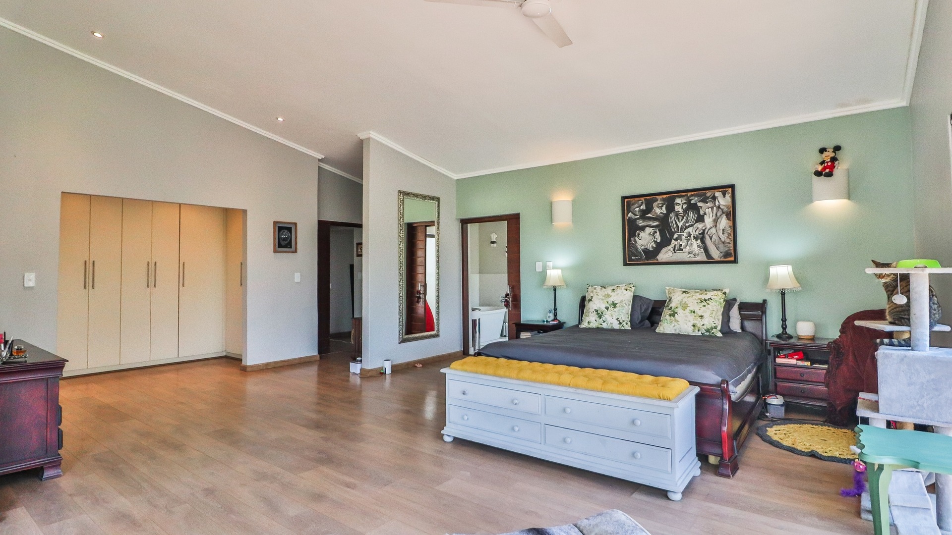 Reiner Forsche design, with vaulted mono pitch ceilings and natural stone features throughout, it stretches itself within the natural shrubbery which abounds. On 1 hectare of land, much of the space is indigenous bush, bird life is abundant, and the birds find this to be their favourite spot. The open plan living areas blends itself into the deck with pool and wrap around verandas which compliment the access to views from every room. The sliding folding doors open fully to optimise the outdoor living which is so prevalent in the lowveld. There is also a viewing deck which is nestled within the natural woodland, perfect for bird watching, an outdoor gym or additional exterior entertainment area.