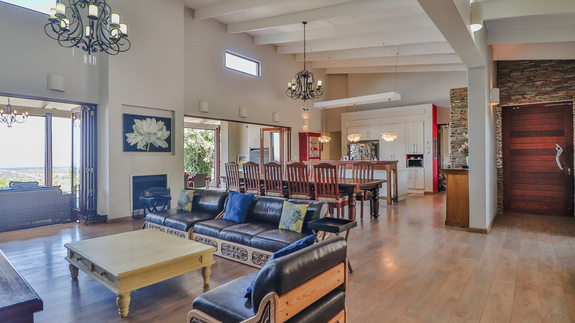 This home is perched on top of the Pamushana estate, overlooking the countryside, with panoramic views which stretch from towards the Kaapschehoop mountains in the distance.