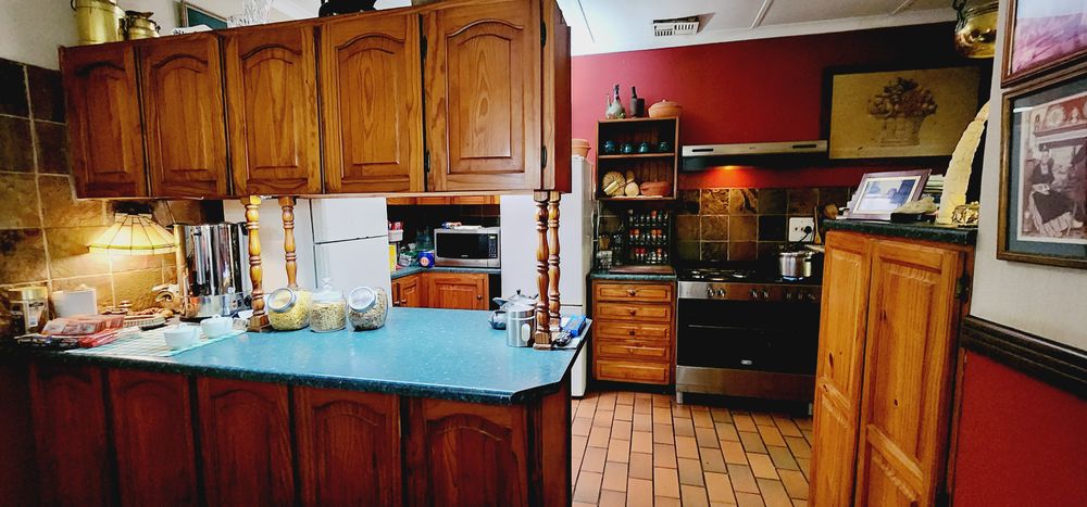 The guest house features a main dining hall perfect for hosting meals, a fully equipped kitchen, laundry facilities, and a built-in bar that enhances the experience for guests. Outdoor amenities include a refreshing pool for relaxing on warm days and ample parking space for guests.