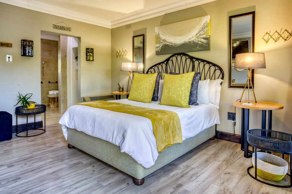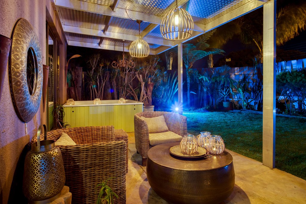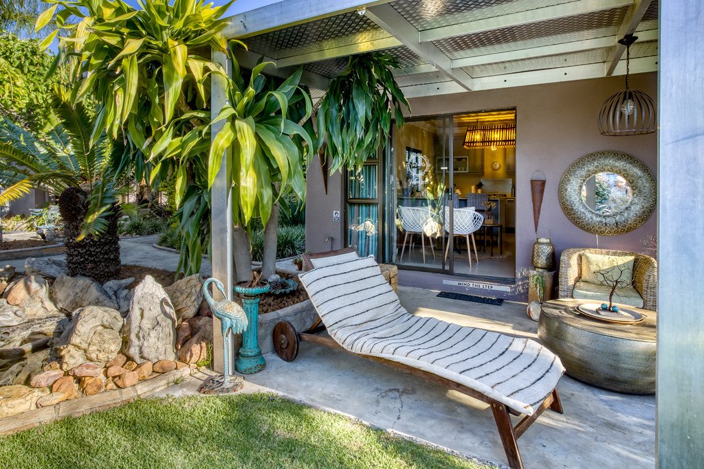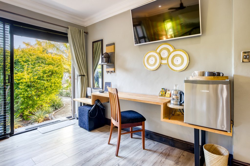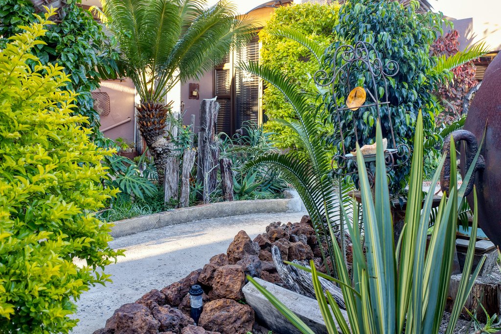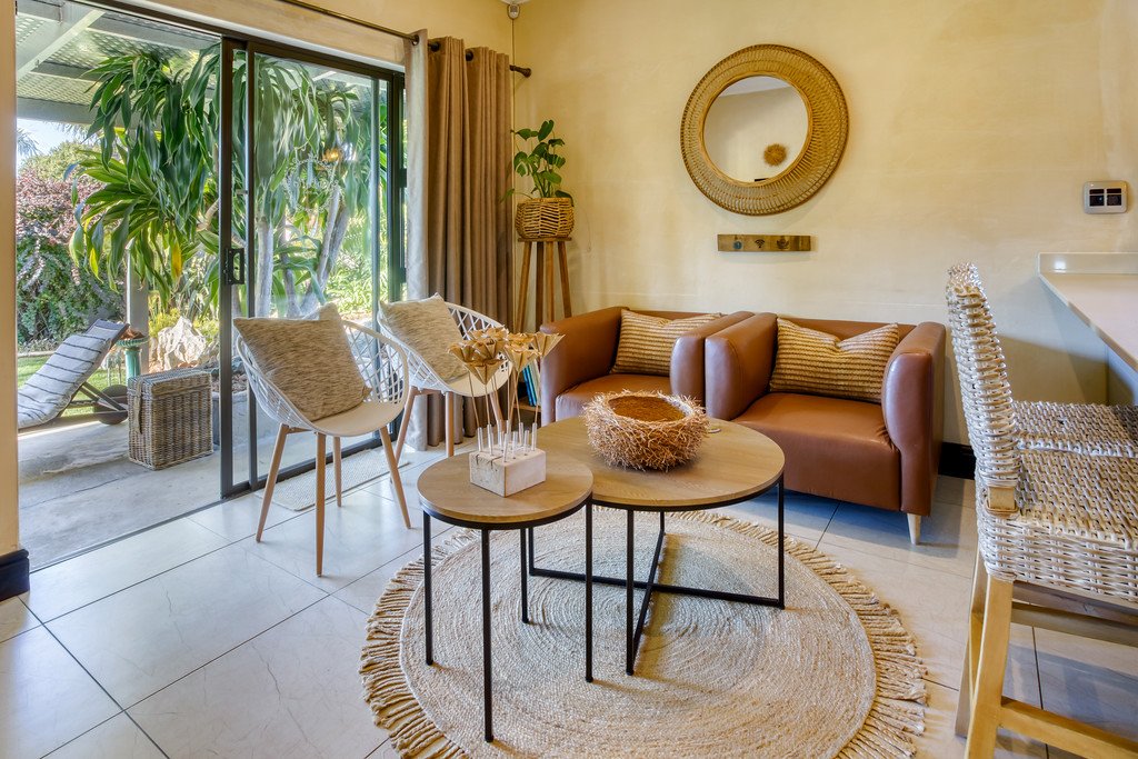 The main guest house boasts three beautifully designed rooms, each with a queen-size bed, en-suite bathroom, and a private entrance leading to a small patio overlooking the garden. Every room has its own distinct flair, ensuring a unique experience for every guest.