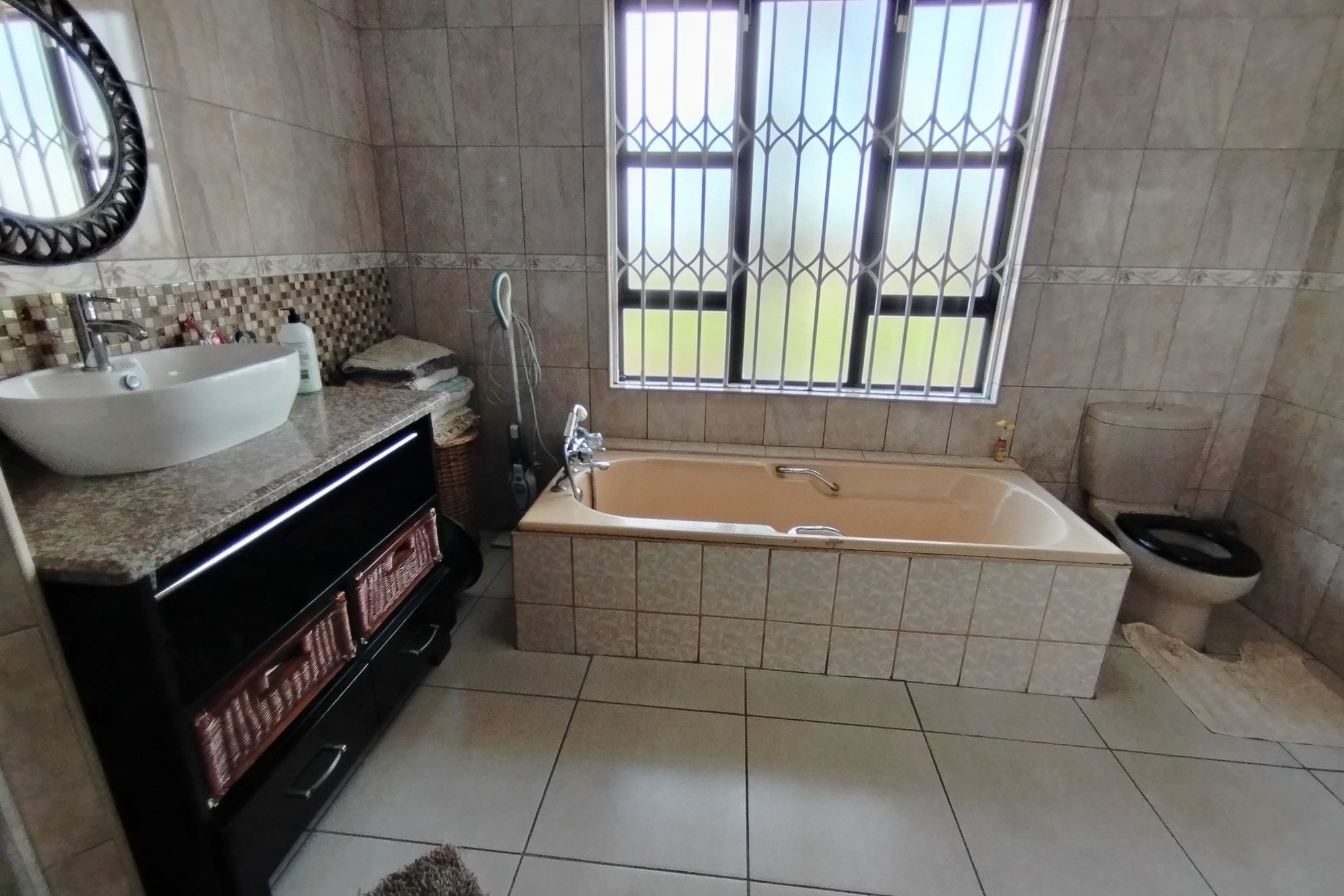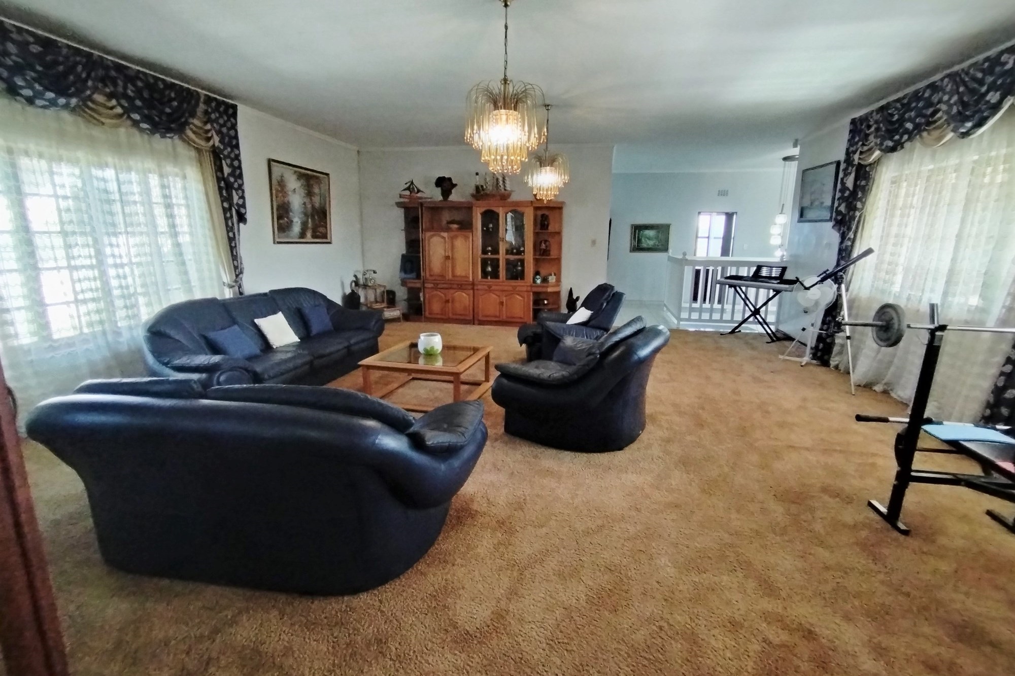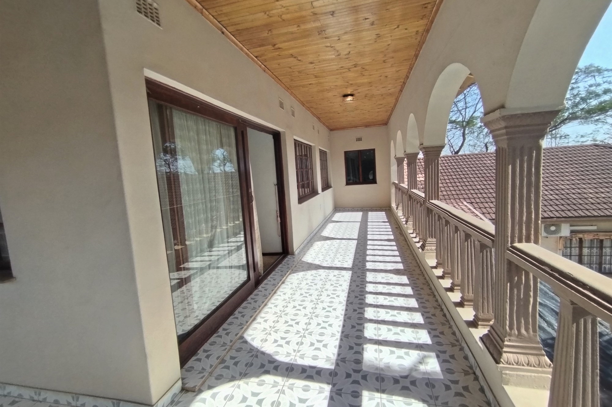 Welcome to your dream home in the highly coveted suburb of Empangeni. This stunning 7 bedroom, 6 bathroom triple storey house is the epitome of luxury and elegance. Boasting two entrance gates, this property offers the utmost privacy and security. As you enter through the remote controlled gate, you are greeted by a beautifully landscaped garden and a grand driveway leading up to the house. The first floor of this magnificent house features a spacious braai and entertainment area, perfect for hosting gatherings with friends and family. This area overlooks a sparkling pool, providing a serene and tranquil atmosphere. The bottom floor also offers 3 bedrooms, a toilet, bath, and shower, as well as a bar area and 2 laundry rooms. On the second floor, you will find 3 more bedrooms and 4 bathrooms, ensuring ample space for everyone in the family. The dining area, TV room, kitchen, and scullery are all beautifully designed and perfect for entertaining guests. The third floor is where you will find the ultimate relaxation and entertainment space. It features a study room with a shower and toilet, a bedroom with an en-suite bathroom, a lounge, a music/cinema room, and a balcony with breathtaking views. This presidential house is equipped with 5 air conditioners, 16 cameras strategically placed around the property, beams, and a working alarm system, ensuring the safety and security of your loved ones. It also has a BnB license, making it a perfect investment opportunity. Don't miss out on the chance to own this luxurious and prestigious property. Contact us today to schedule a viewing.