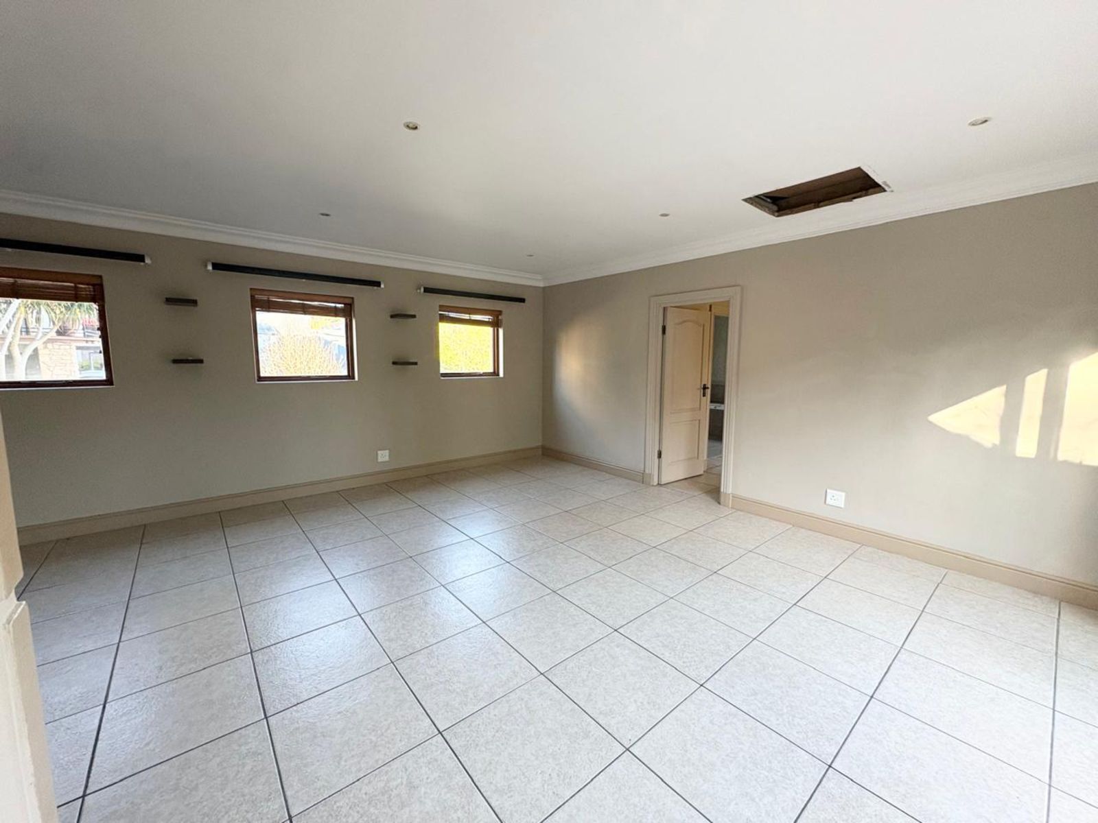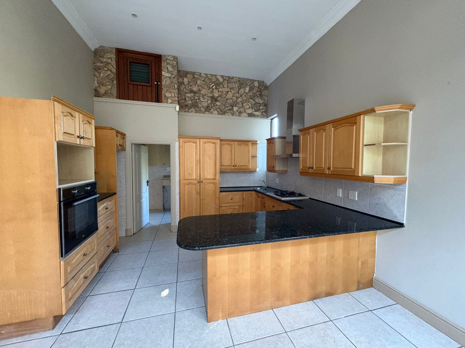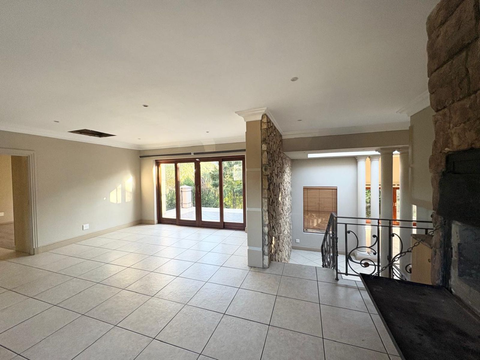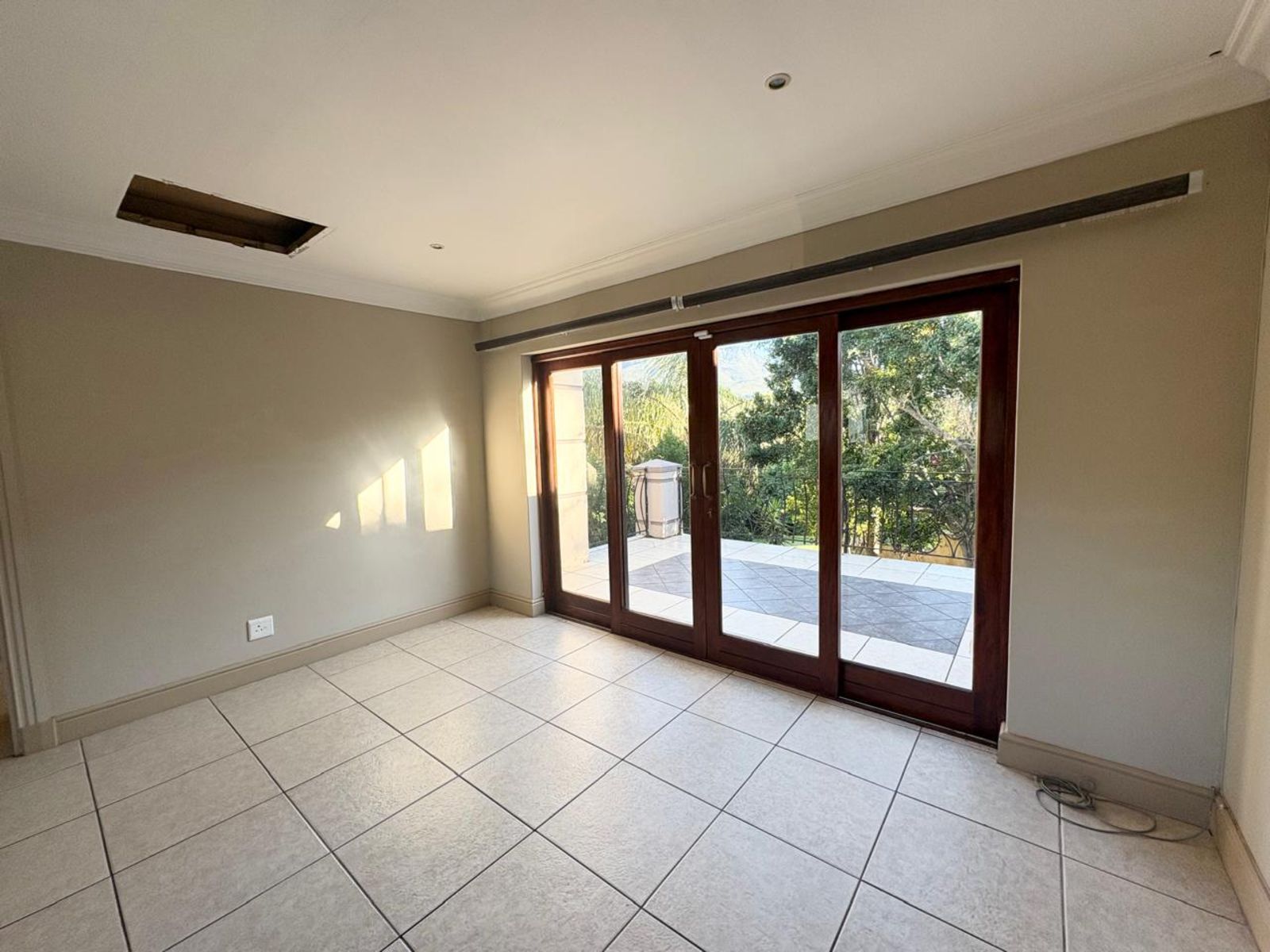 Indoor braai room with large balcony and an outdoor fire pit below which overlooks your swimming pool. Tall palm trees grace the boundary and entrance where a water feature flows. The custom stonework and ironwork adds to the beautiful villa aesthetics.
