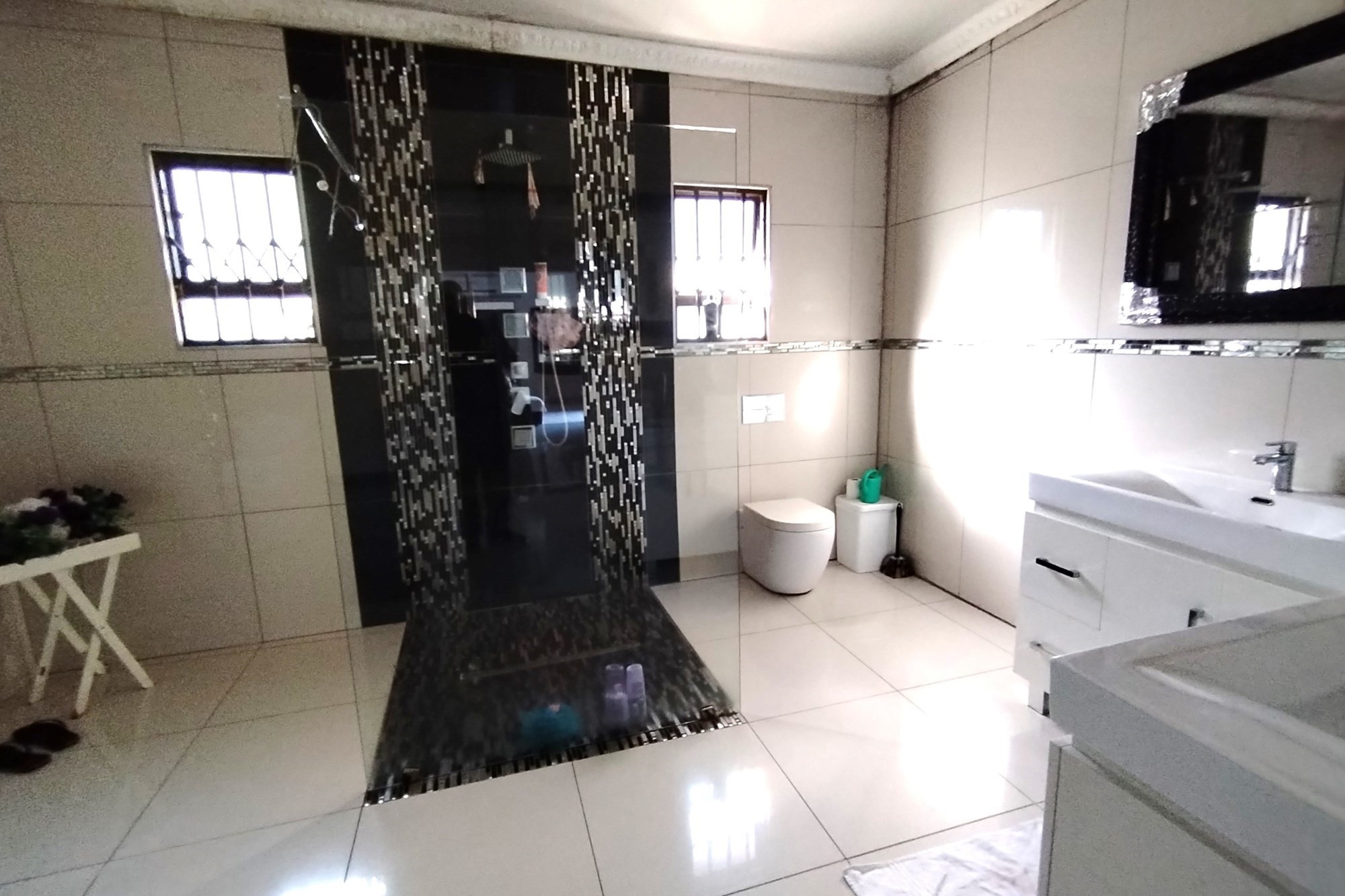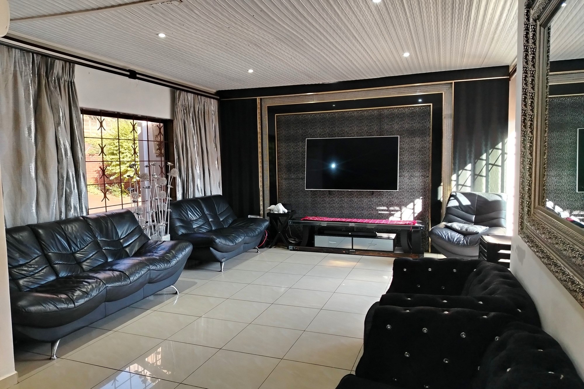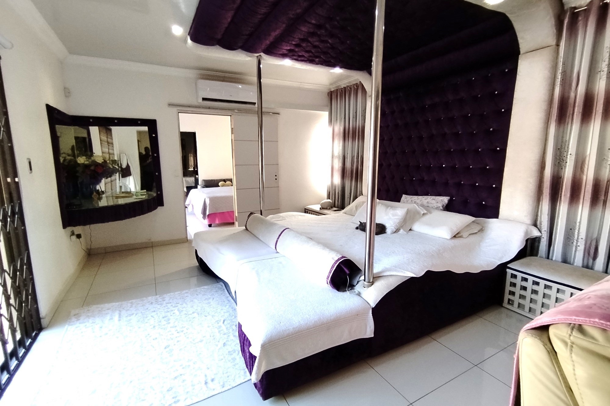 Welcome to your dream home in the highly desirable suburb of Panorama in Empangeni. This luxurious 5 bedroom house sits on a double stand, offering ample space and privacy for you and your family. As you enter the property, you will be greeted by a remote controlled double garage and a carport that can accommodate 2 cars. Step inside and be amazed by the stunning features this home has to offer. The entertainment area facing the sparkling pool is perfect for those hot summer days, while the CCTV cameras provide added security for your peace of mind. The house also includes a laundry room and storage room for your convenience. The 5 spacious bedrooms are all fitted with air conditioners for your comfort. Two of the bedrooms have ensuite bathrooms, with the master bedroom boasting a luxurious shower and a Jacuzzi bath tub. The property also boasts 2 beautiful fully fitted kitchens, a guest lounge, and a spacious family lounge, providing ample space for entertaining guests or spending quality time with your loved ones.
