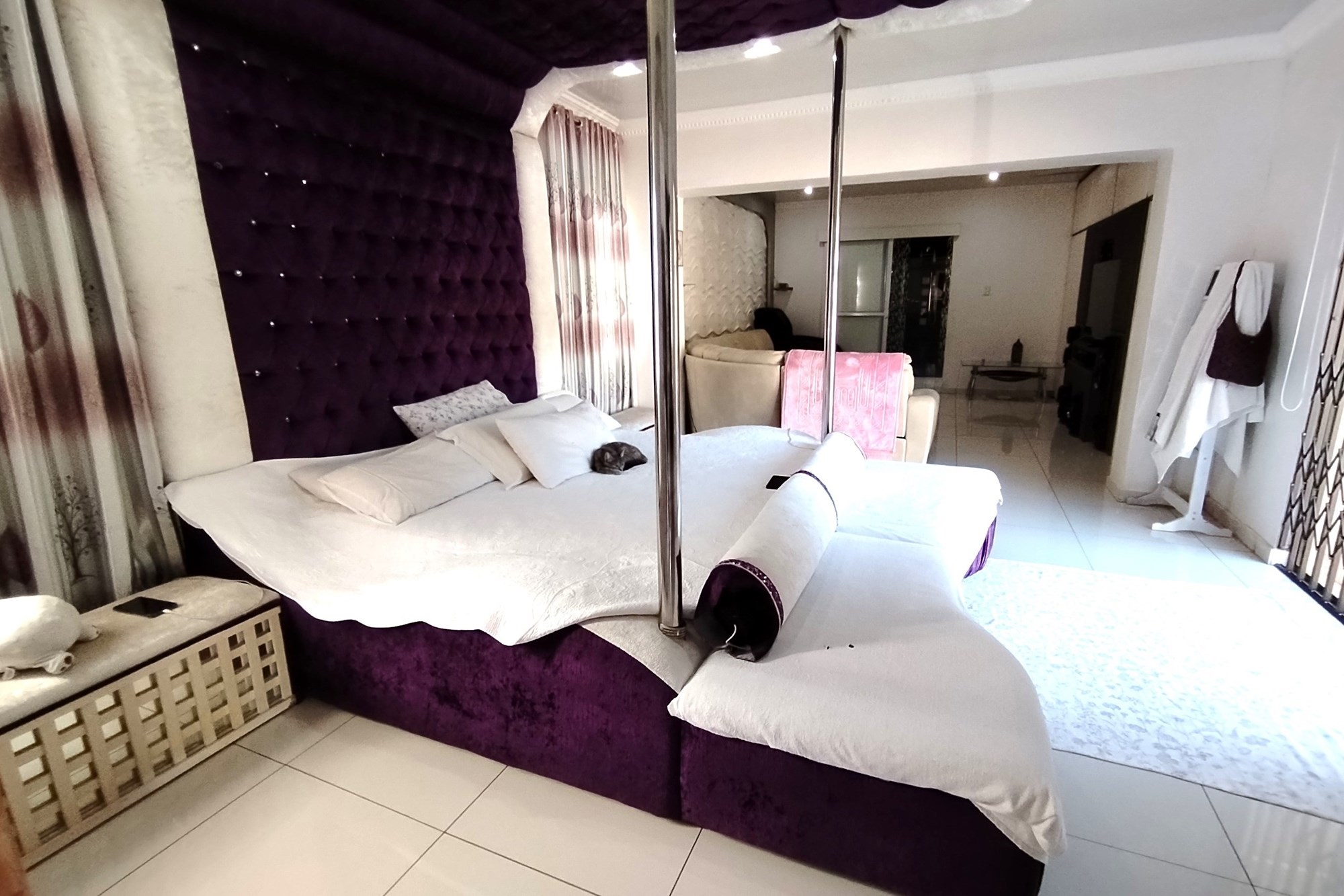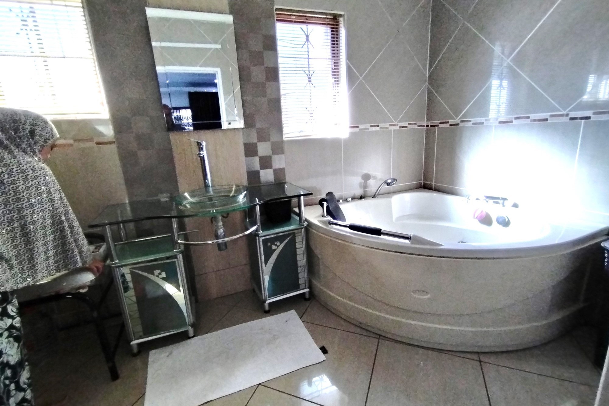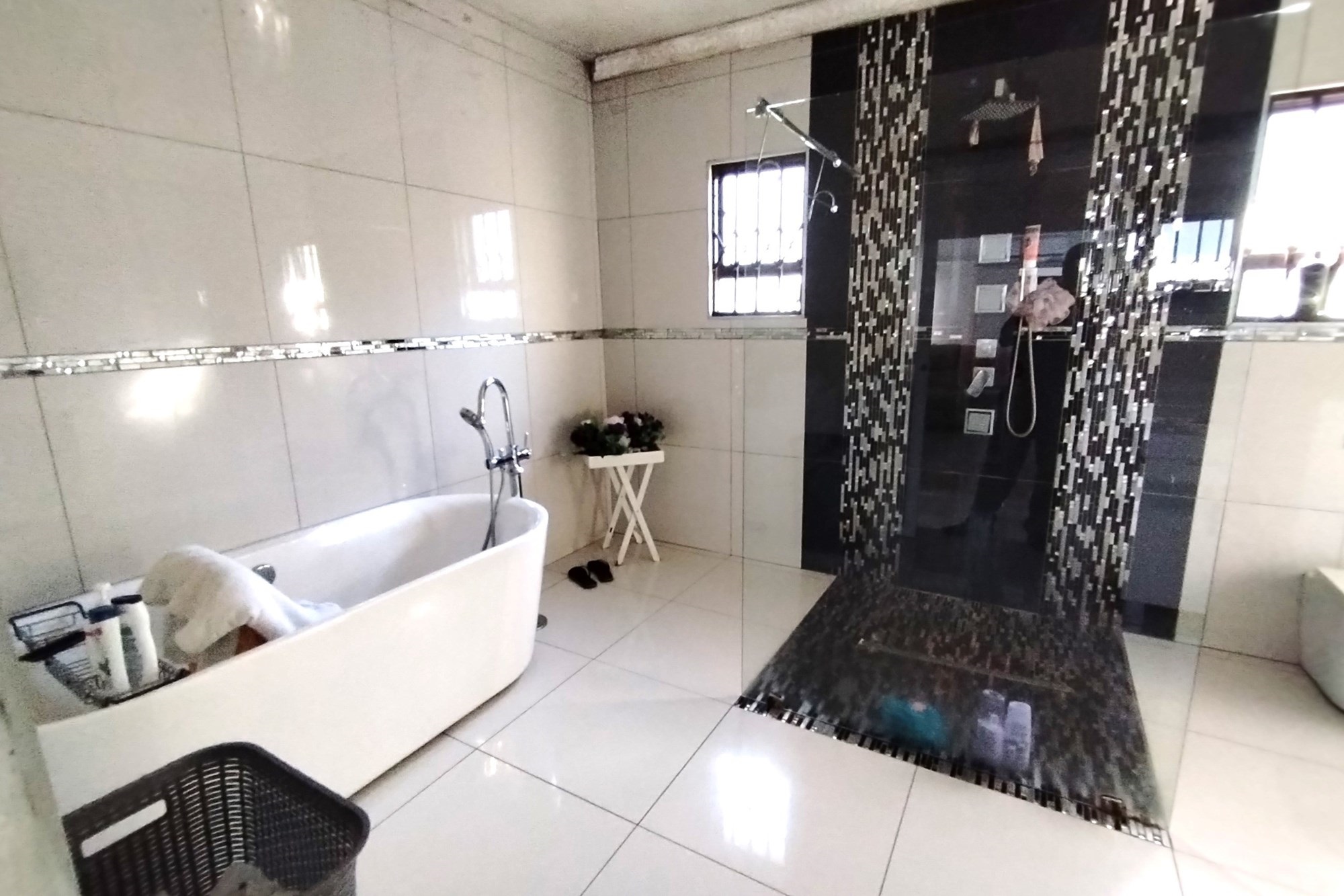 Welcome to your dream home in the highly desirable suburb of Panorama in Empangeni. This luxurious 5 bedroom house sits on a double stand, offering ample space and privacy for you and your family. As you enter the property, you will be greeted by a remote controlled double garage and a carport that can accommodate 2 cars. Step inside and be amazed by the stunning features this home has to offer. The entertainment area facing the sparkling pool is perfect for those hot summer days, while the CCTV cameras provide added security for your peace of mind. The house also includes a laundry room and storage room for your convenience. The 5 spacious bedrooms are all fitted with air conditioners for your comfort. Two of the bedrooms have ensuite bathrooms, with the master bedroom boasting a luxurious shower and a Jacuzzi bath tub. The property also boasts 2 beautiful fully fitted kitchens, a guest lounge, and a spacious family lounge, providing ample space for entertaining guests or spending quality time with your loved ones.