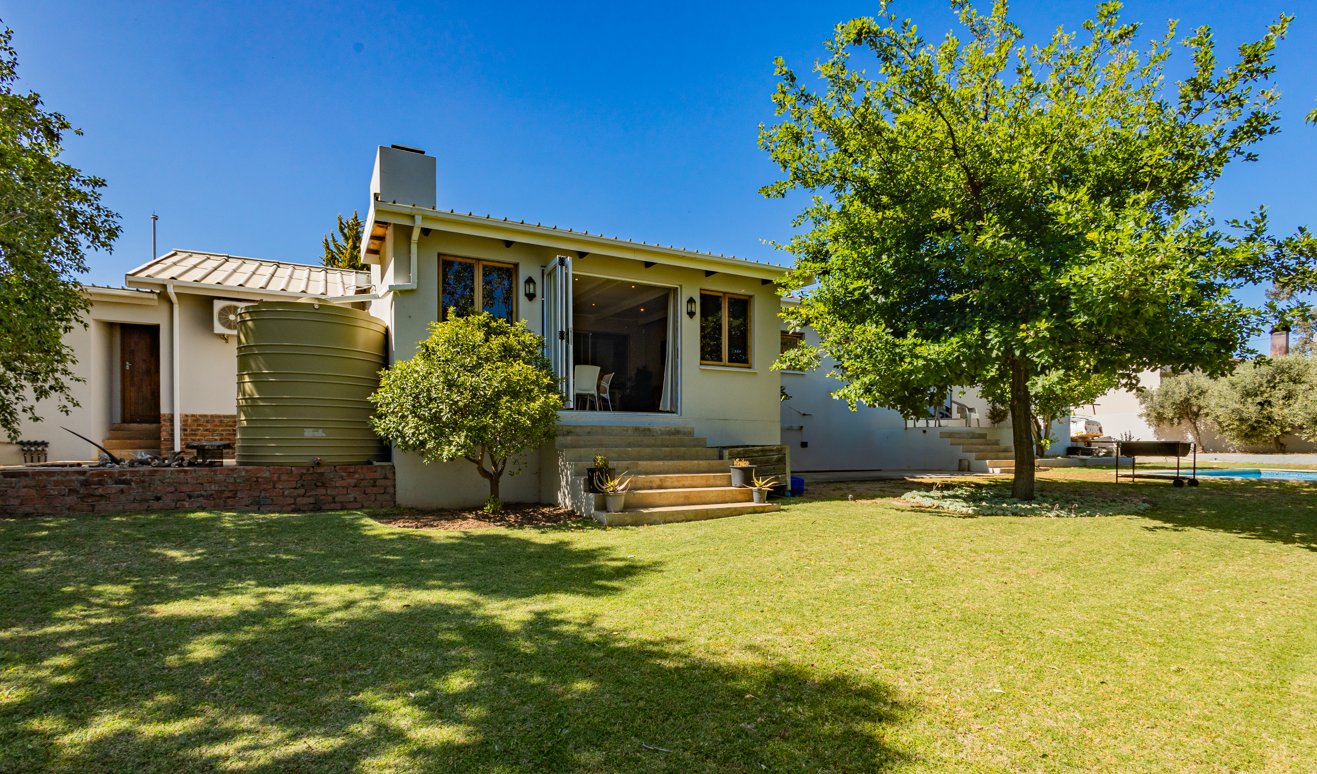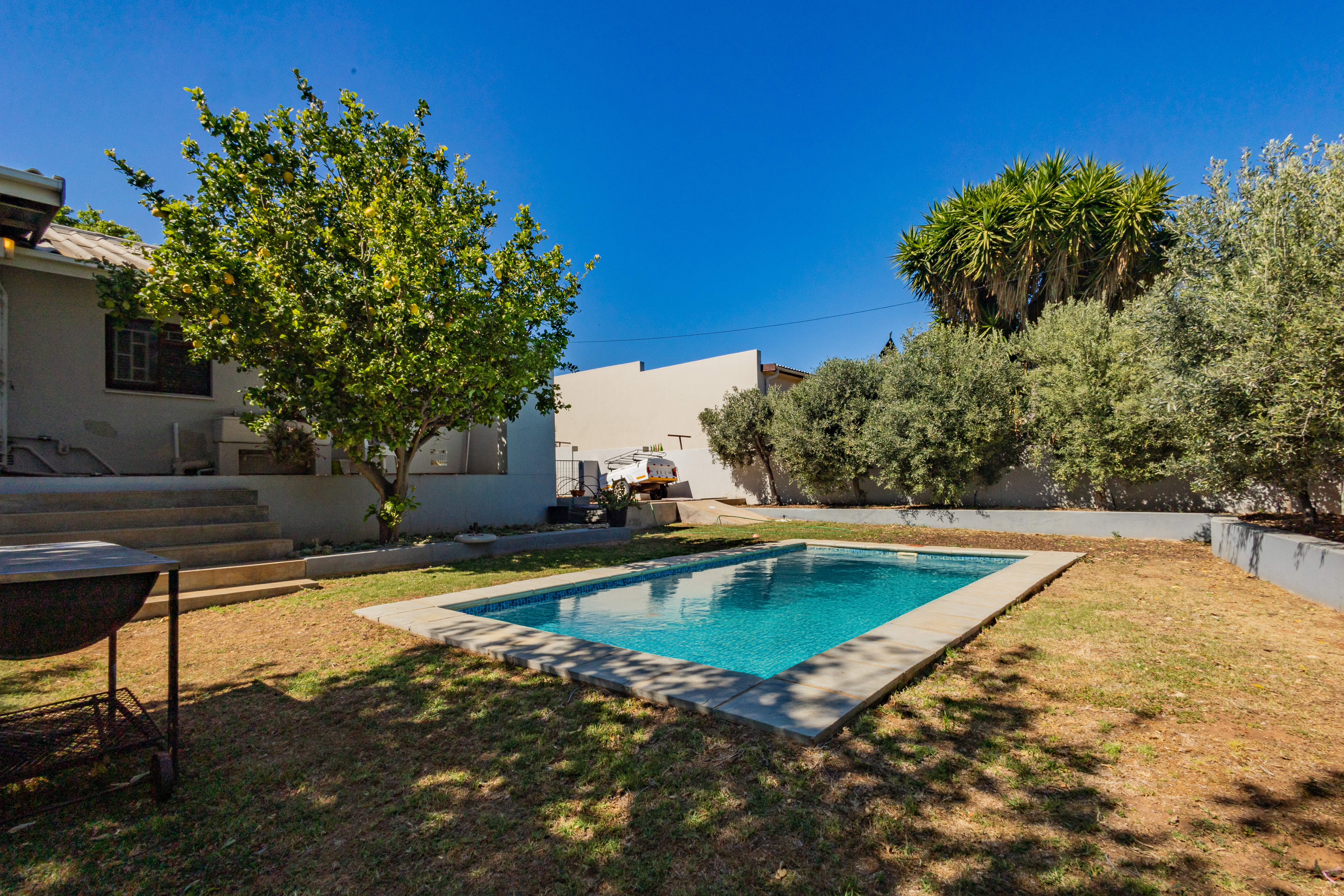 - Private Backyard with a Sparkling Swimming Pool and Manicured Garden.