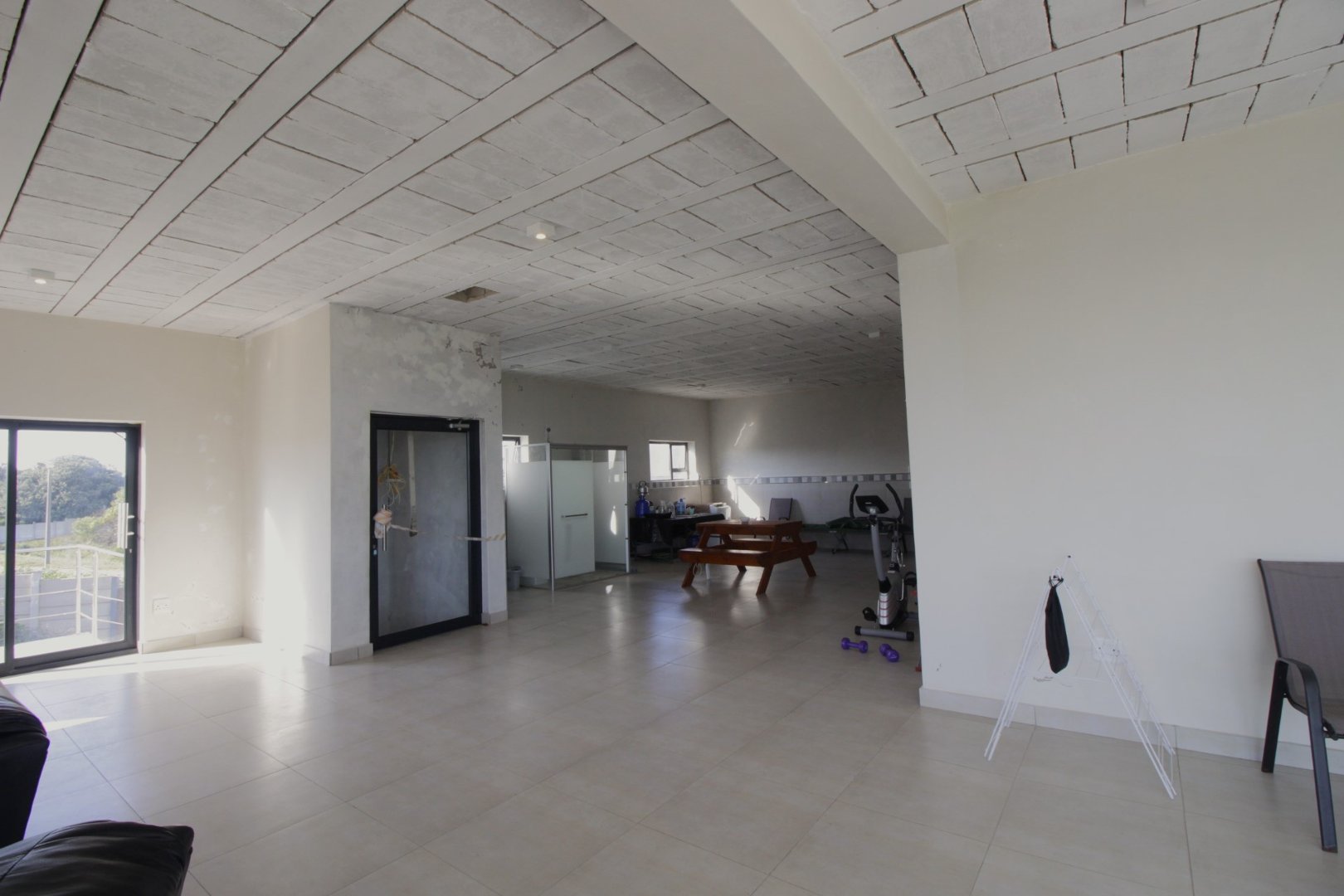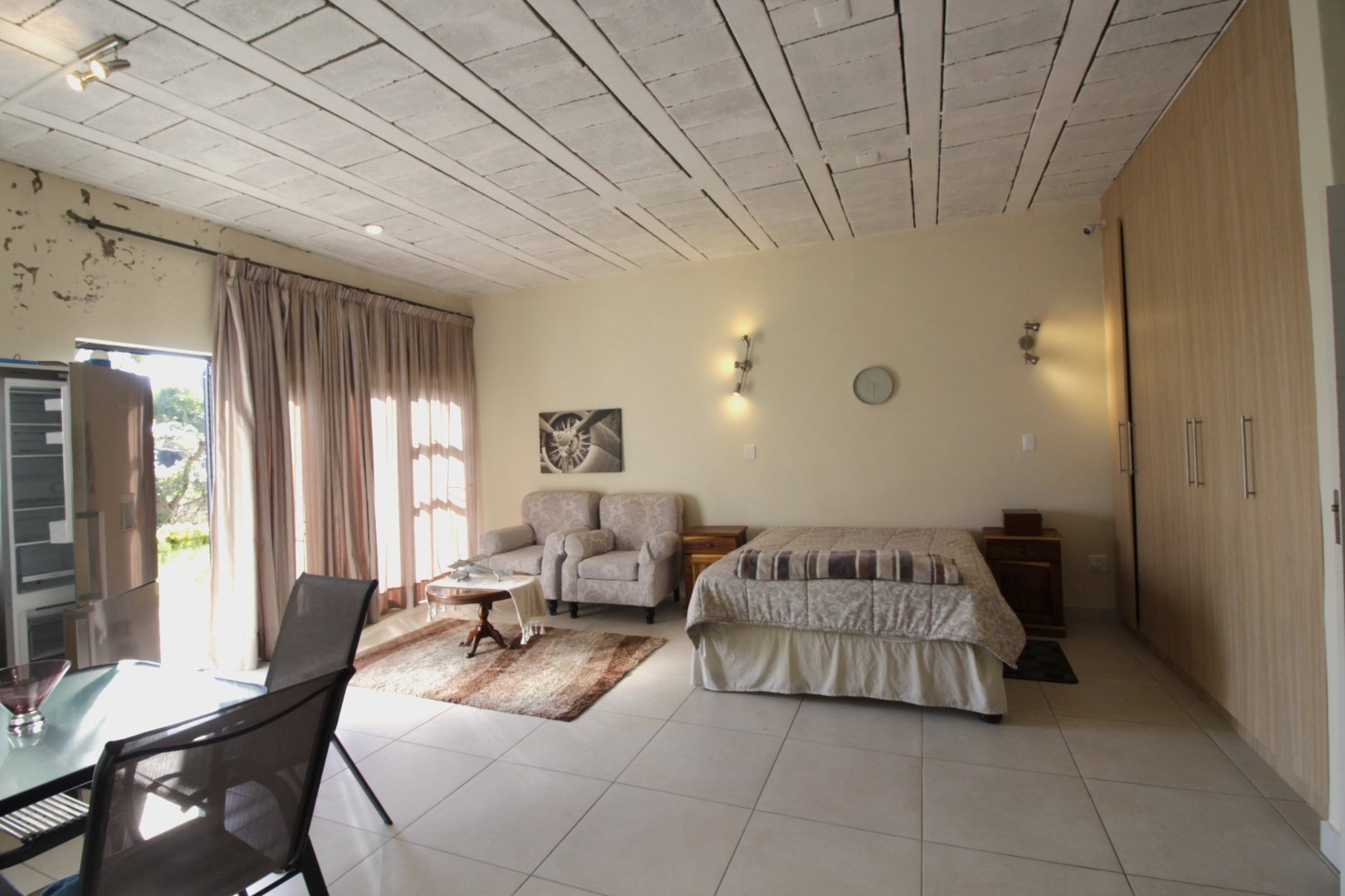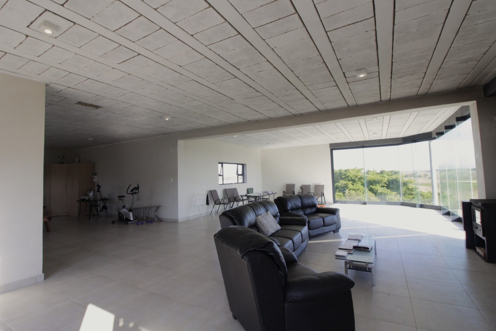 Enjoy the sunset through the glass panels whilst relaxing with a glass of wine. Entertain friends and family in this large open space which leaves much room for the imagination.