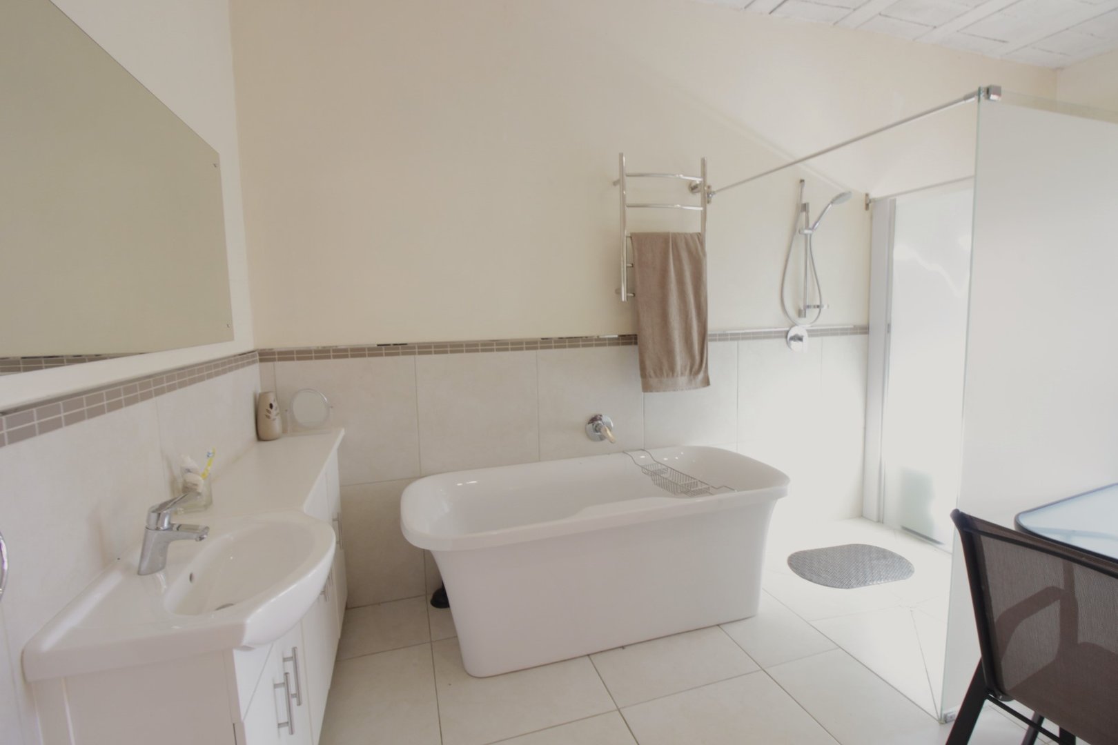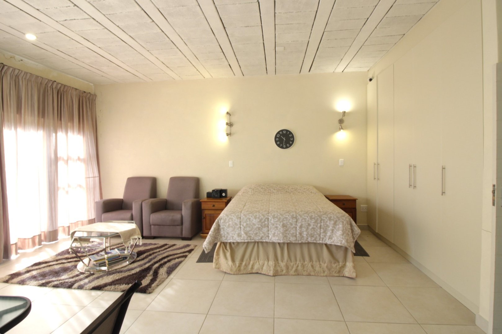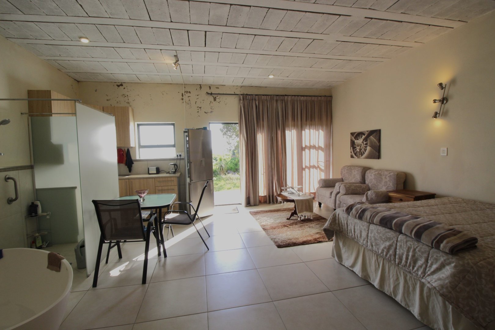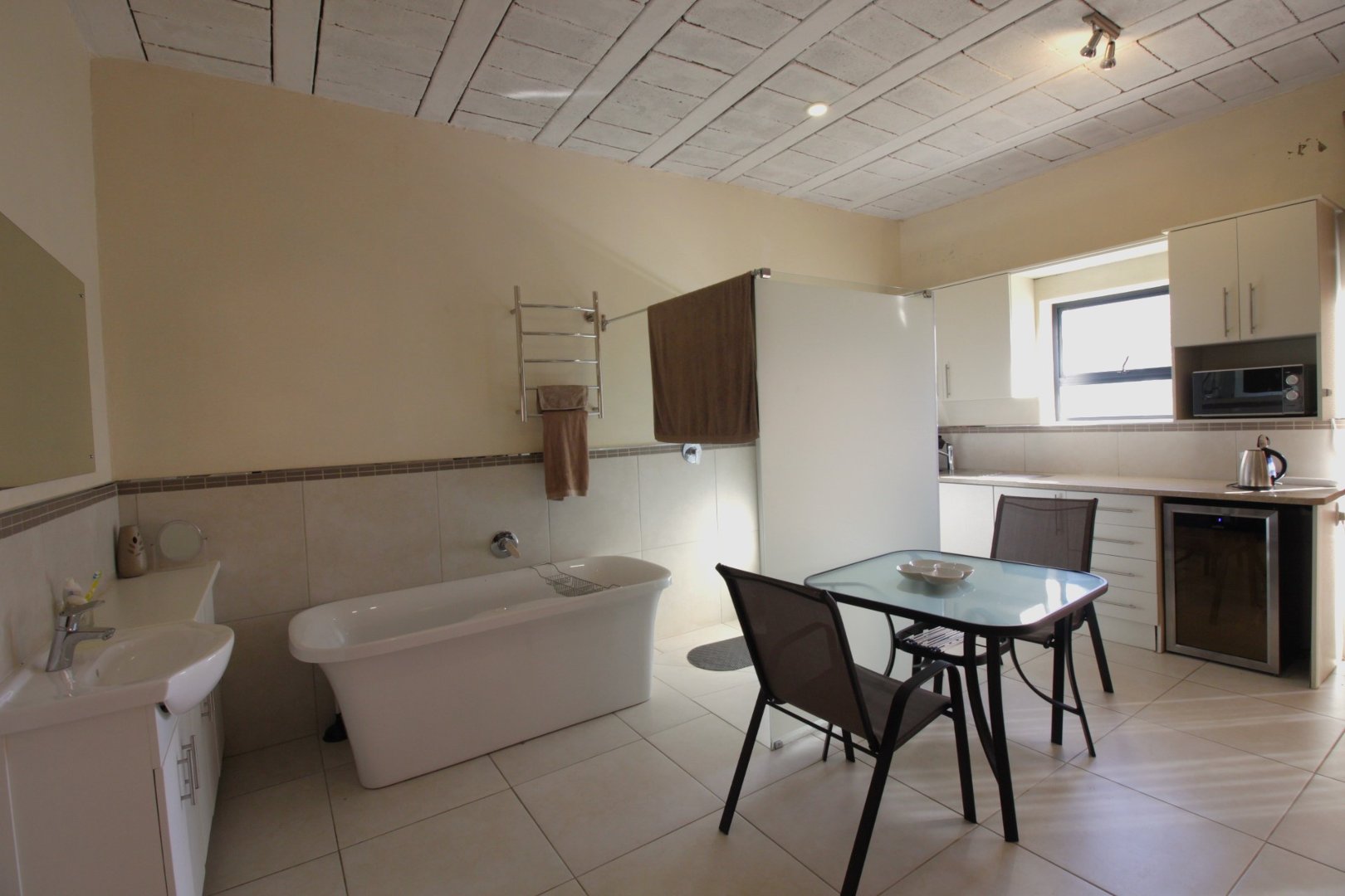 Enjoy the sunset through the glass panels whilst relaxing with a glass of wine. Entertain friends and family in this large open space which leaves much room for the imagination.