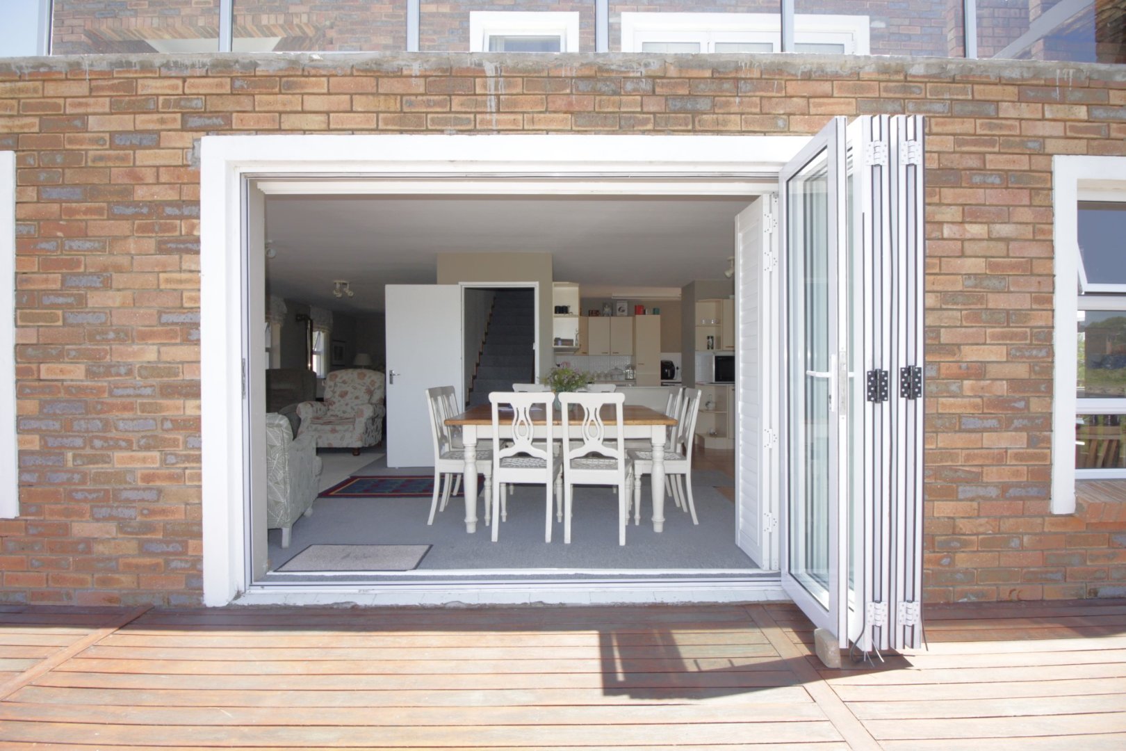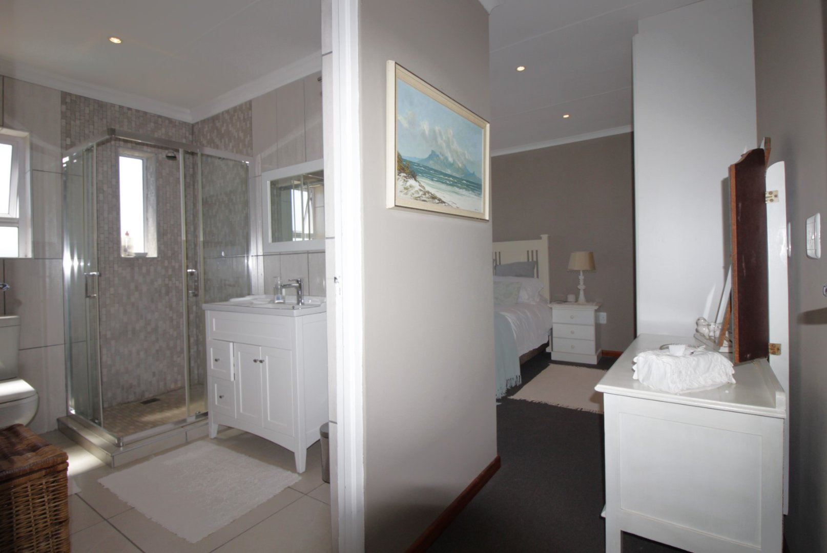 Ascend to the first floor where an open-plan design welcomes you to a formal lounge, cozy TV lounge with a fireplace, dining area, and a well-appointed kitchen featuring ample cabinetry and a delightful Smeg gas stove. Step out onto the wooden deck that overlooks a sprawling garden, where a sparkling splash pool with a heat pump awaits. Enjoy seamless access to the garden and a second-floor balcony via elegant stairs., while a charming wooden balcony at the front, via the lounge invites you to unwind and enjoy breathtaking sunsets.