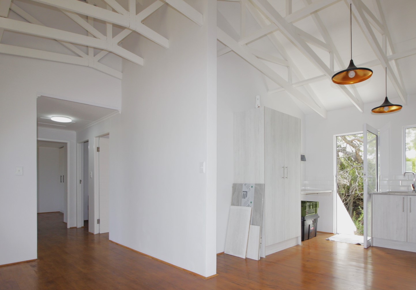 Designed with the life-loving family in mind, the open-plan layout connects the living space to a modern kitchen, complete with a gas stove and stylish cabinetry, making it the heart of the home.