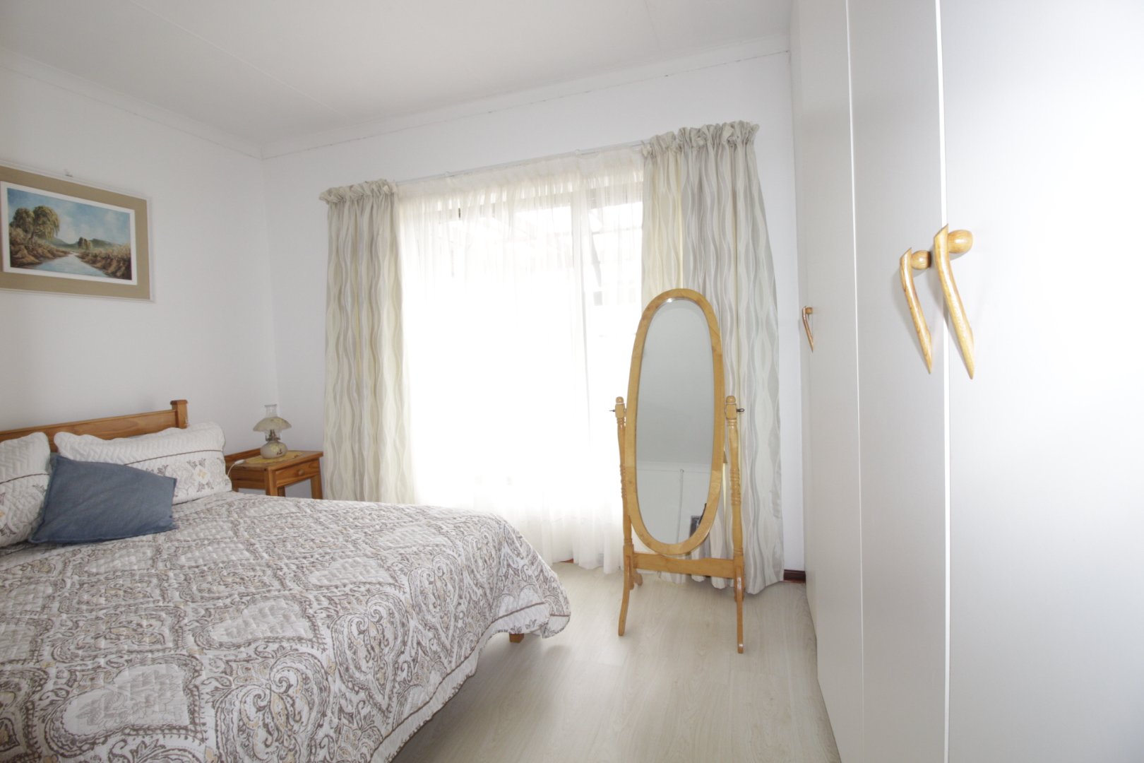 The main house offers open-plan living, a well-designed kitchen with scullery, two large bedrooms, two bathrooms, and an enclosed entertainment patio with built-in braai.