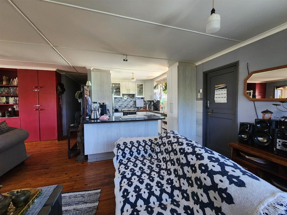 The main house offers three comfortable bedrooms, a full bathroom, and an extra guest shower. The open-plan kitchen and living area flow into a cozy braai room with large aluminium windows, opening to a lovely wooden deck — perfect for relaxed summer days. Two of the bedrooms open directly onto the deck, creating an easy blend of indoor and outdoor living.