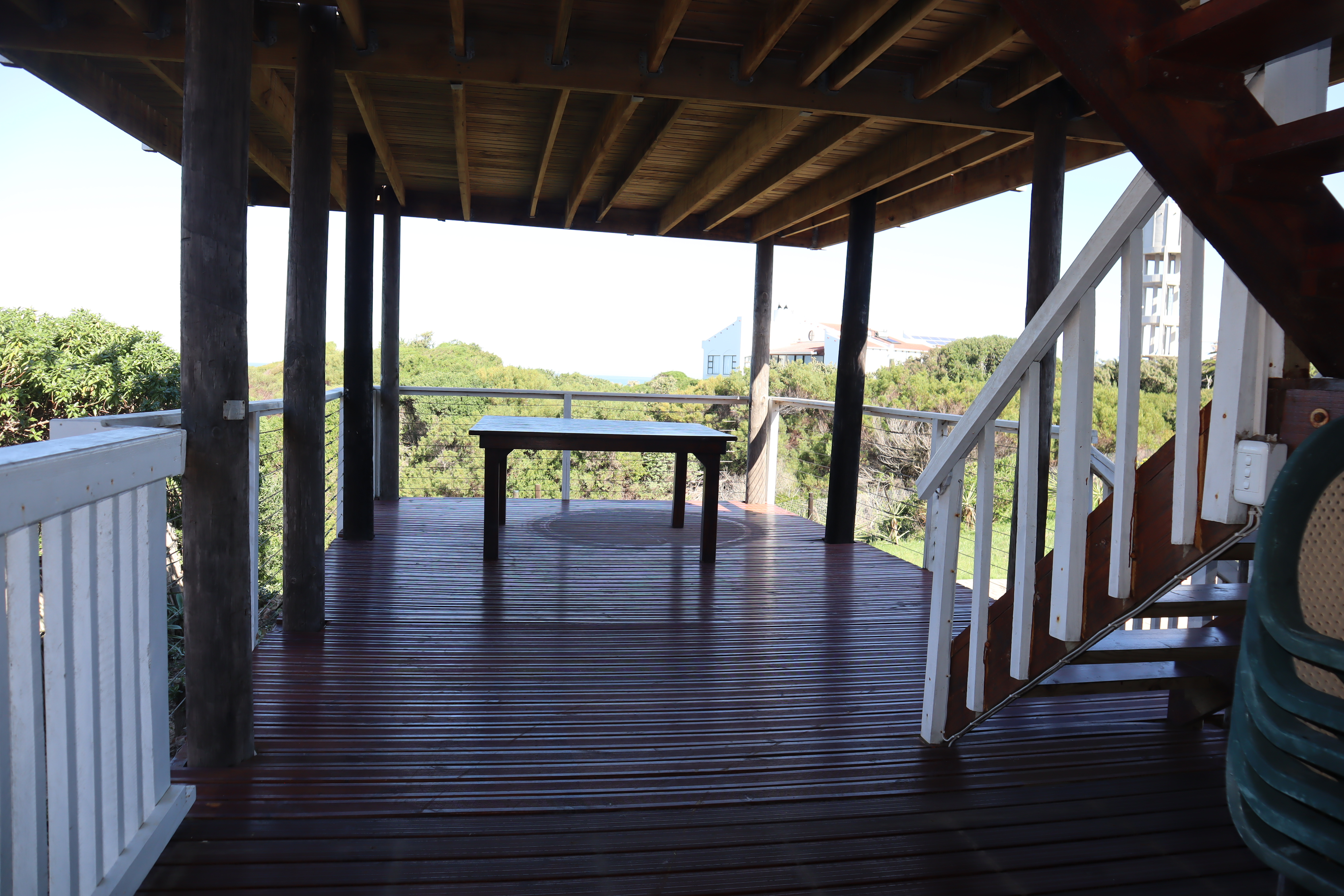 Venture to the next level and be captivated by the airy open-plan layout encompassing the kitchen, dining, lounge, TV, and braai areas. Step out onto the wooden deck facing the beach, where mesmerizing views await, perfect for indulging in sundowners or witnessing breathtaking sunrises.