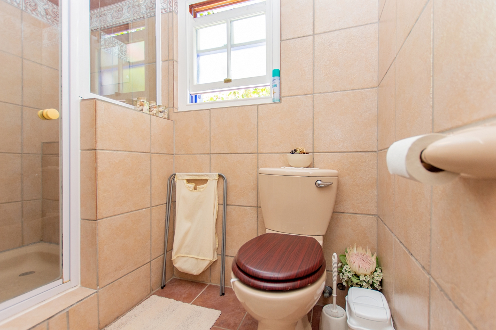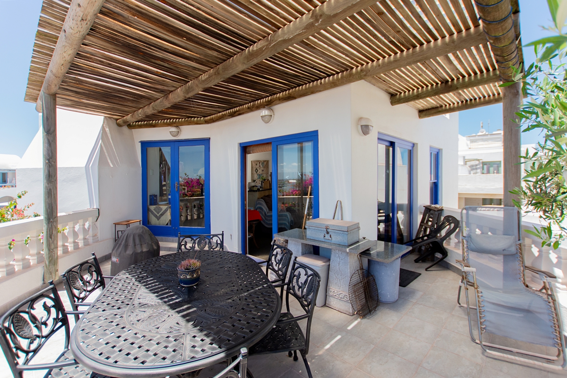 The main bedroom is generously sized, featuring bamboo flooring, abundant cupboard space, and a dedicated workspace—ideal for remote work. The en-suite bathroom includes his-and-hers basins, and the bedroom windows provide stunning sea views. A staircase leads to another patio with magnificent sea views, perfect for quiet contemplation.