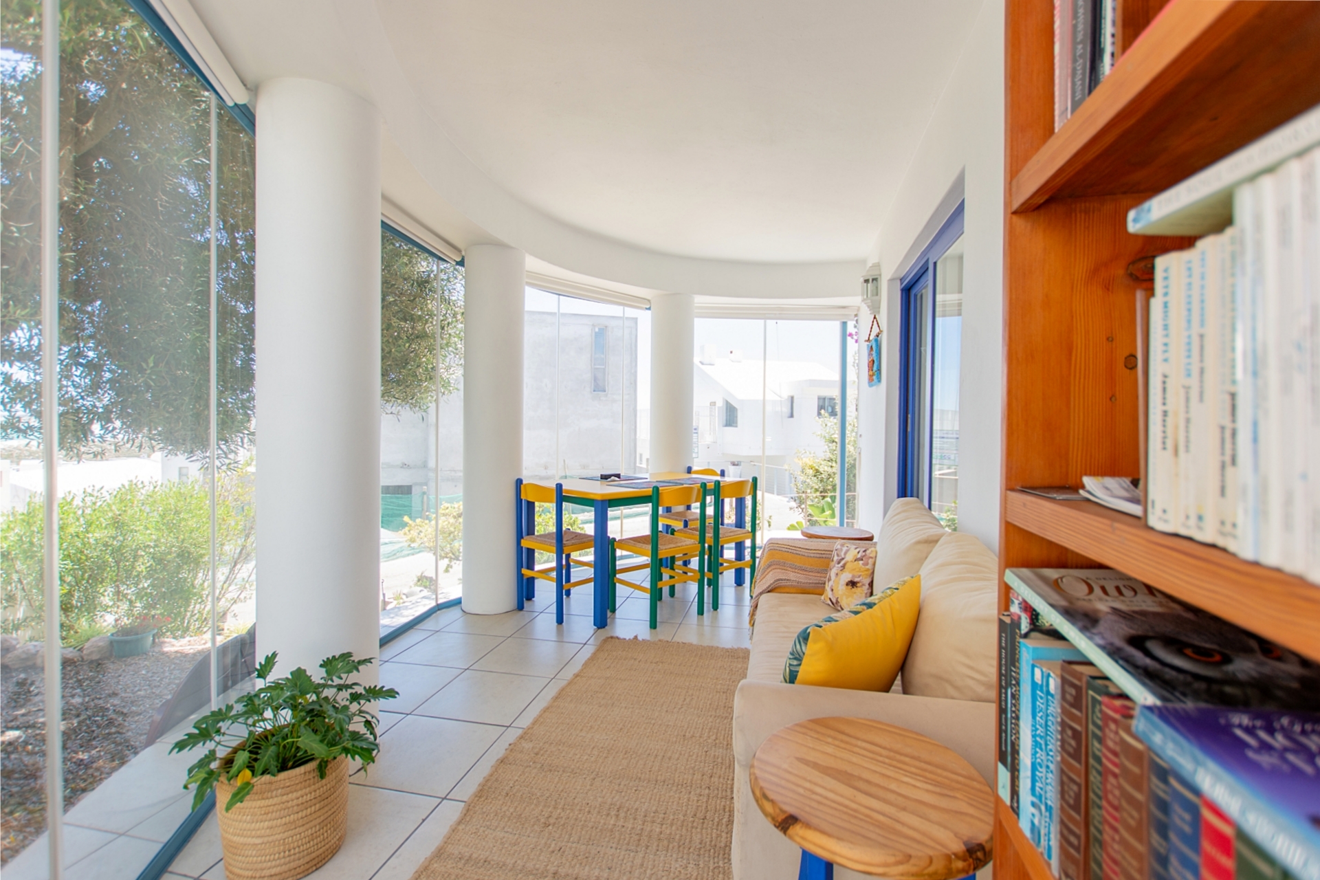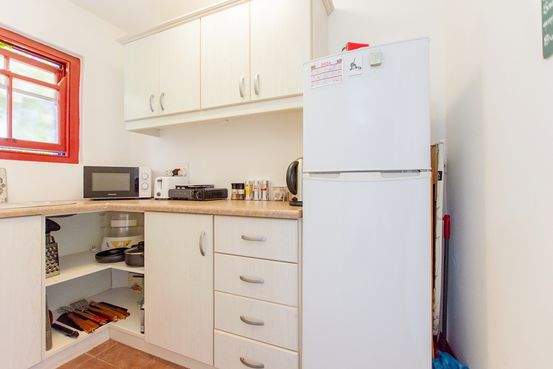 As you ascend the staircase, you enter an open-plan living area. To the right, you'll find a fully equipped kitchen complete with ample cupboards and a built-in braai. To the left is the inviting living space, featuring a cozy fireplace ideal for winter evenings. The living area seamlessly opens onto a large patio, offering breathtaking sea views—perfect for enjoying your morning coffee while listening to the waves.