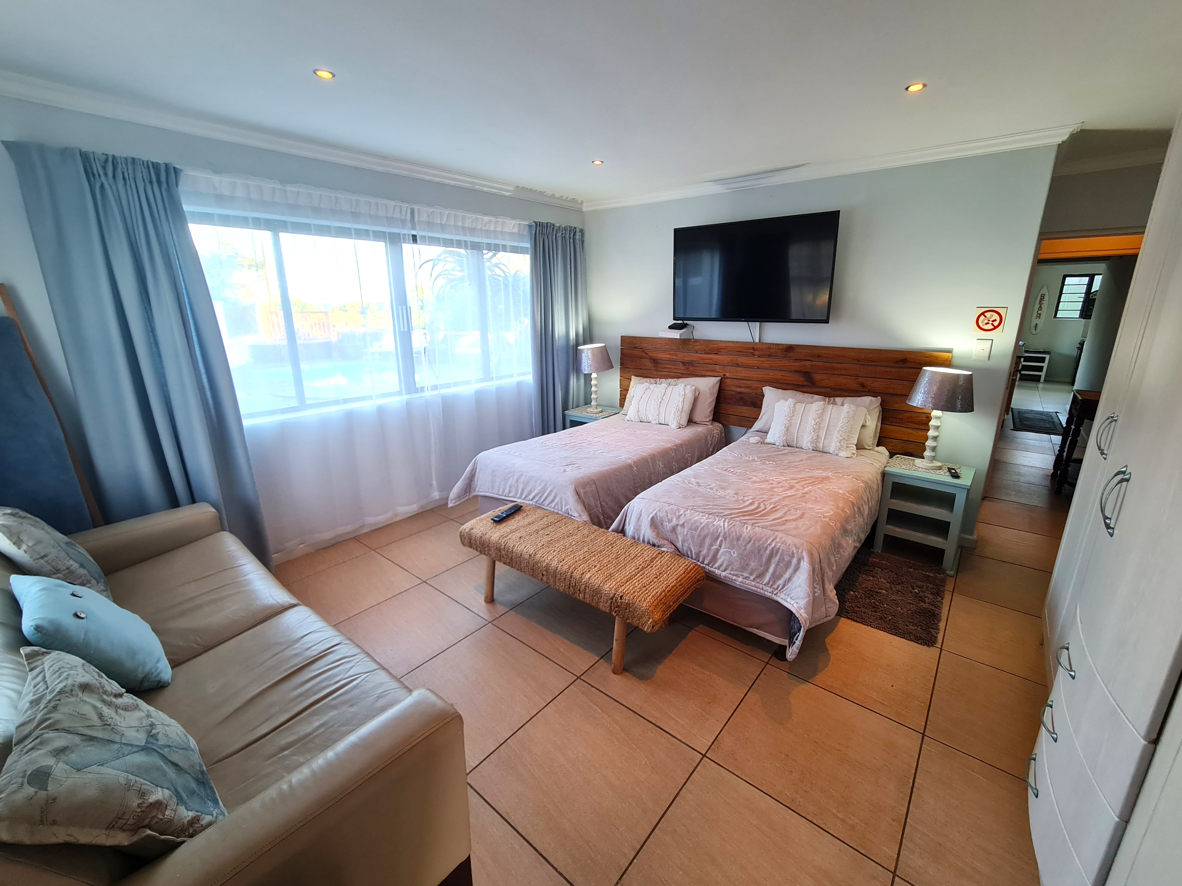 Beautiful sparkling swimming pool, deck and grassed lawn at the rear. Double garage with extra cupboards. Free WiFi, as per current arrangement with service provider, which will transfer to the new owner. Separate pre-paid electricity meters for each unit. The current construction cost of this home far exceeds the asking price! All is on approved plan. The location is excellent, and the build quality is of the best.