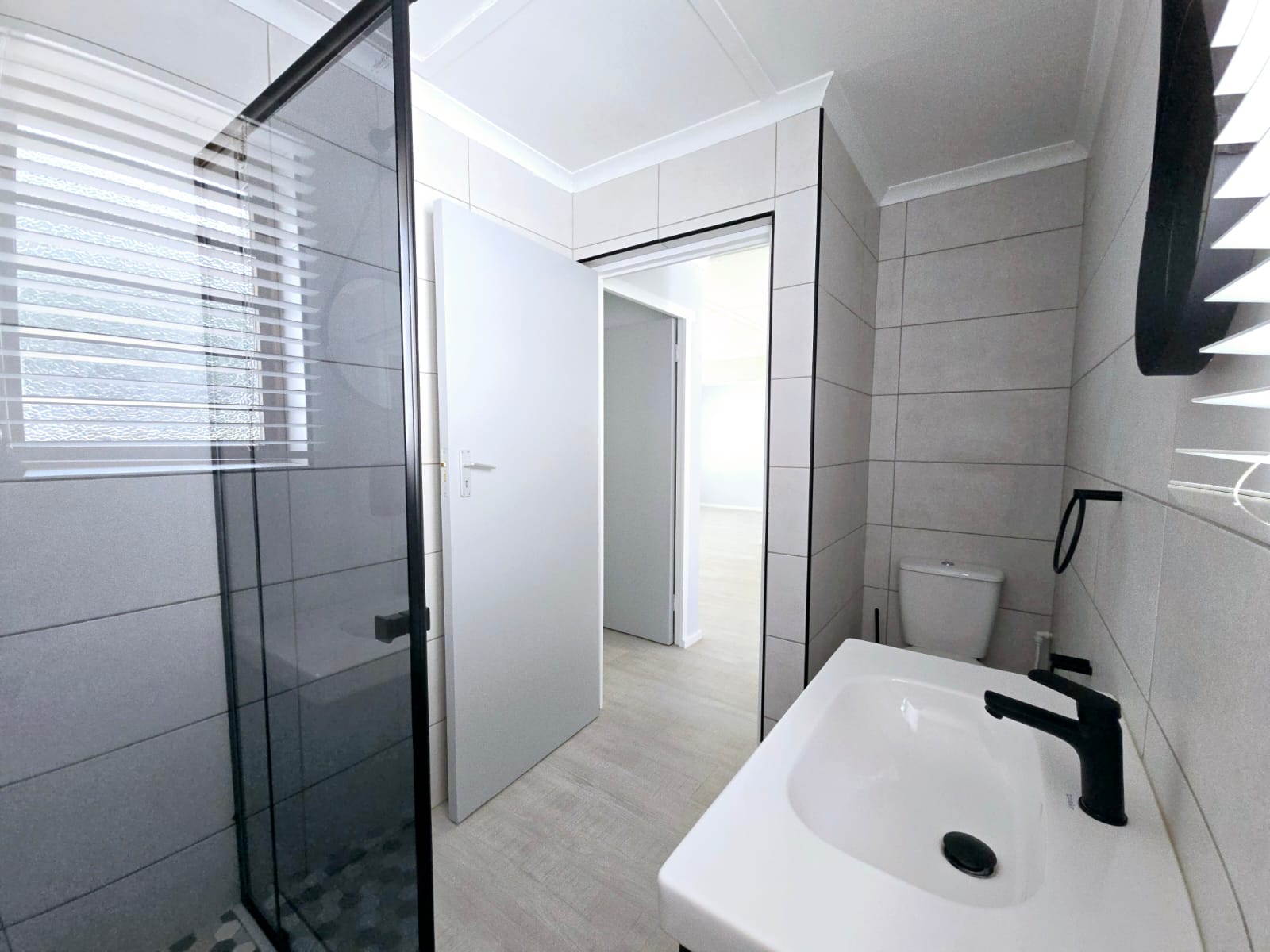 The home features two spacious bedrooms and one stylish bathroom, complemented by a bright open-plan living area. The newly renovated modern kitchen is fitted with a gas stove, ideal for both everyday living and entertaining. All windows are fitted with neat, modern blinds and veneer flooring through out