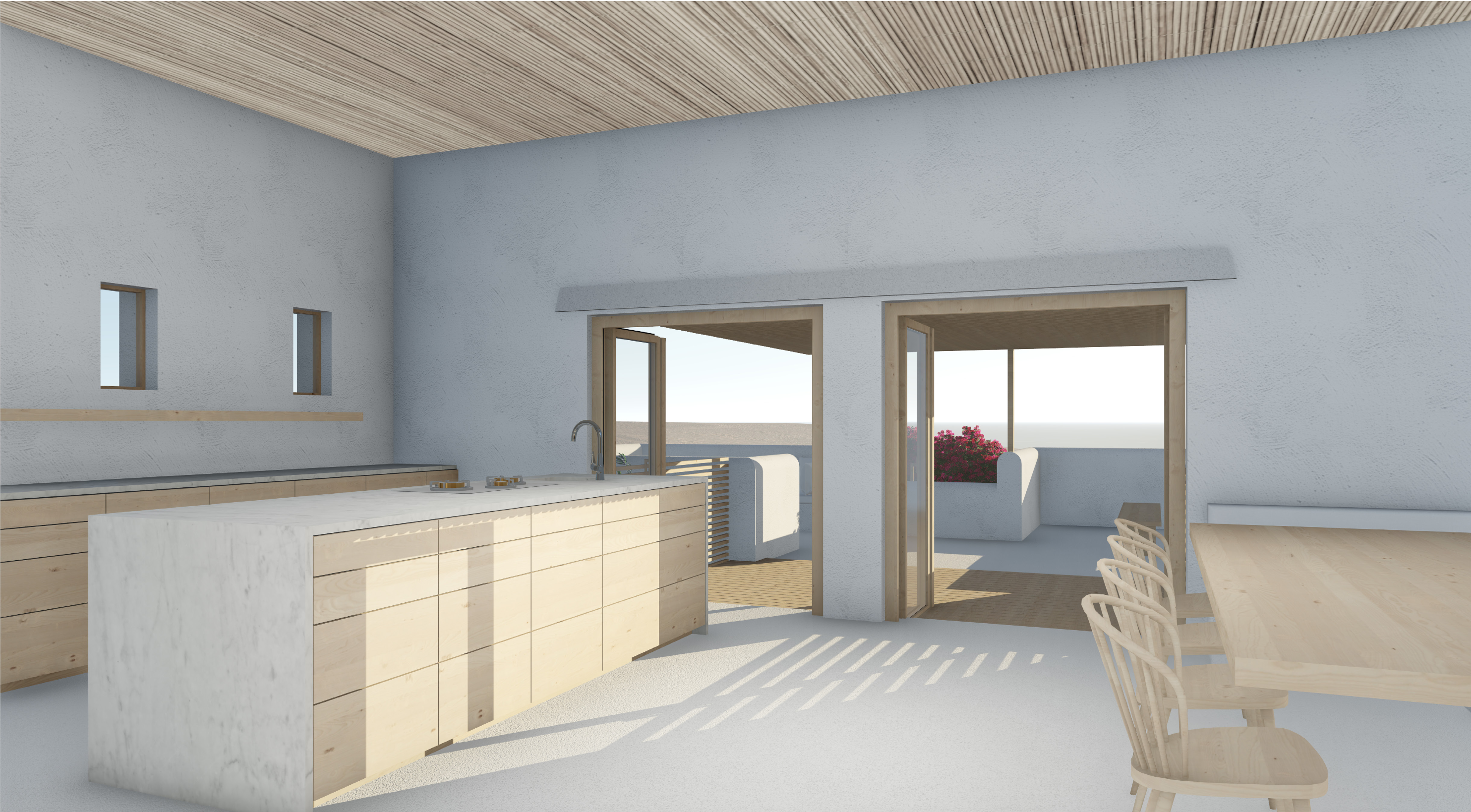 Designed to capture natural light and sea views, the upper floor features open-truss ceilings and an open-plan lounge, dining, and kitchen. Sliding doors open onto a covered braai terrace and balconies — perfect for sunset entertaining over the beach.