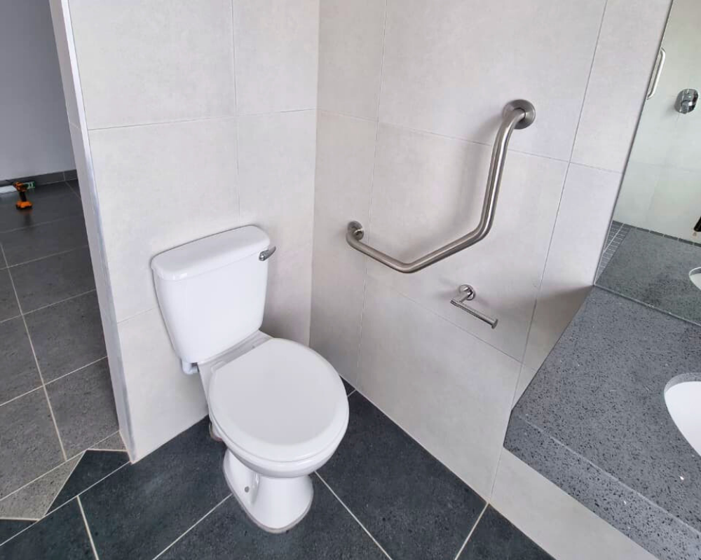 The unit was specifically adapted to accommodate wheelchair users, ensuring ease of movement and peace of mind throughout. All doorways are 1 metre wide, allowing smooth access between rooms. The bathroom is generously sized, making it easy to turn a wheelchair safely, and features a walk in shower with no glass panels for added safety.