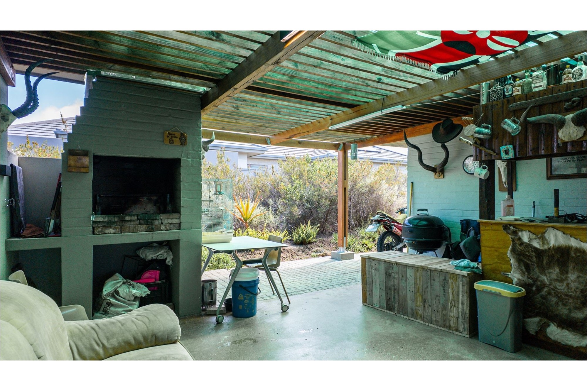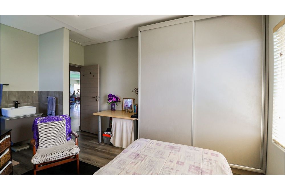 All three bedrooms are en-suite, ensuring comfort and privacy, while a guest toilet adds extra convenience. The home is equipped with a solar geyser, promoting energy efficiency. Step outside onto the undercover patio with a built-in braai, perfect for entertaining while enjoying the tranquil surroundings. A double garage with electric doors ensures secure parking, and a water tank supports sustainable living. Set within a nature-filled estate with sea views, this home offers the best of modern luxury and natural beauty. An exceptional opportunity for peaceful, secure and safe living!