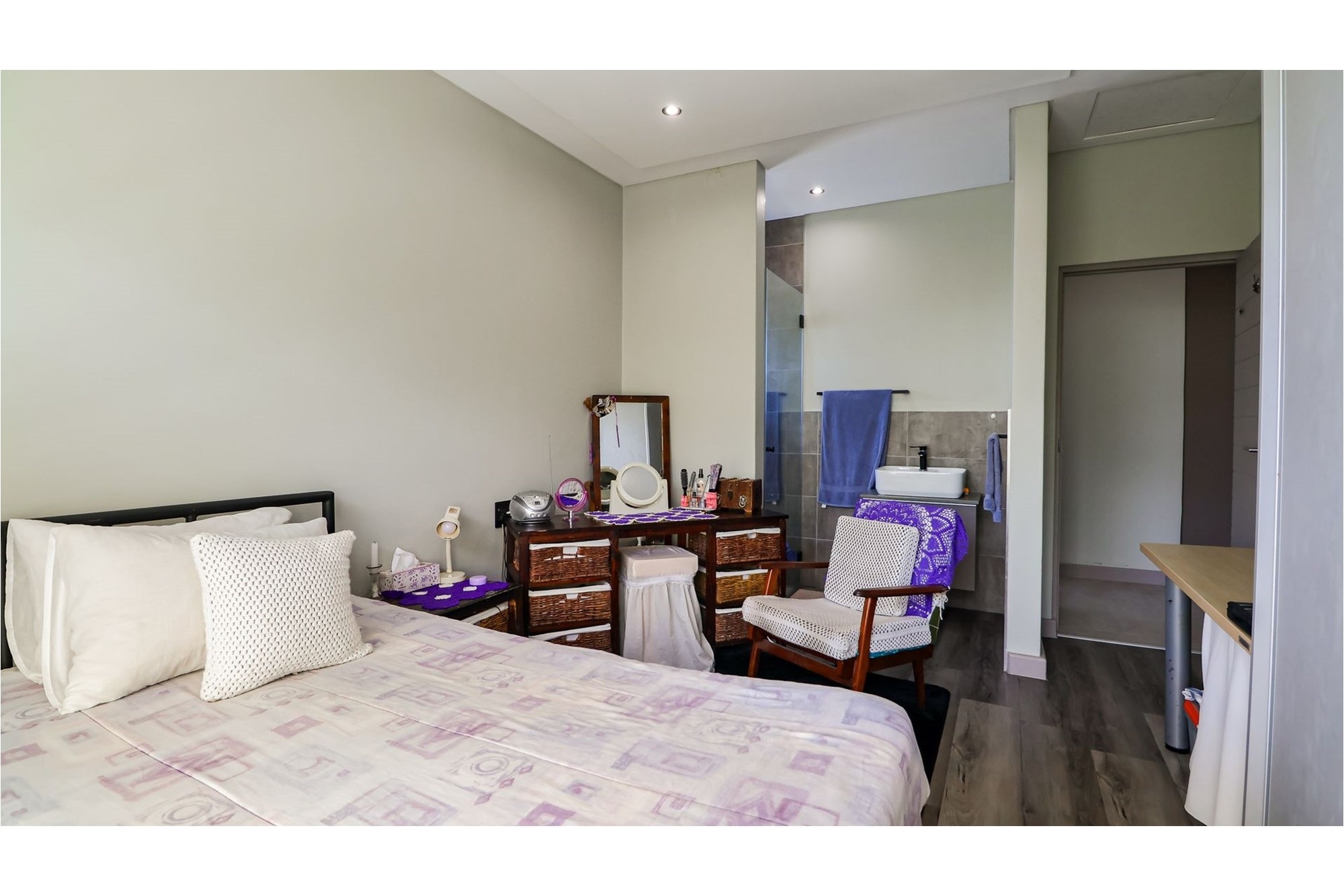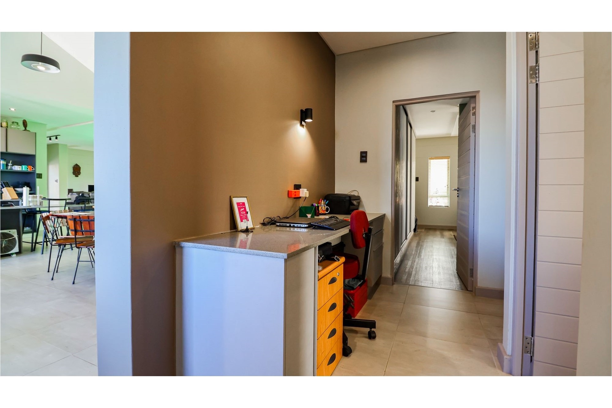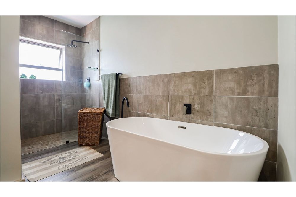 Discover contemporary coastal living in this newly built 3-bedroom, 3.5-bathroom home, perfectly situated in a secure estate teeming with bushbuck and other wildlife. Designed for modern convenience, this single-level residence offers seamless open-plan living, with the kitchen, dining, and lounge areas flowing effortlessly together. The stylish kitchen is a chef’s dream, featuring granite countertops, a gas hob, an eye-level oven, a breakfast nook, and a separate scullery/laundry for added practicality. A private courtyard provides additional space for outdoor functionality.