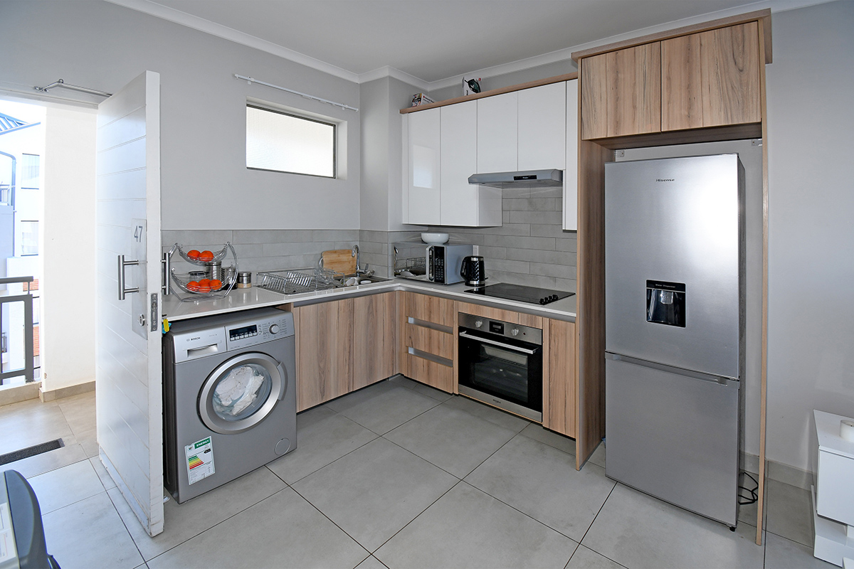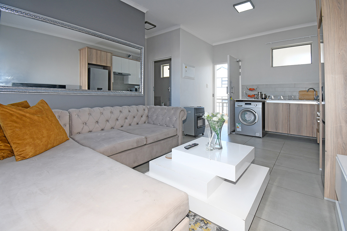 The apartment comprises one sunny bedroom, one elegant bathroom, a tiled lounge area, and an ultra-modern kitchen complete with granite tops and a gas stove, boasting ample cupboard space. Additionally, it includes a single covered carport along with plentiful guest parking. Safety is ensured with 24-hour access-controlled security, and the complex also offers amenities such as a kiddies jungle gym, pool, and braai facilities.