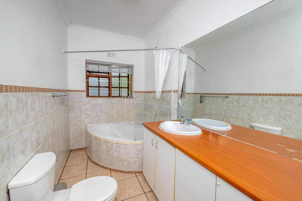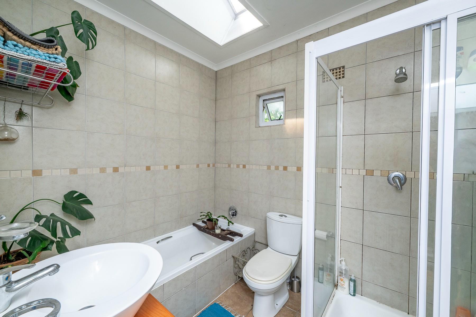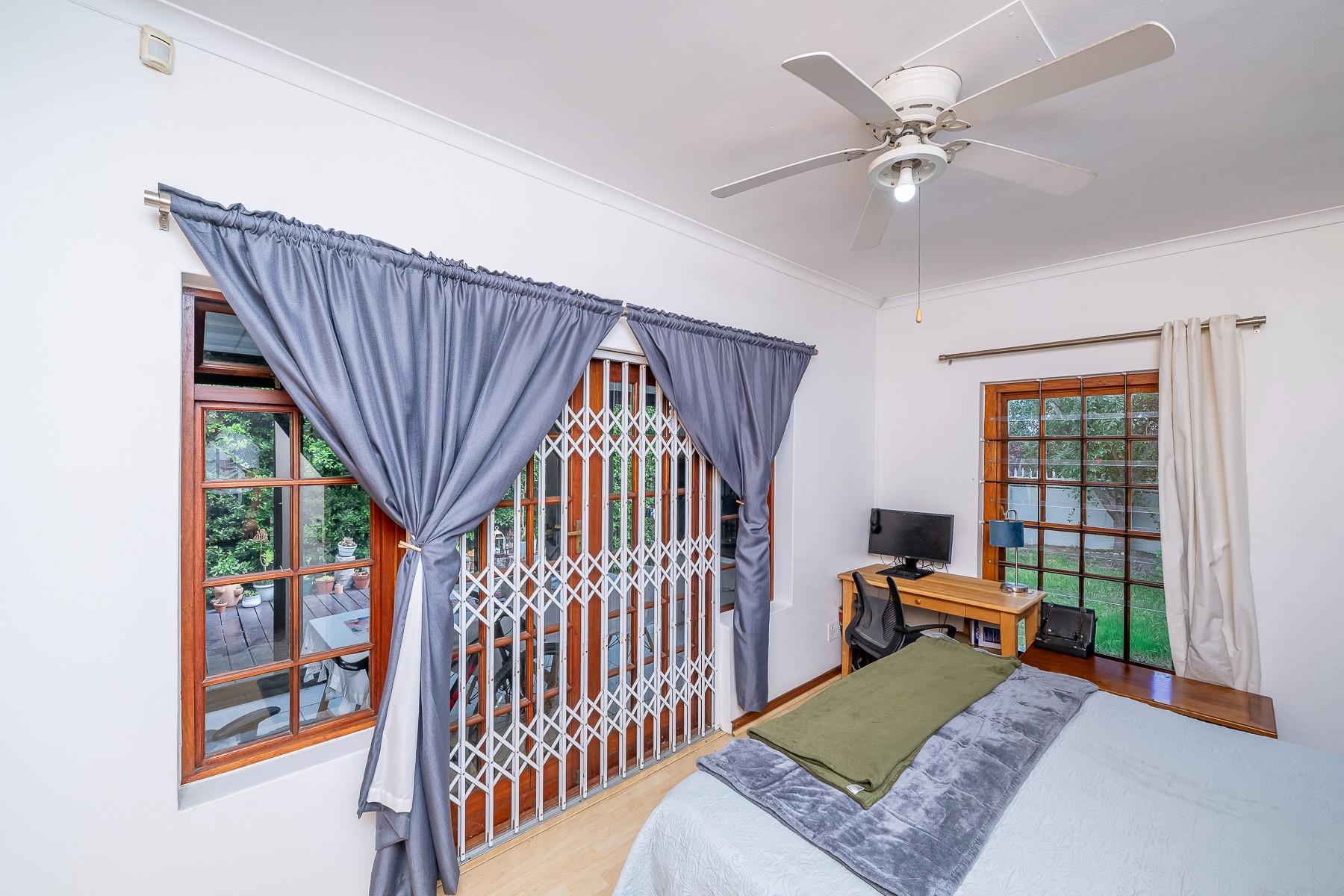 Upstairs, you’ll find two more well sized bedrooms, one with a balcony showcasing scenic views of the Helderberg Mountains and the other overlooking picturesque vineyards.