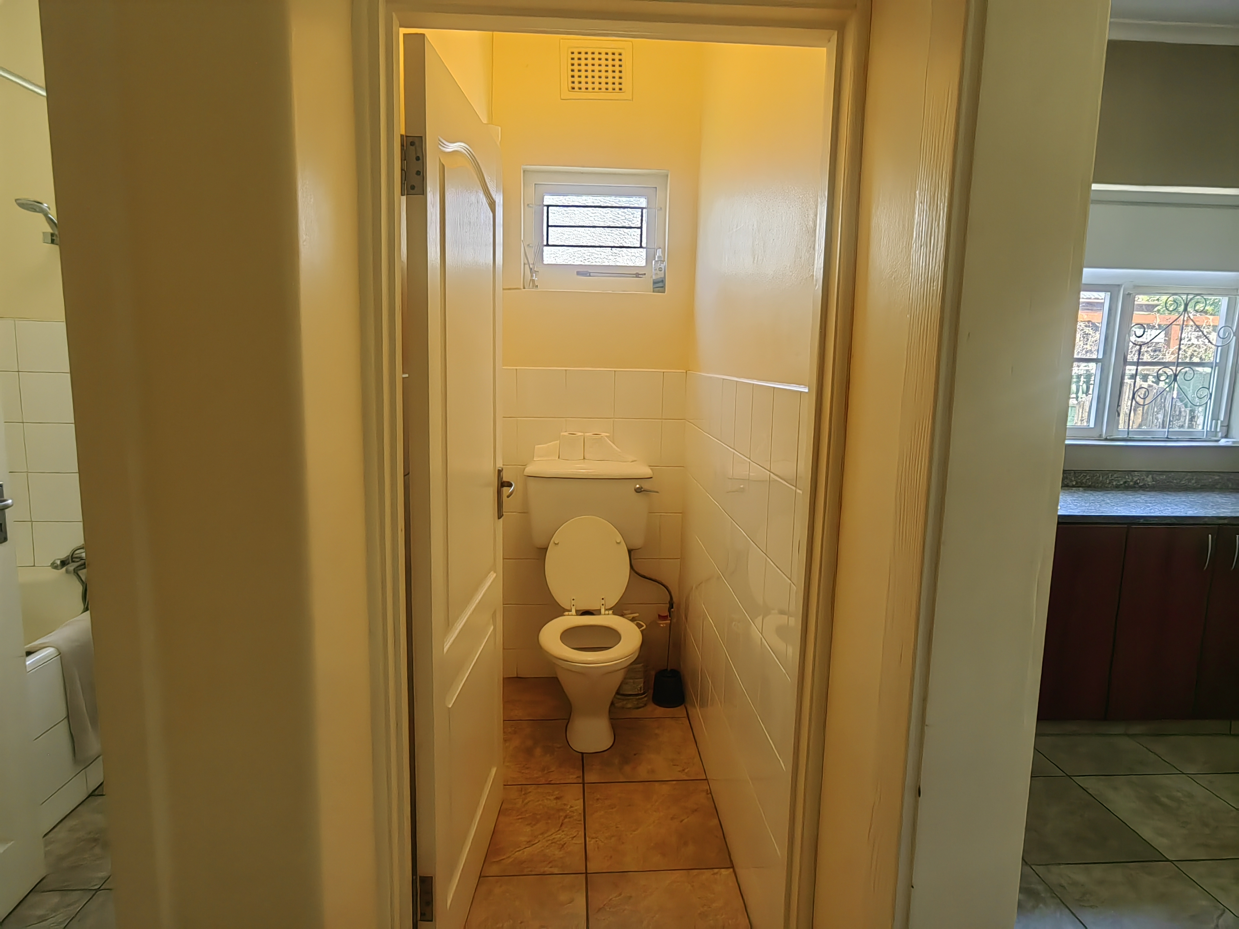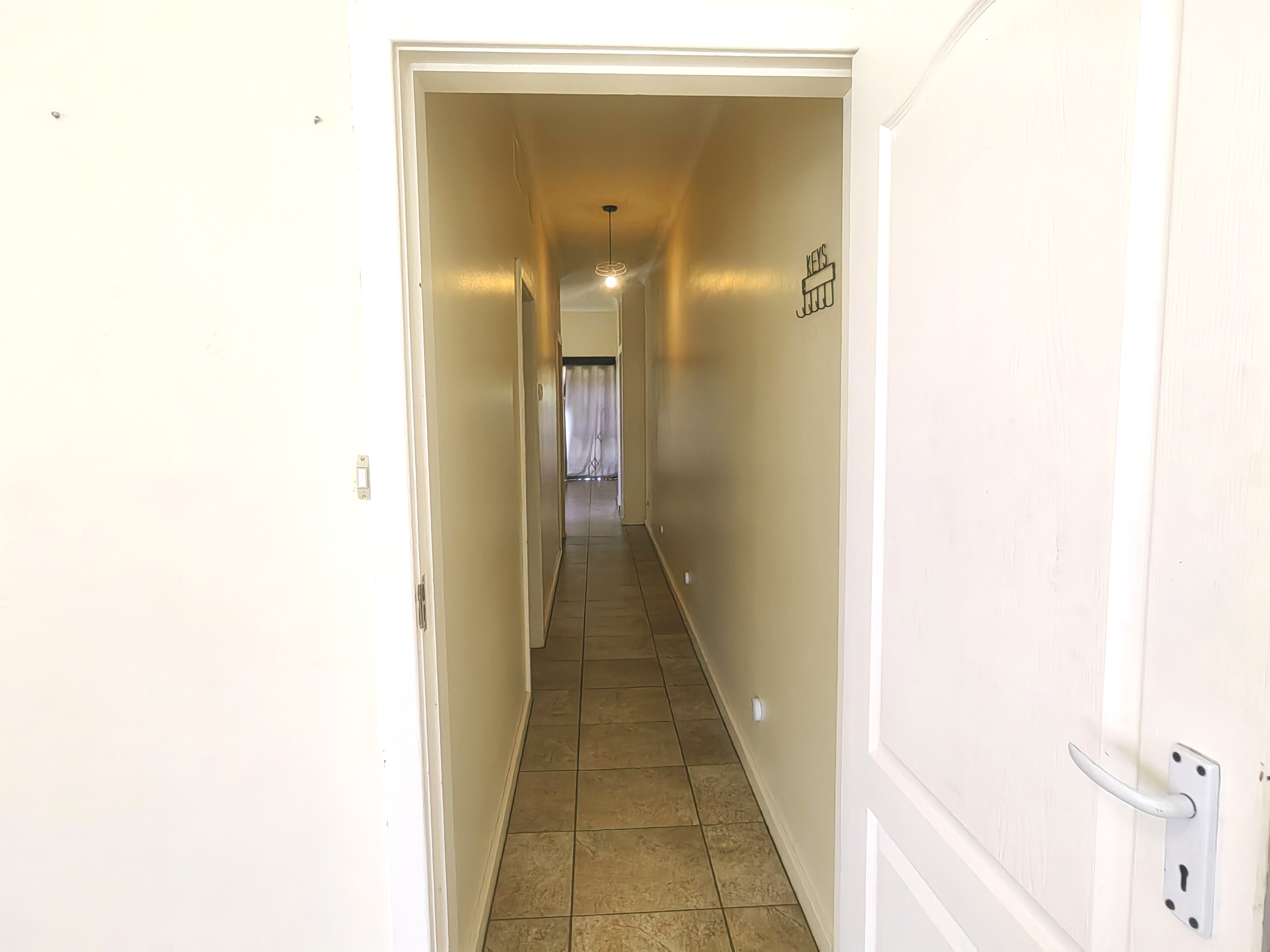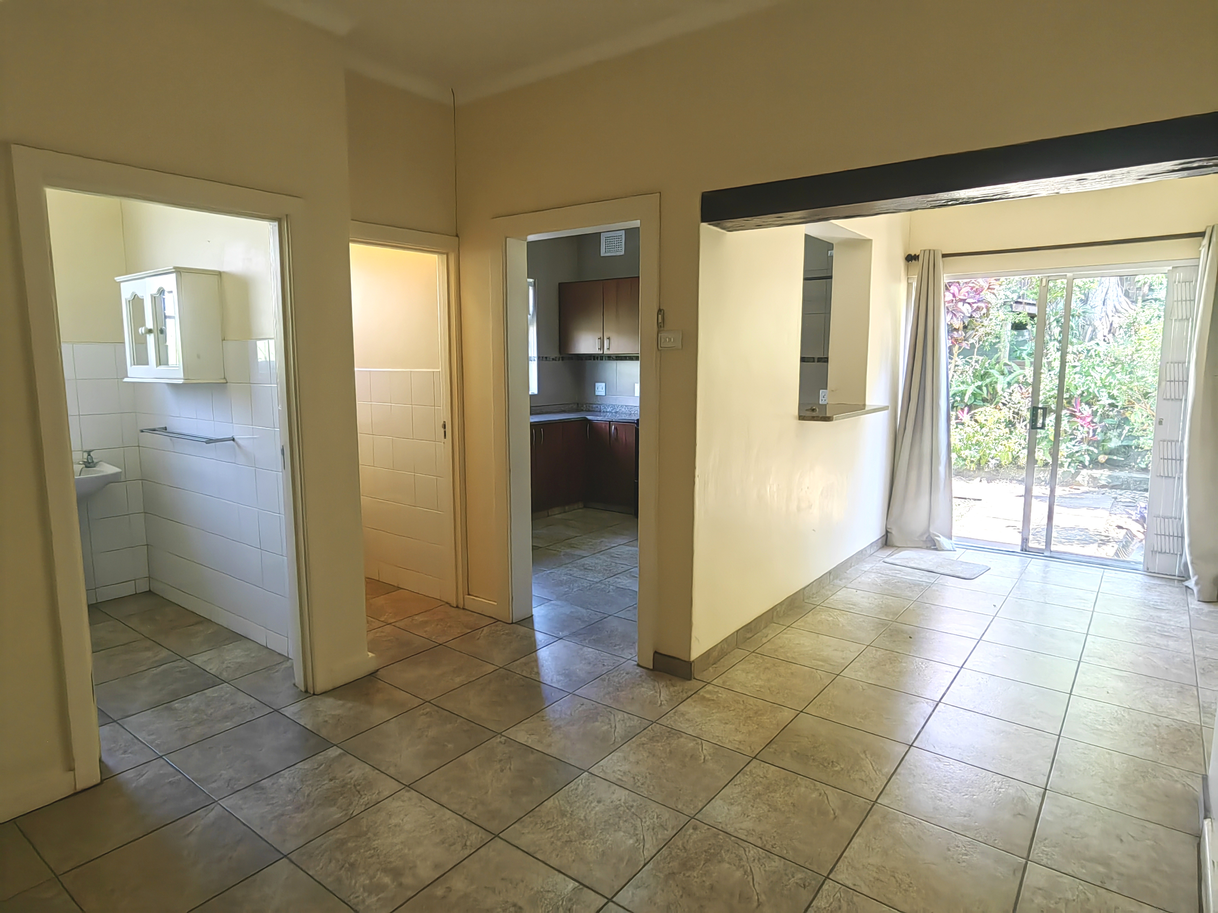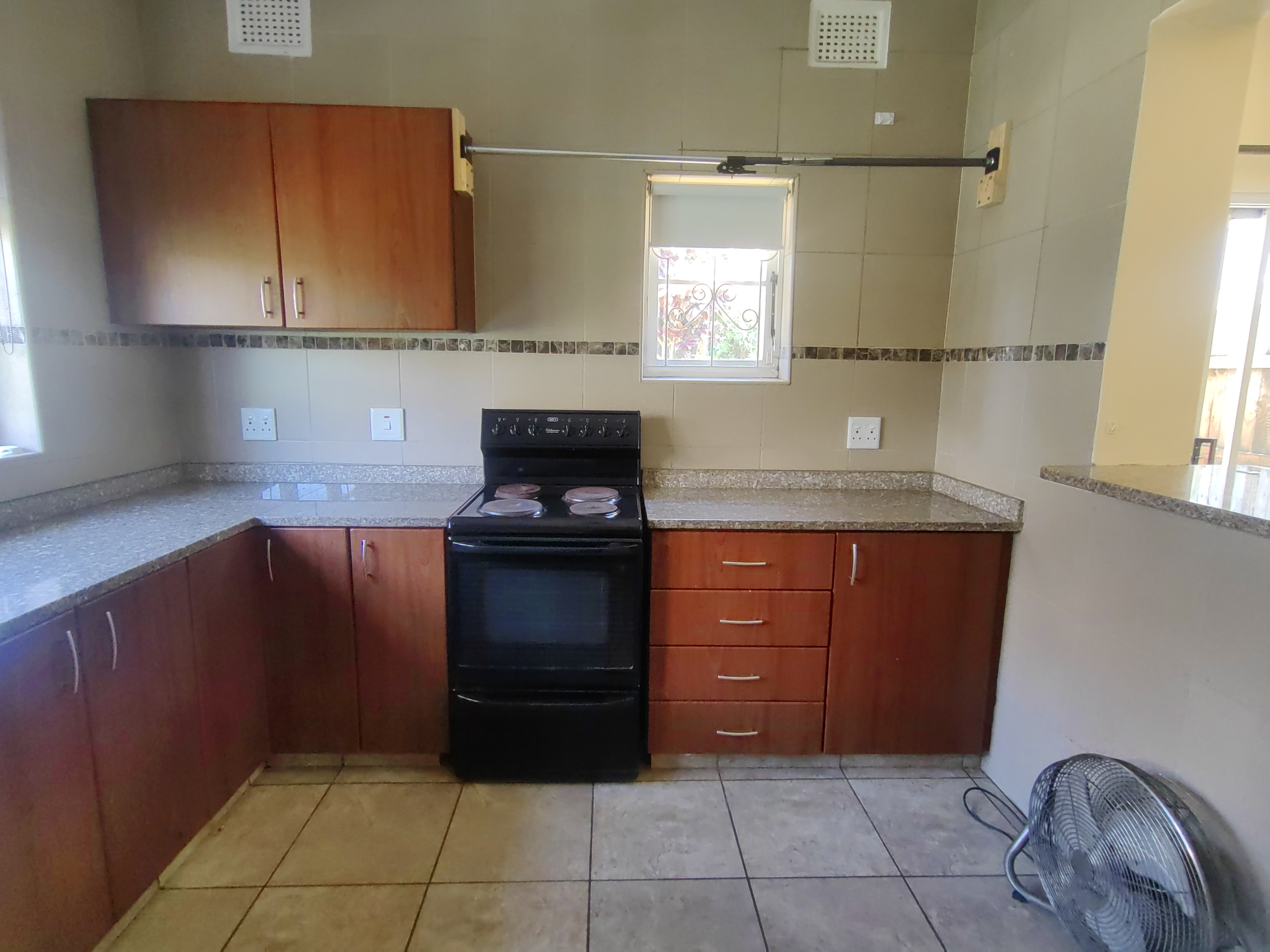 Down the passage, you'll find a separate kitchen and dining room. The kitchen is fully equipped with ample cupboard and cabinet space, an electric stove and oven, and a connection for a washing machine. The dining room opens through sliding doors to an additional garden area with a washline, creating the perfect setting for entertaining or relaxed outdoor living.
