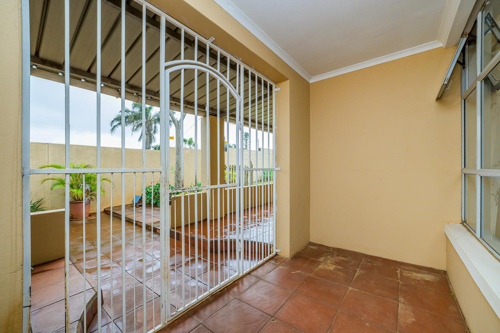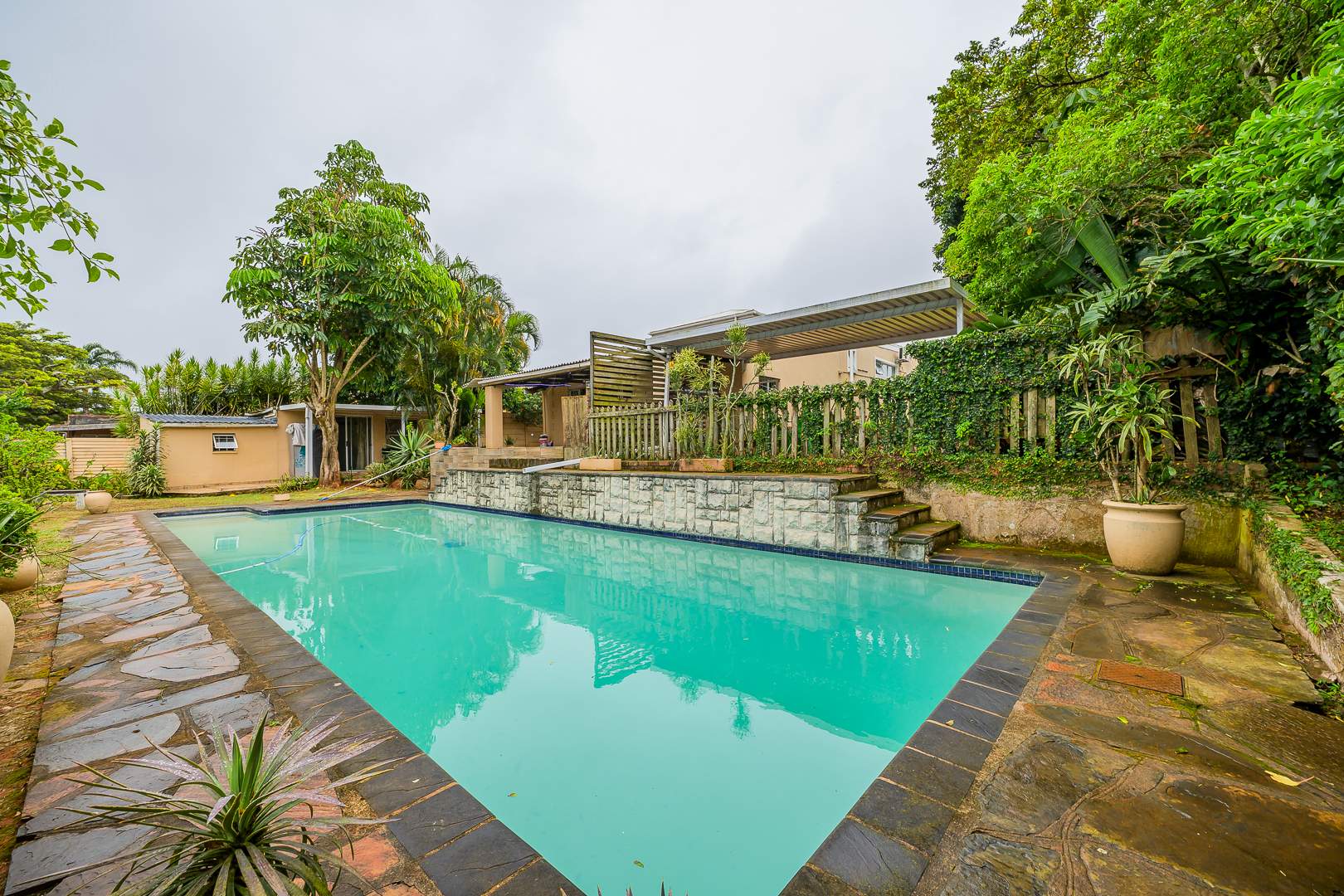 Step outside to the expansive covered patio, an entertainer's dream. Here you'll find a built-in braai, perfect for hosting gatherings with family and friends. This area overlooks a sparkling pool and a lush, manicured private garden, providing a serene outdoor oasis.