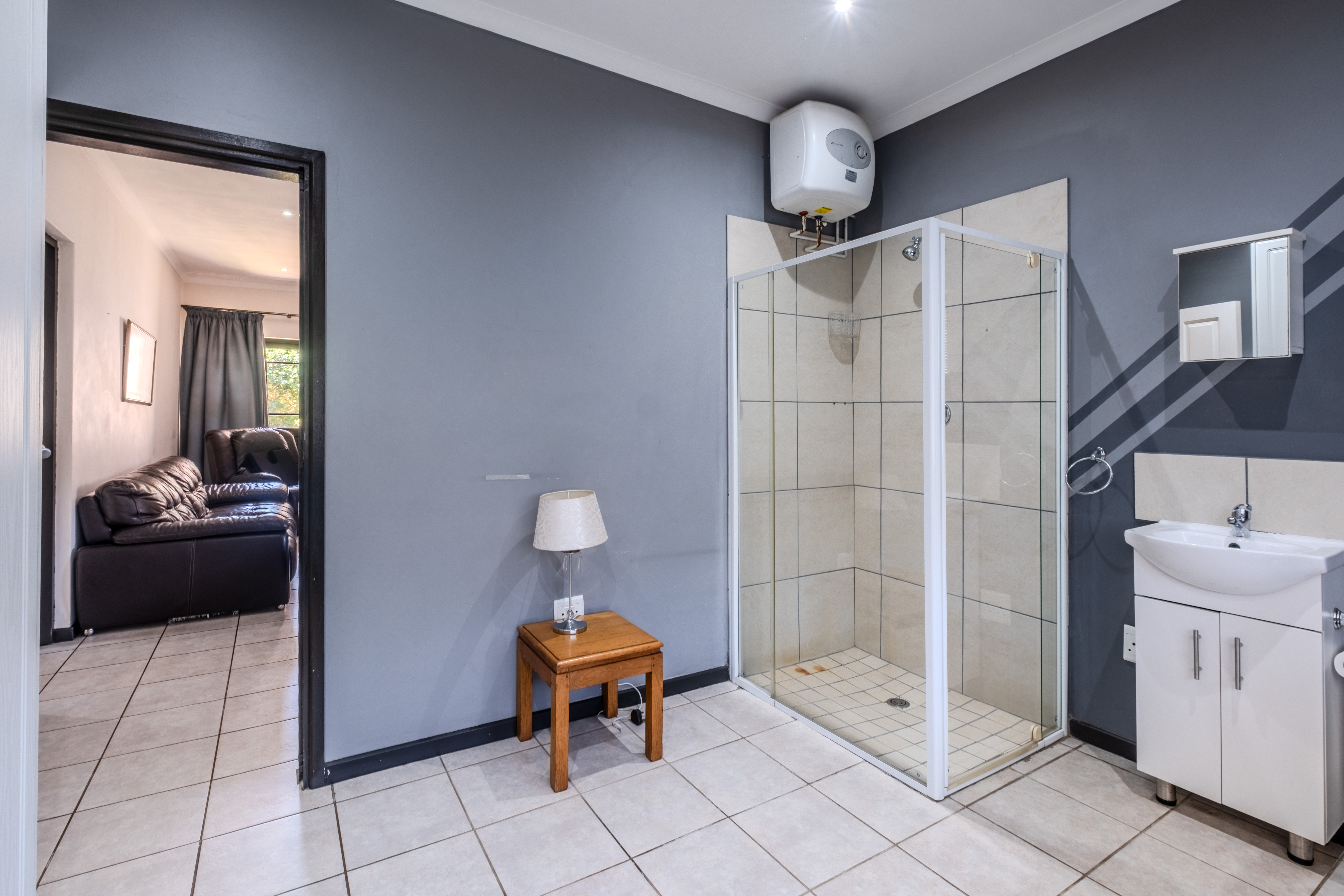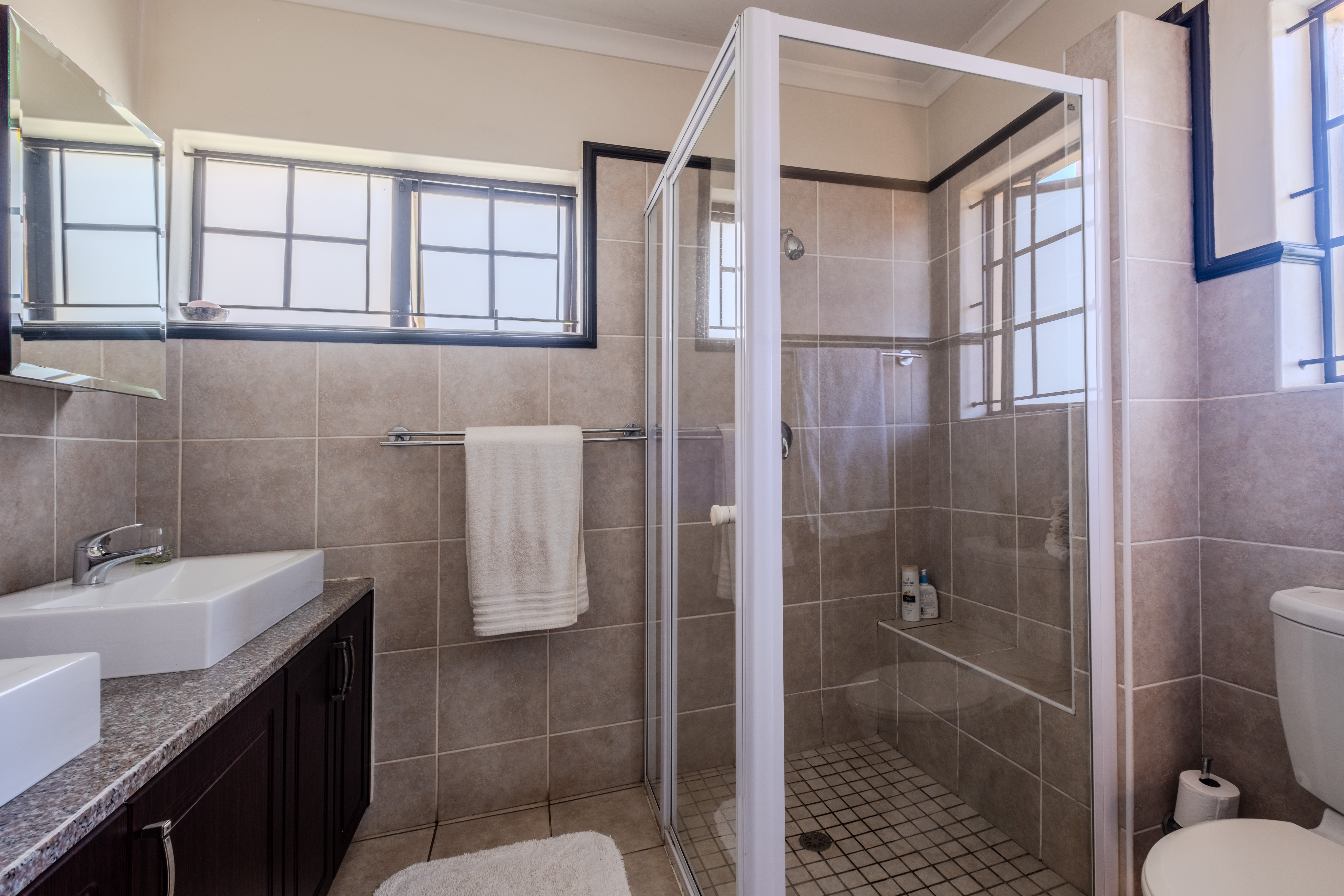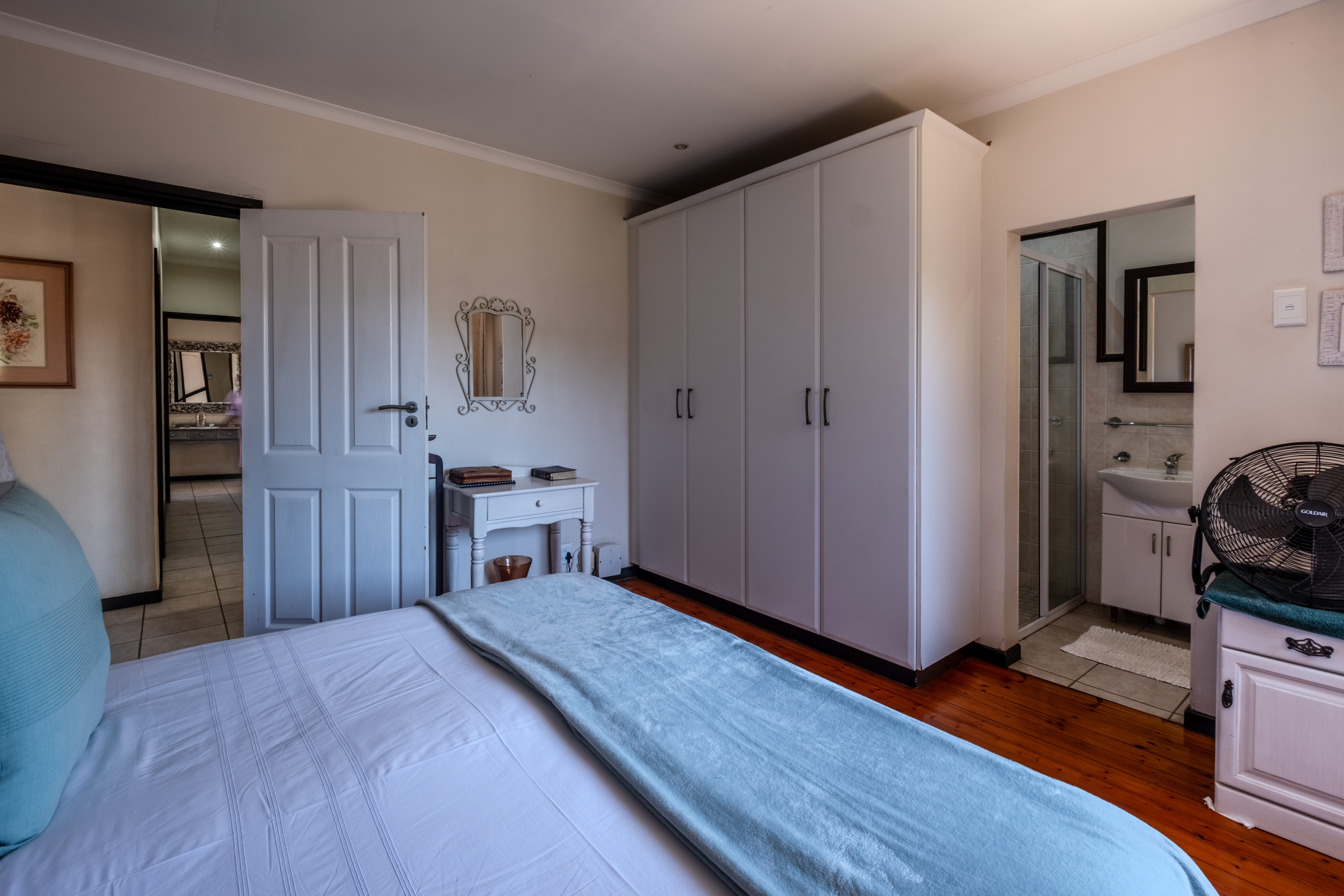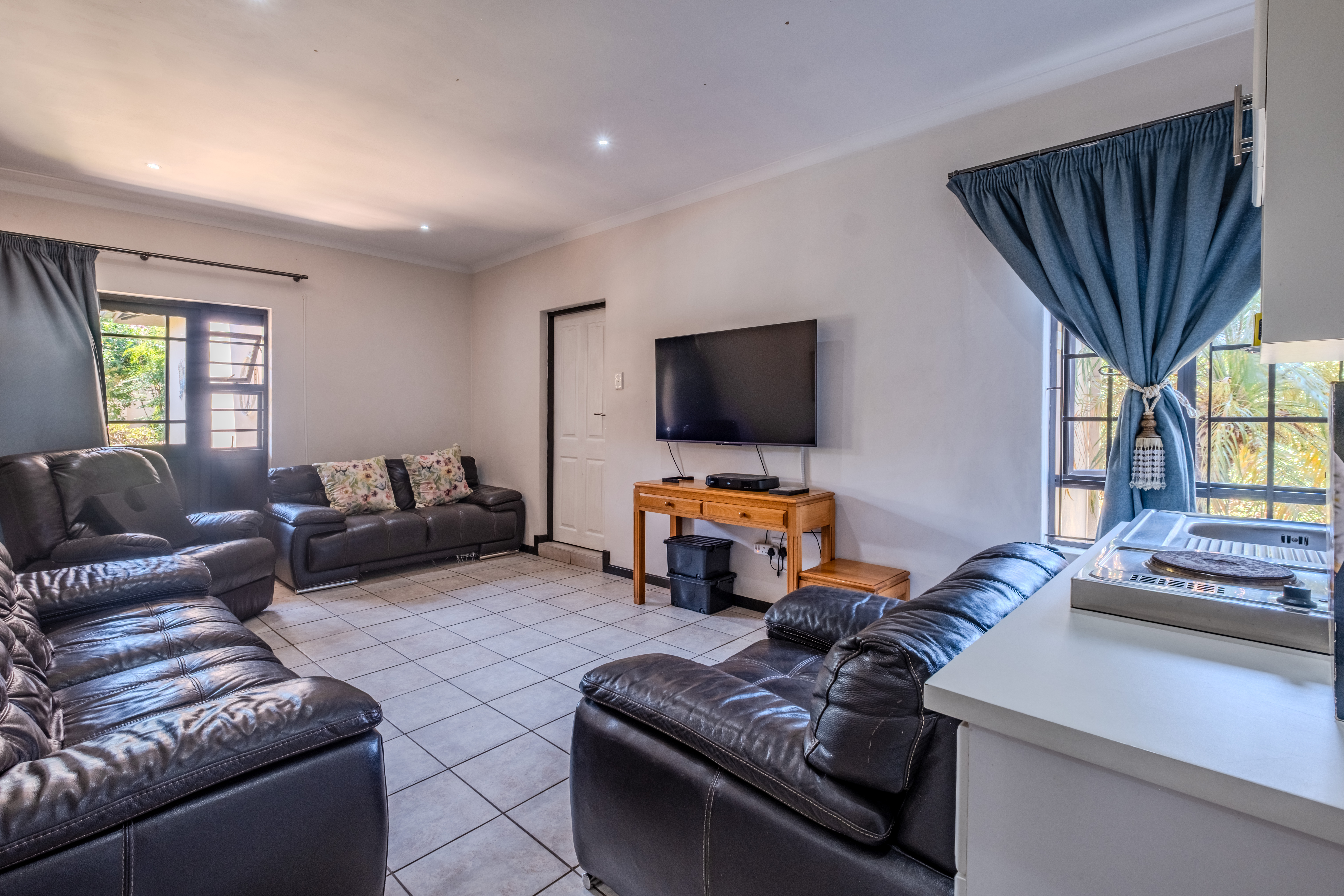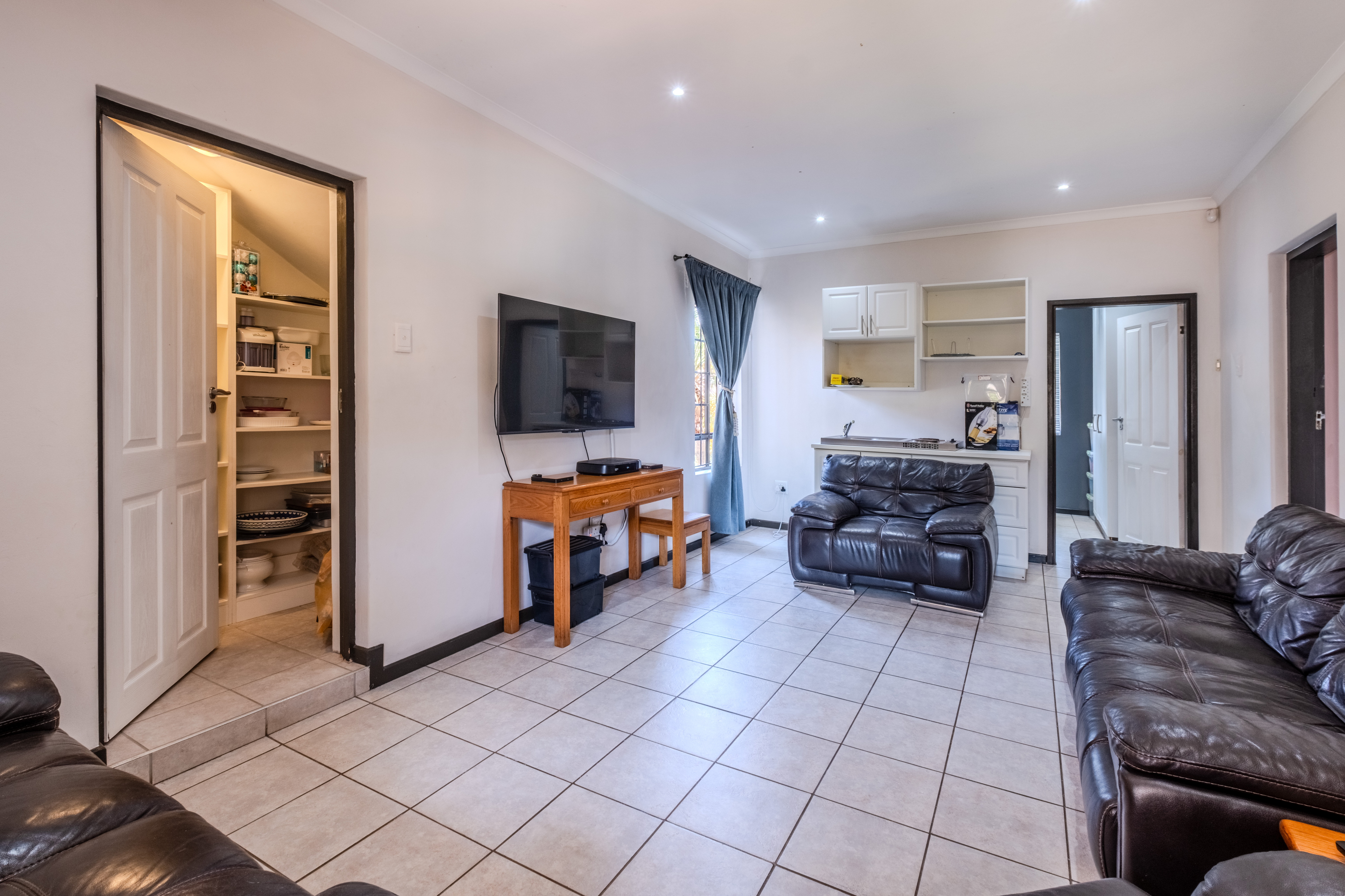 At this end of the home is a versatile fifth bedroom with an en-suite bathroom and storage cupboard. With its own private external access, this space can function as a flatlet for extended family, a teen pad, guest suite, or even a second lounge — adapting easily to your family’s needs.