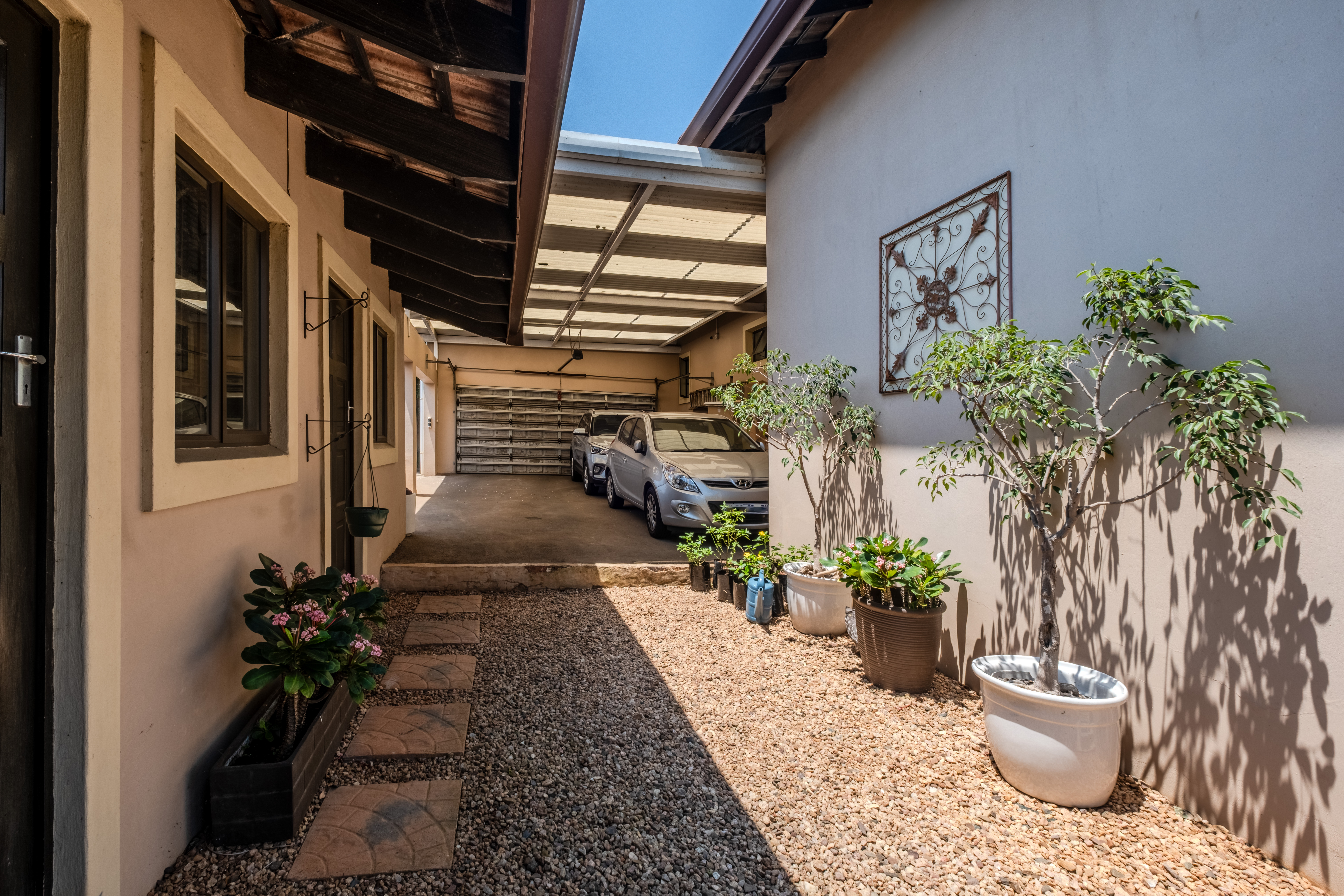 Crossways is an exclusive, privately owned complex of just four units. Unit 1 enjoys the added benefit of its own private gate and driveway, creating a sense of independence and privacy from the moment you arrive. A manicured garden welcomes you in, along with a generous driveway that offers ample additional parking and leads to the double garage. Tucked behind the garage is a separate office and laundry room, practical spaces that add real value to family living