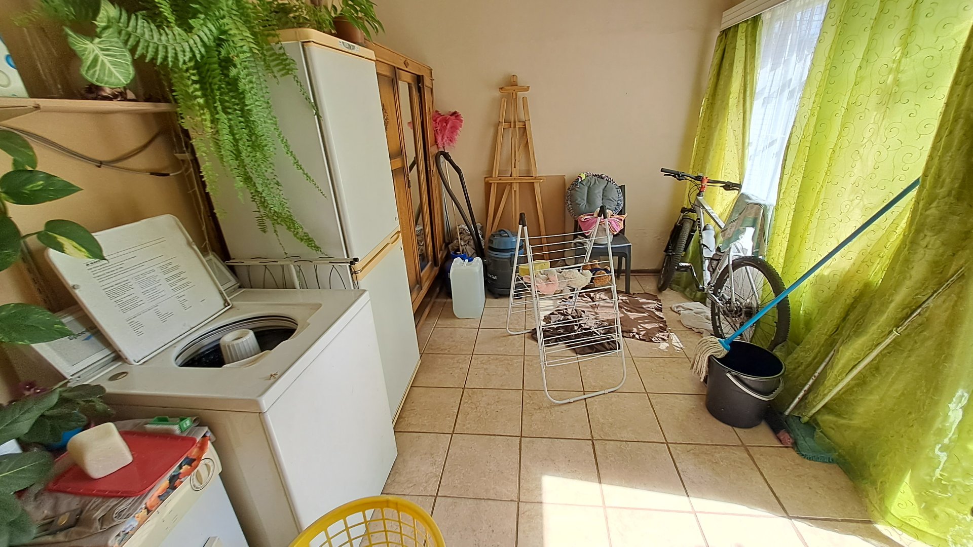 - A large kitchen with built-in cupboards, high ceilings and space. The loose standing oven/stove may be included in the sale (negotiable).