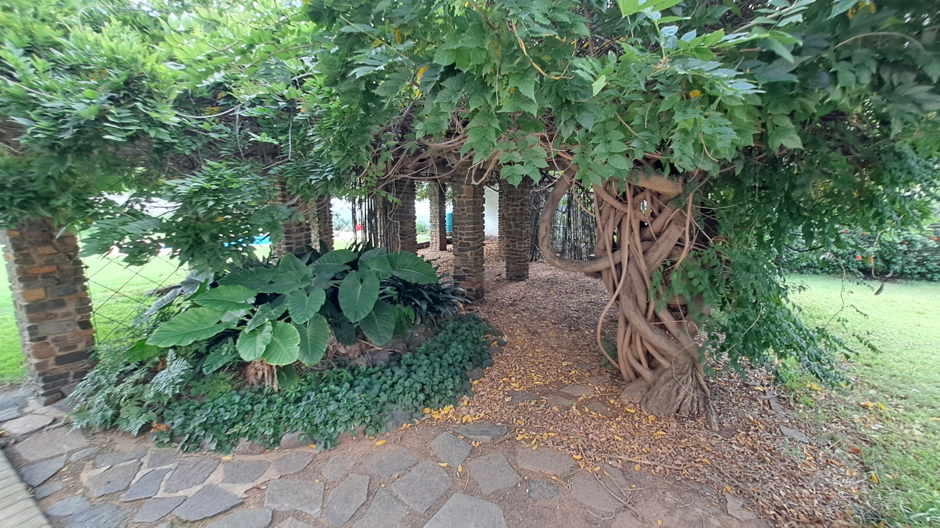 - A well-maintained beautiful garden with Wisteria (Blue Rain) covering a walkway, roses, citrus tree and more.