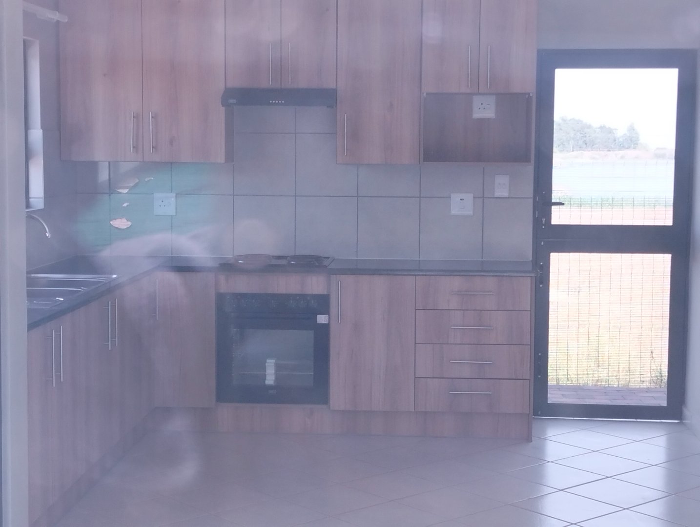 Fully tiled, built-in kitchen