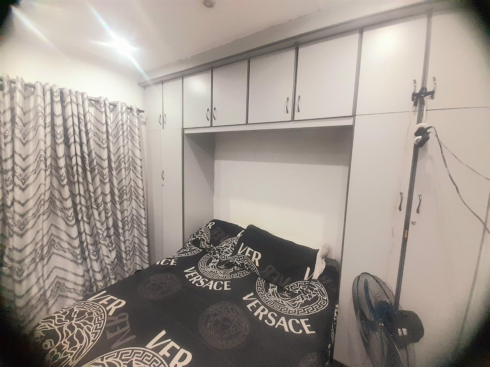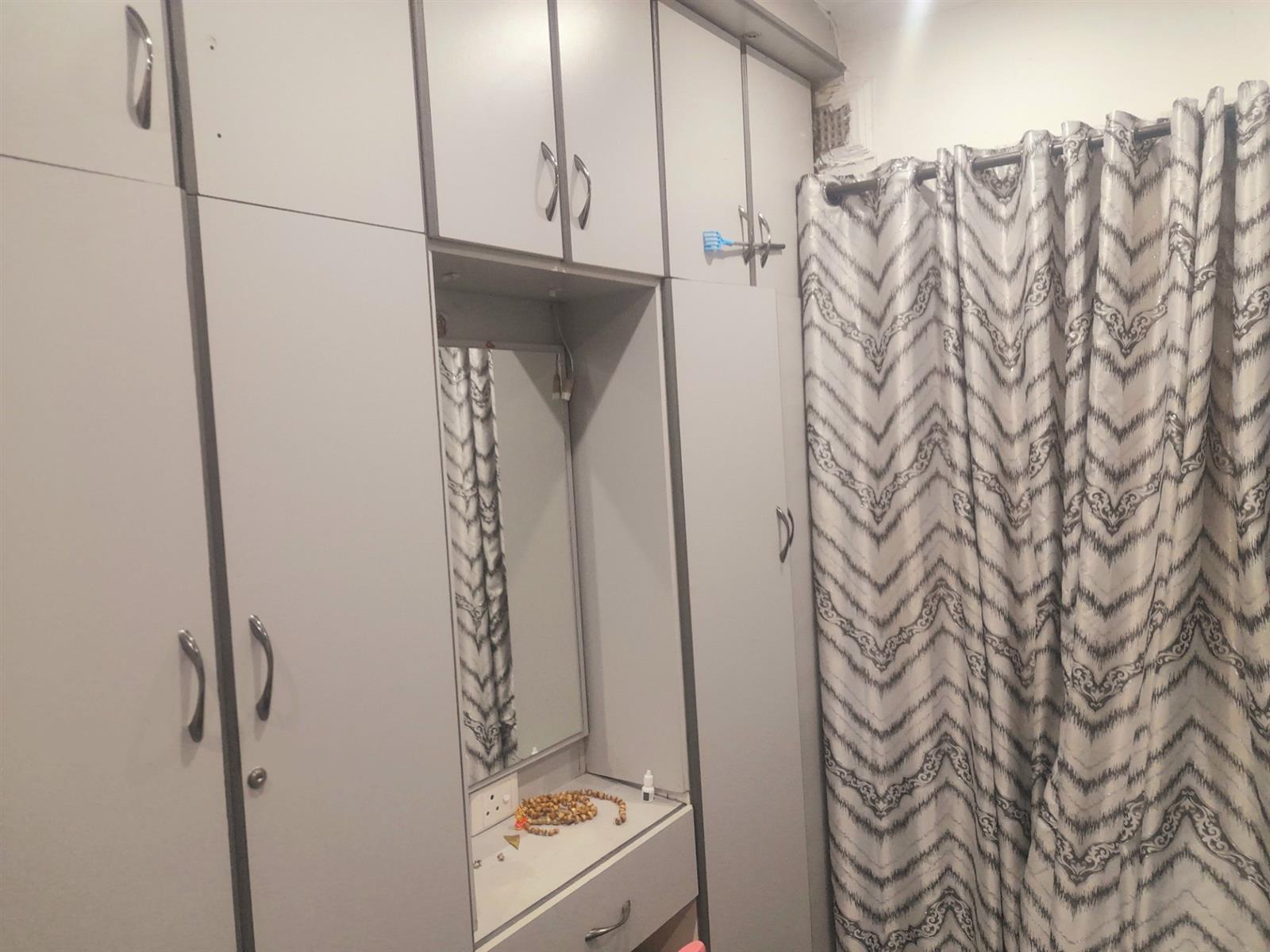 Three bedrooms with built-in cupboards. One room currently used as a prayer room and another as storage — both easily convertible back to bedrooms.