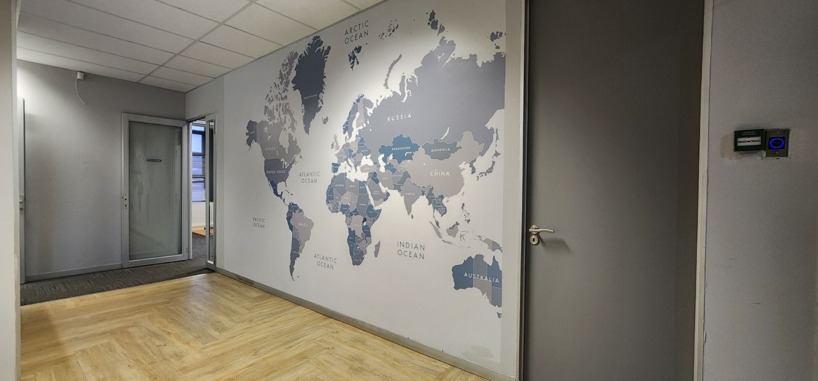 Prime 880m2 Ground floor Office space with a professional Reception area, modern kitchen & staff amenities, Open and Closed Office areas.