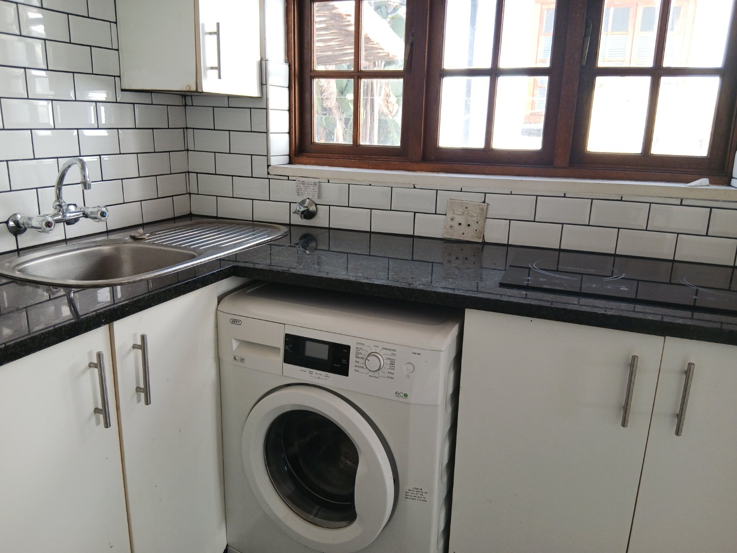 Spacious kitchen with lots of cupboard space to prepare those hearty meals bonus is a washing machine and a mini fridge bar