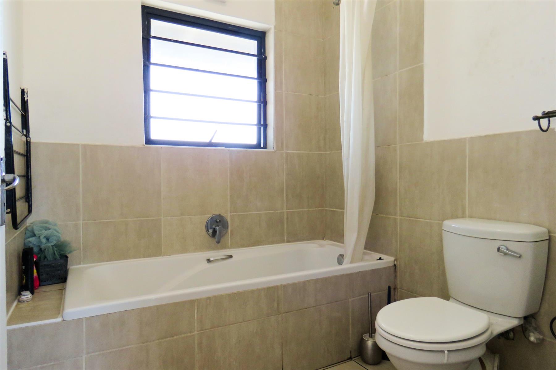 The apartment features two spacious bedrooms with good natural light and built-in cupboard space. A neatly positioned bathroom services both bedrooms, offering practical everyday convenience.